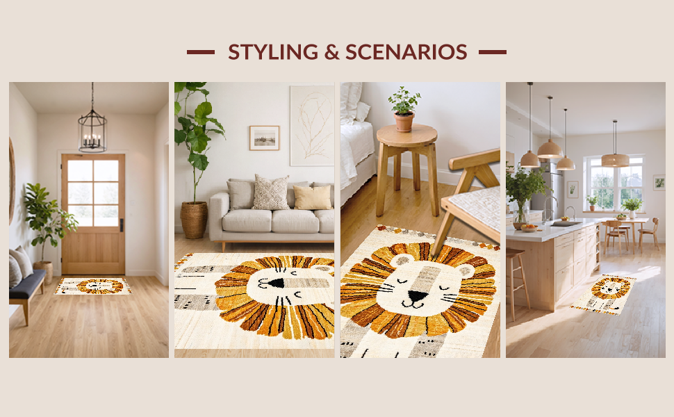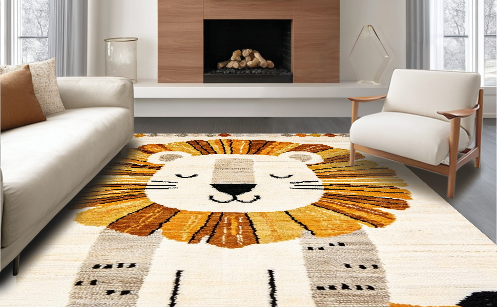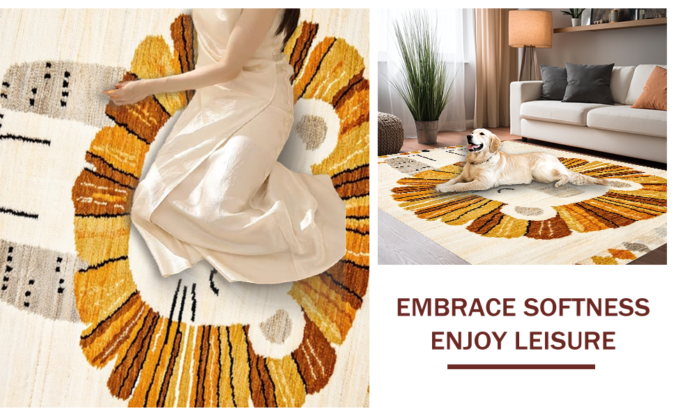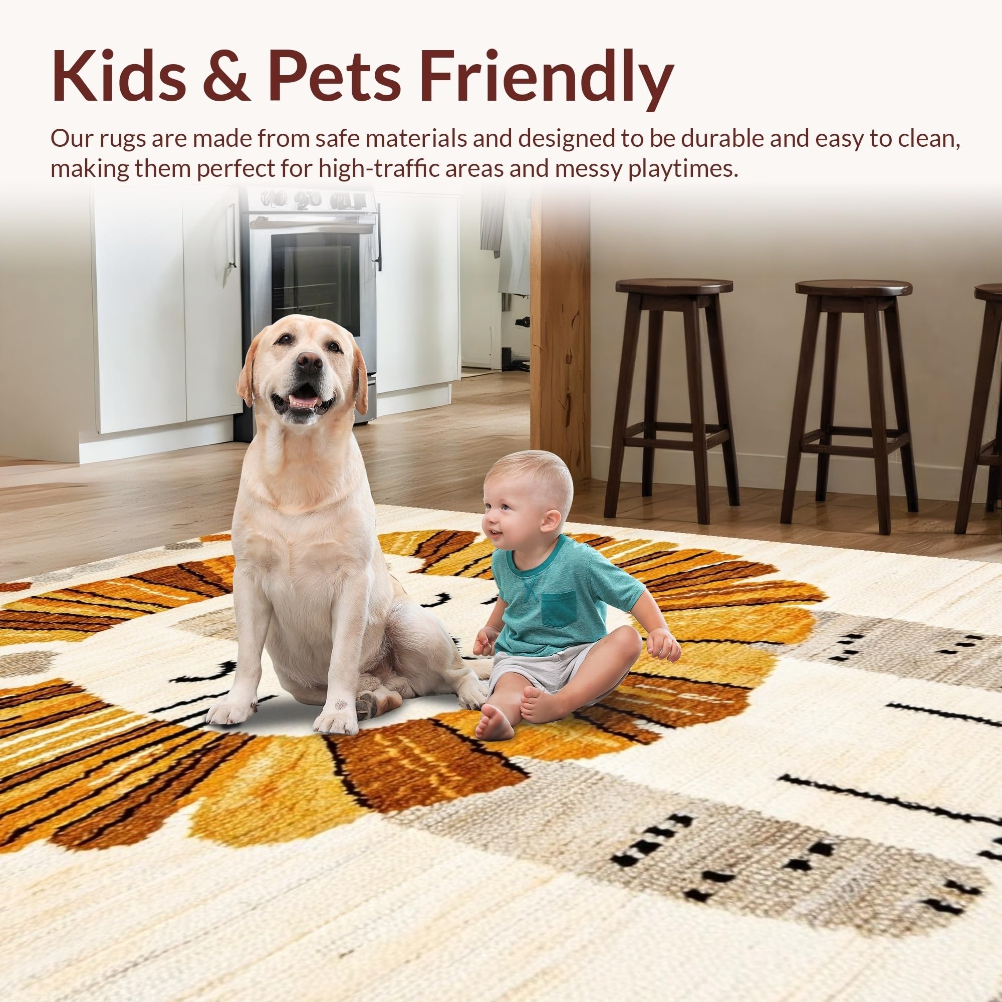 Ultra Soft Area Rug, Non Slip, Stain Resistant, Washable Area Rugs for Living Room, Bedroom, Delightful Jungle Spirit Vibe(Beige) Overview: