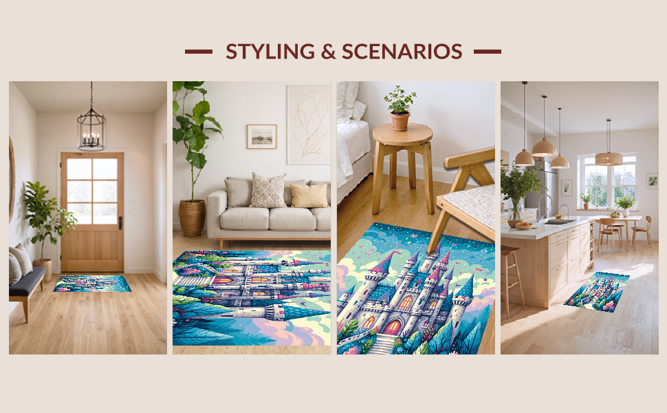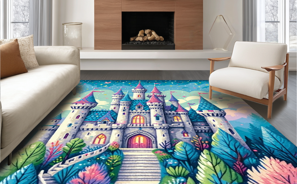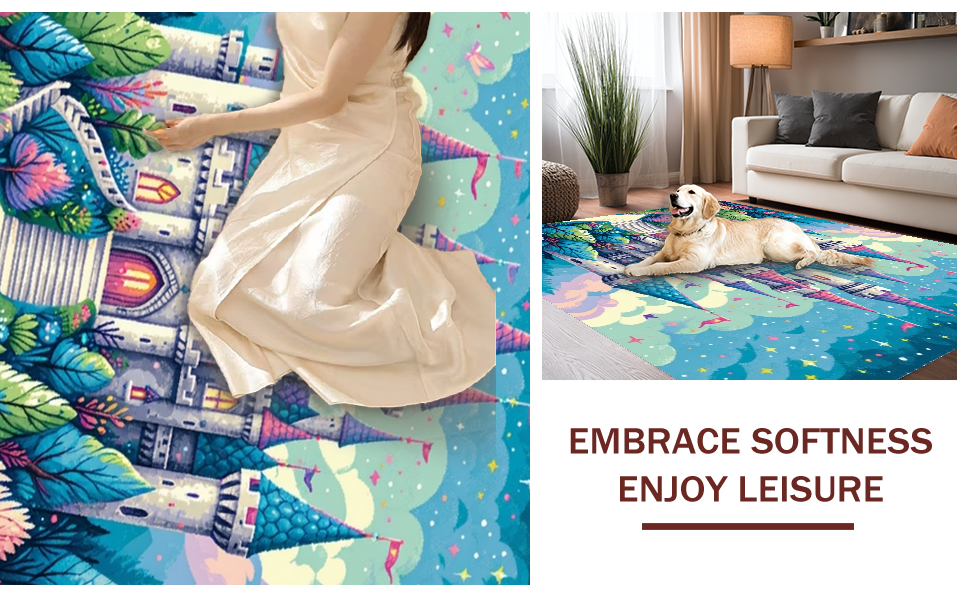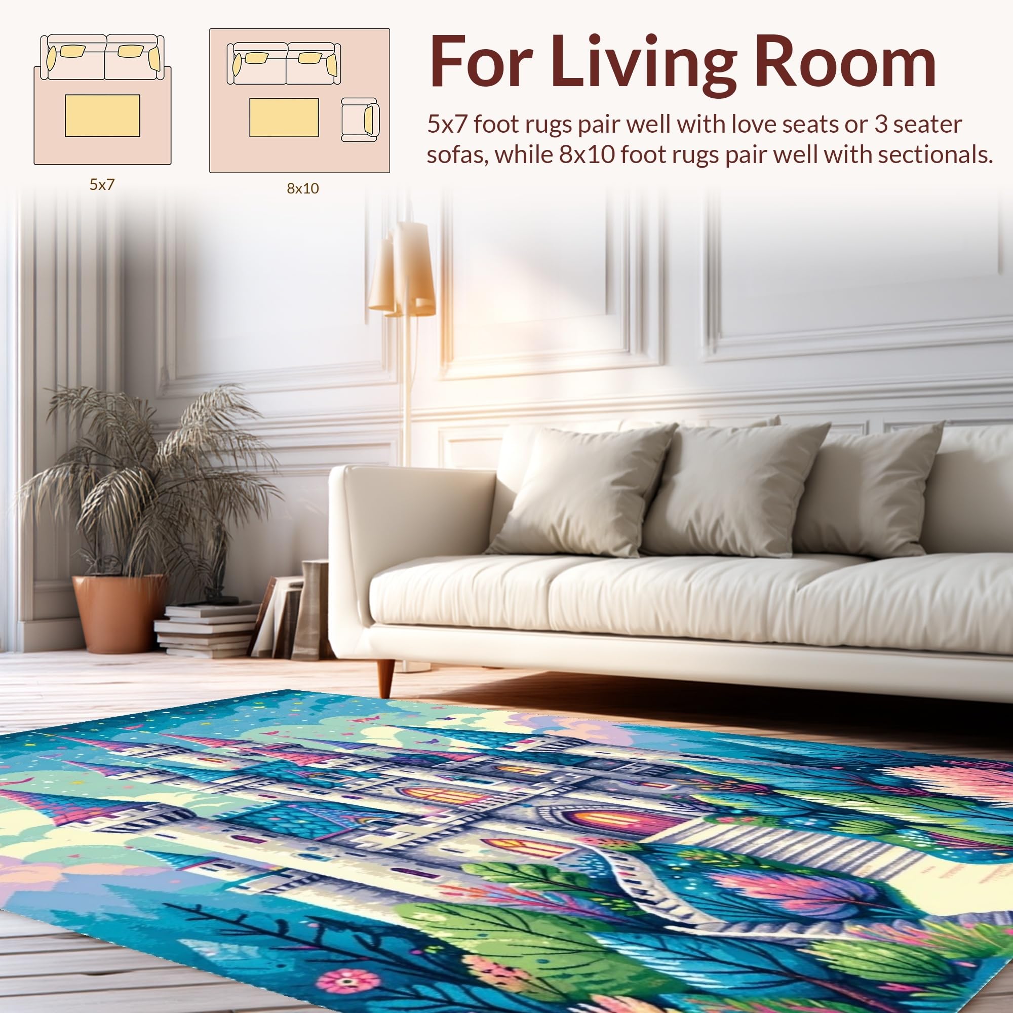 Ultra Soft Area Rug, Non Slip, Stain Resistant, Washable Area Rugs for Living Room, Bedroom, Delightful Magical Realm Vibe(Blue) Overview:
