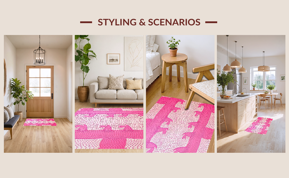 Ultra Soft Area Rug, Non Slip, Stain Resistant, Washable Area Rugs for Living Room, Bedroom, Delightful Pink and Green Fusion(Pink) Overview: