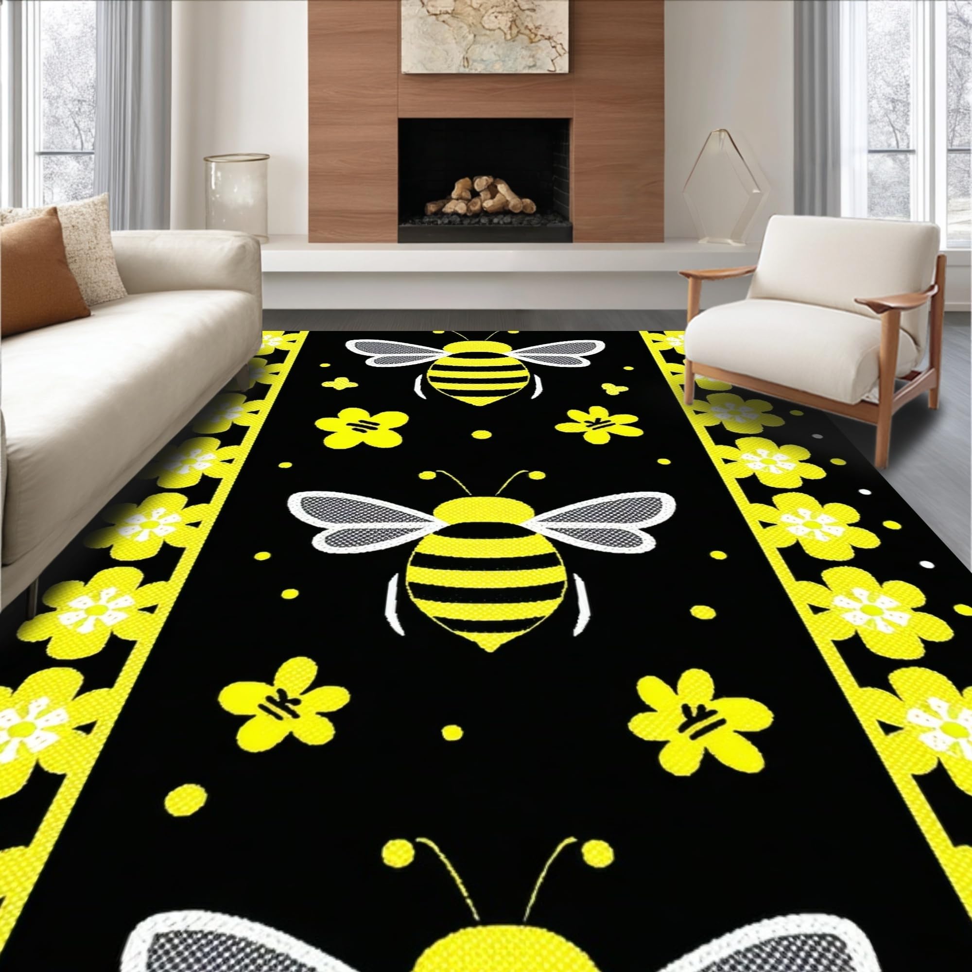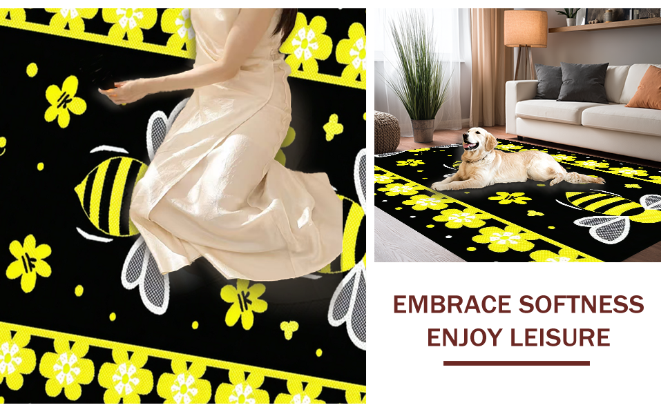 Ultra Soft Area Rug, Non Slip, Stain Resistant, Washable Area Rugs for Living Room, Bedroom, Delightful Springtime Blossom Motif(Black) Overview: