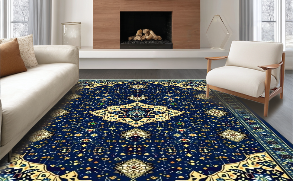 Ultra Soft Area Rug, Non Slip, Stain Resistant, Washable Area Rugs for Living Room, Bedroom, Distinctive Islamic Star Arrangement(Blue) Overview: