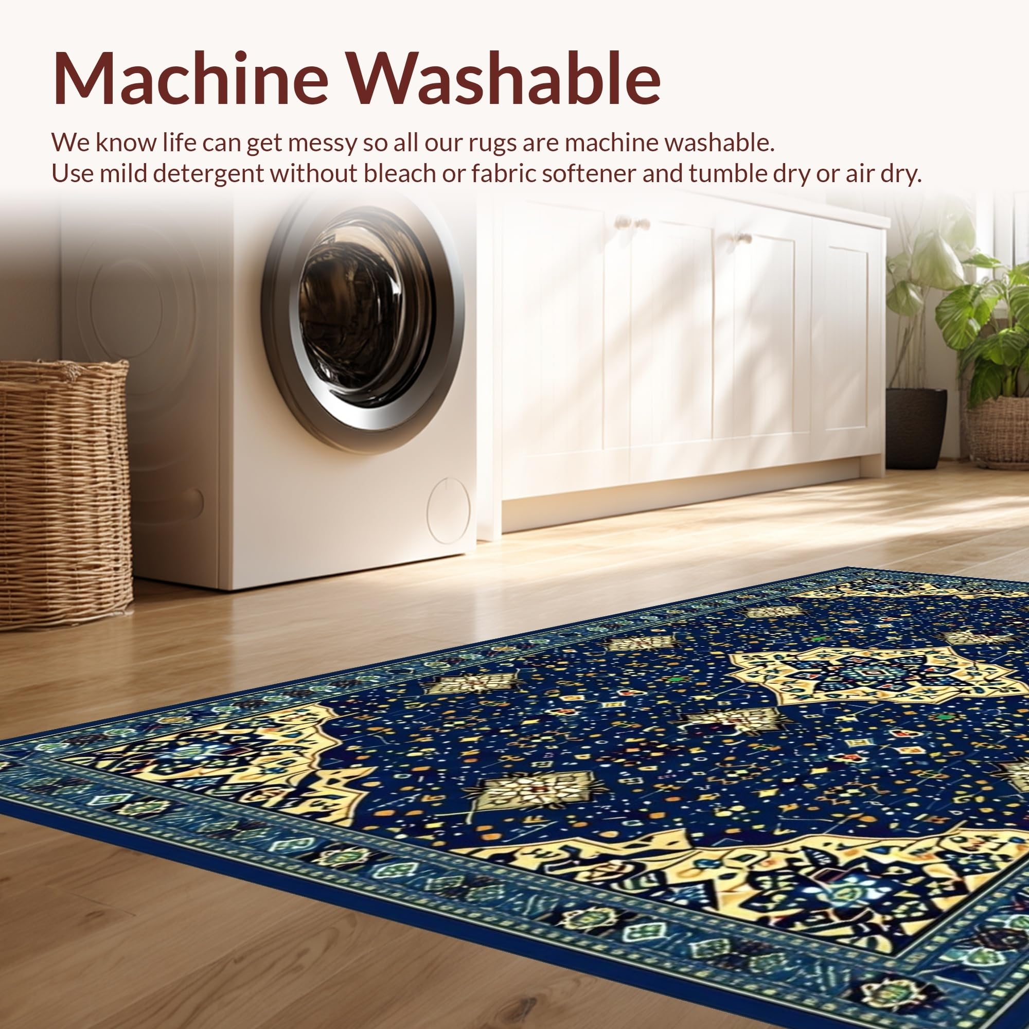 - Machine Washable: Our rugs can be easily thrown in the wash machine.