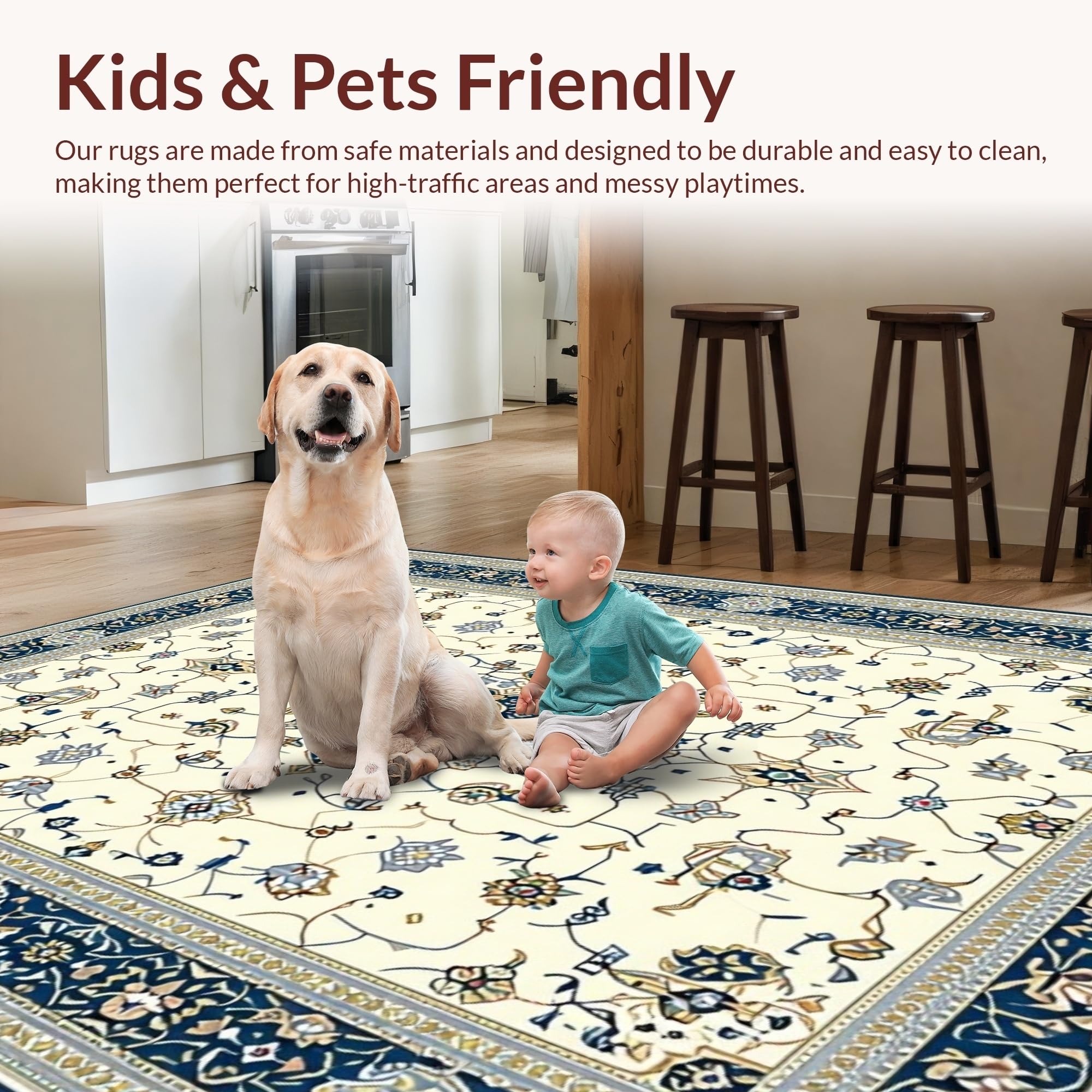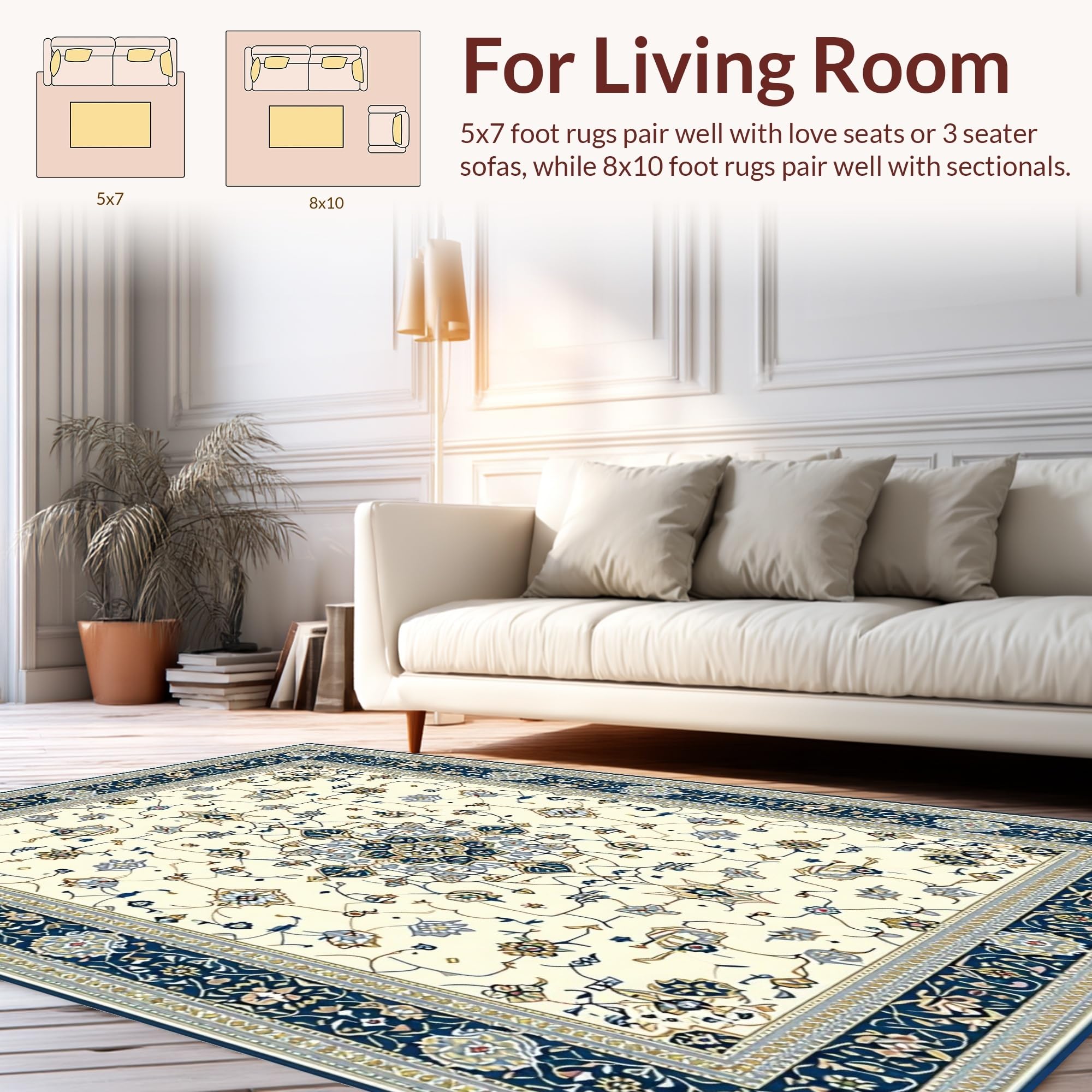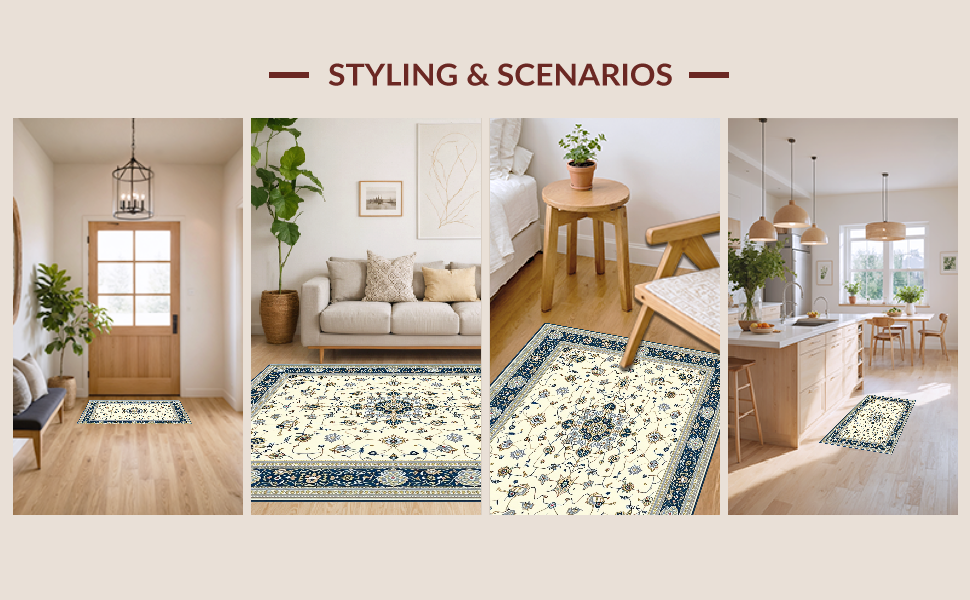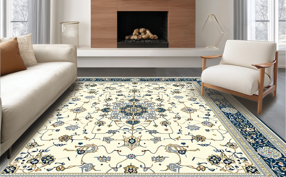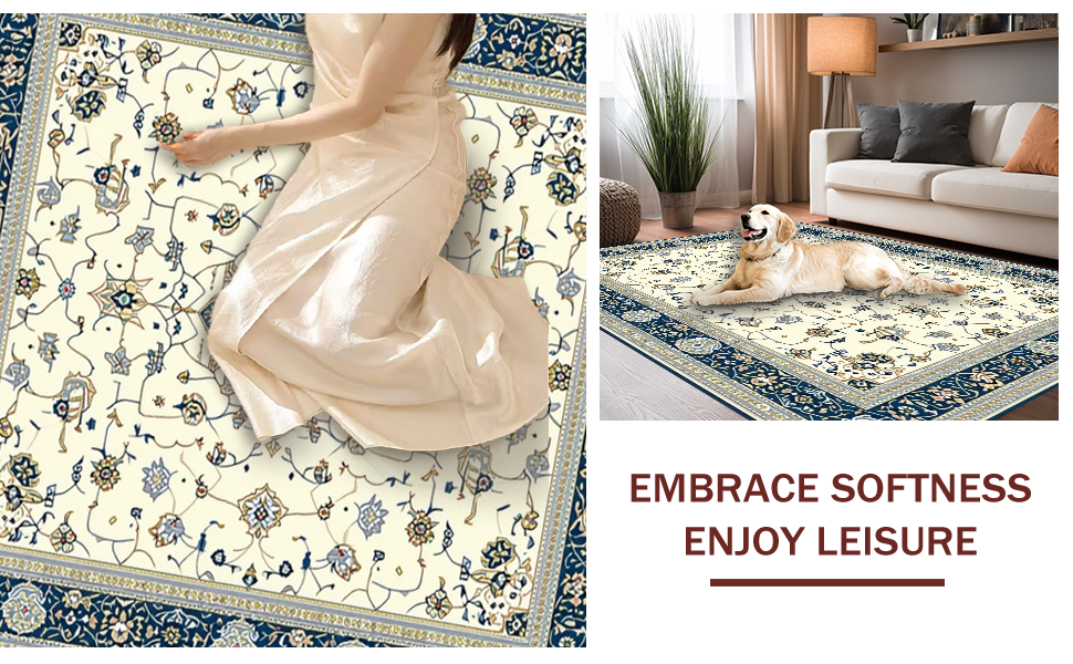 Ultra Soft Area Rug, Non Slip, Stain Resistant, Washable Area Rugs for Living Room, Bedroom, Distinctive Luxurious Curved Patterns(Beige) Overview:
