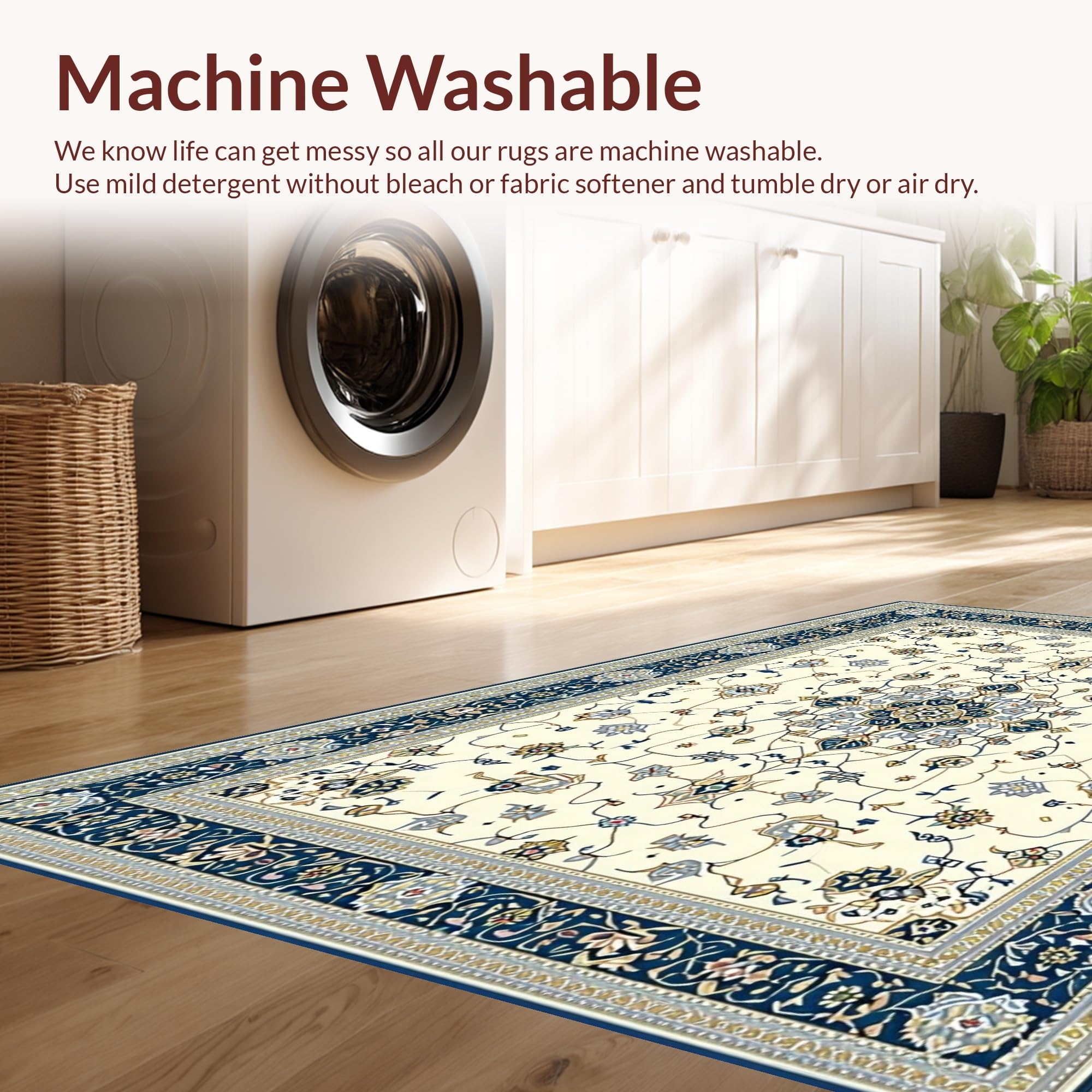 - Machine Washable: Our rugs can be easily thrown in the wash machine.