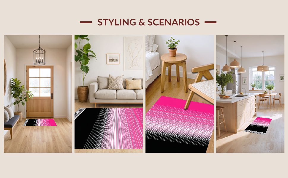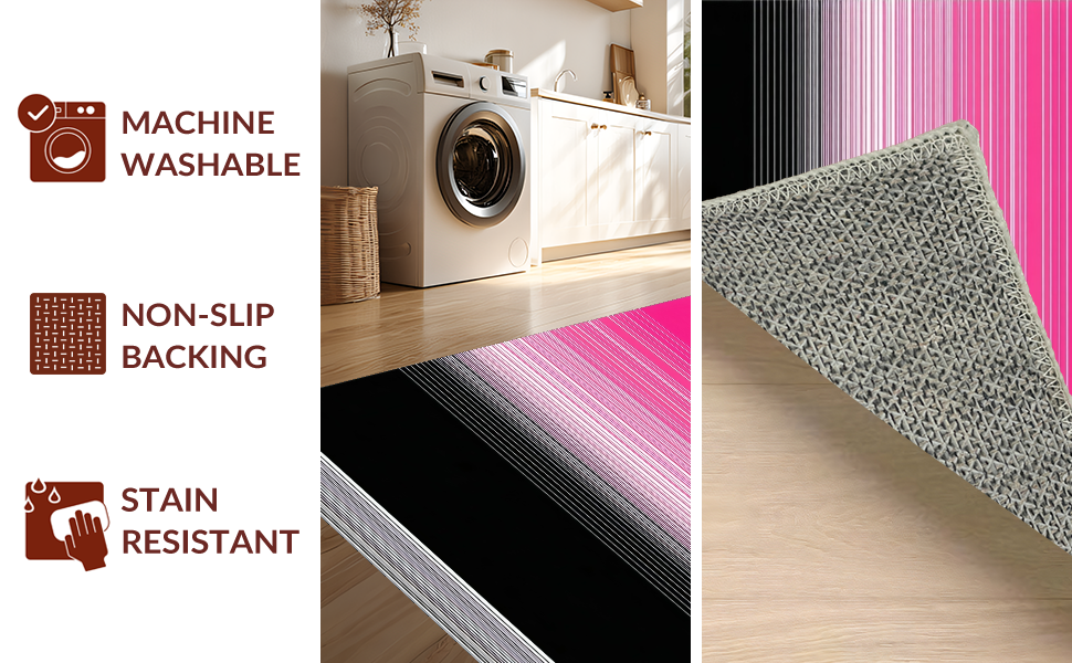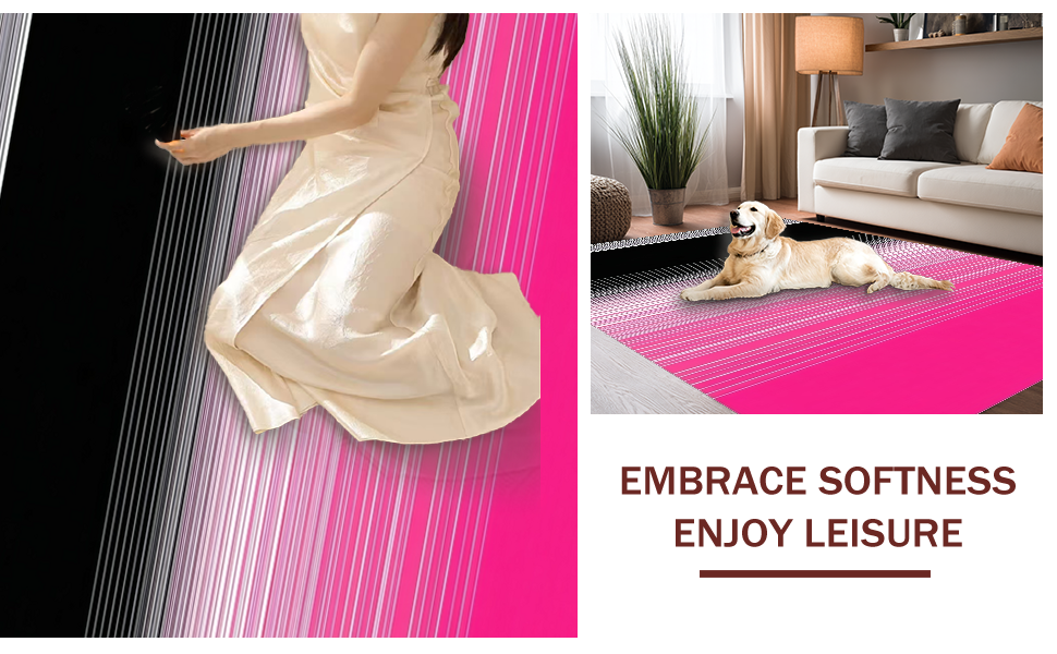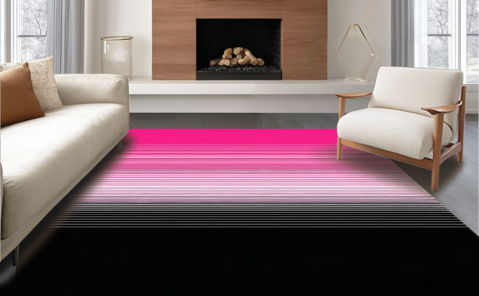 Ultra Soft Area Rug, Non Slip, Stain Resistant, Washable Area Rugs for Living Room, Bedroom, Distinctive Striped Visual Harmony(Pink) Overview: