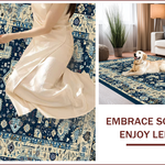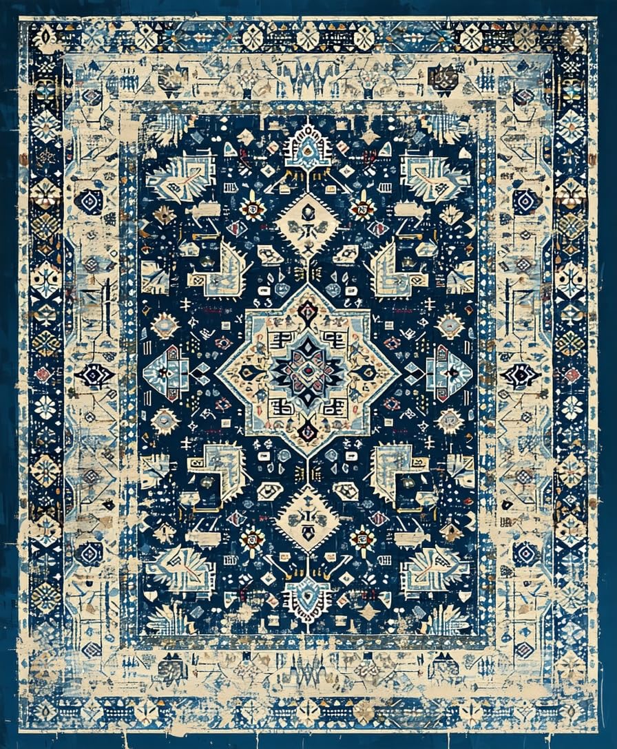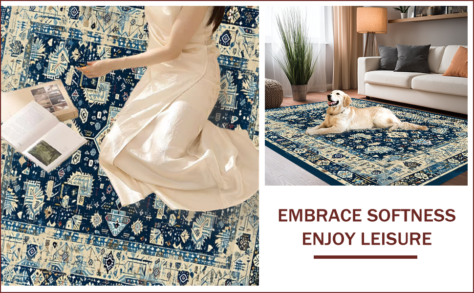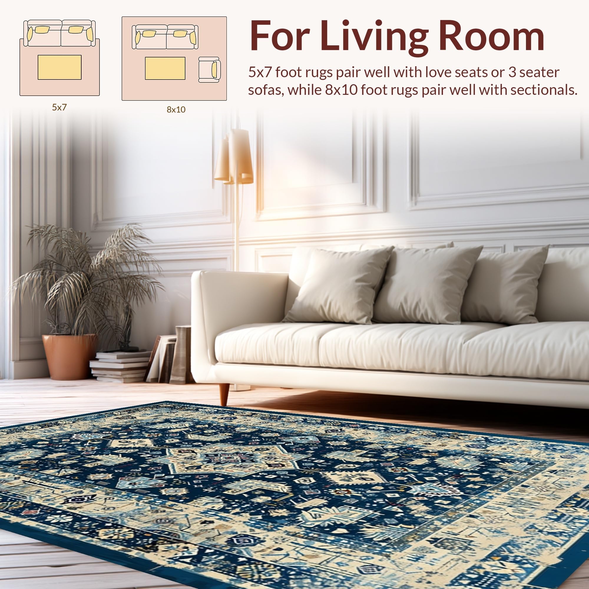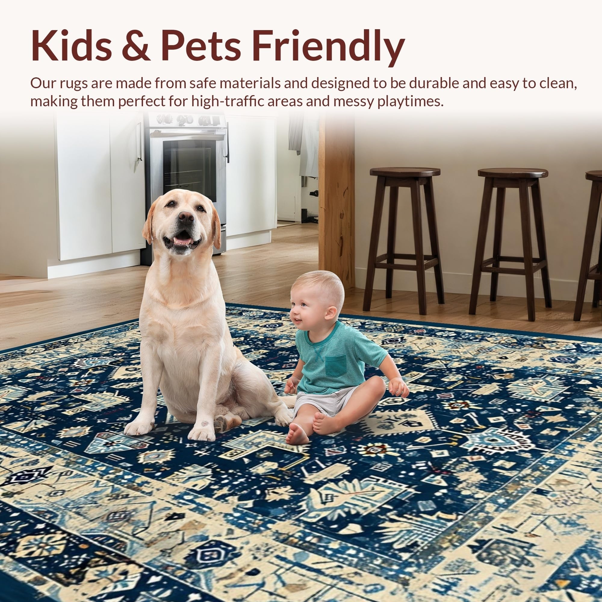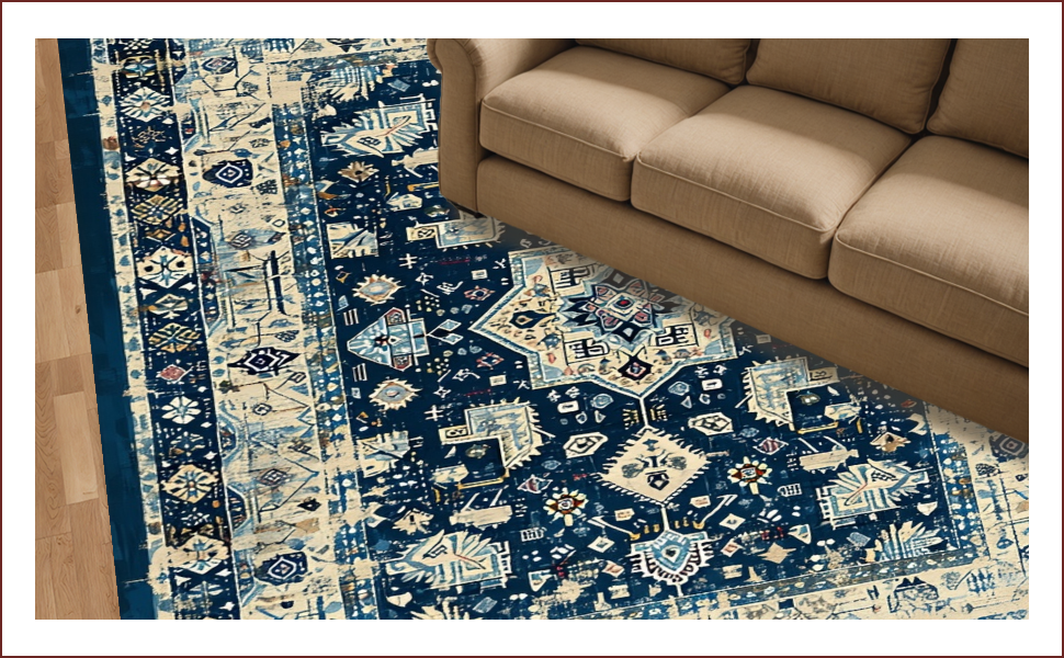 Ultra Soft Area Rug, Non Slip, Stain Resistant, Washable Area Rugs for Living Room, Bedroom, Distressed Blue Geometric Elegance(Blue) Overview: