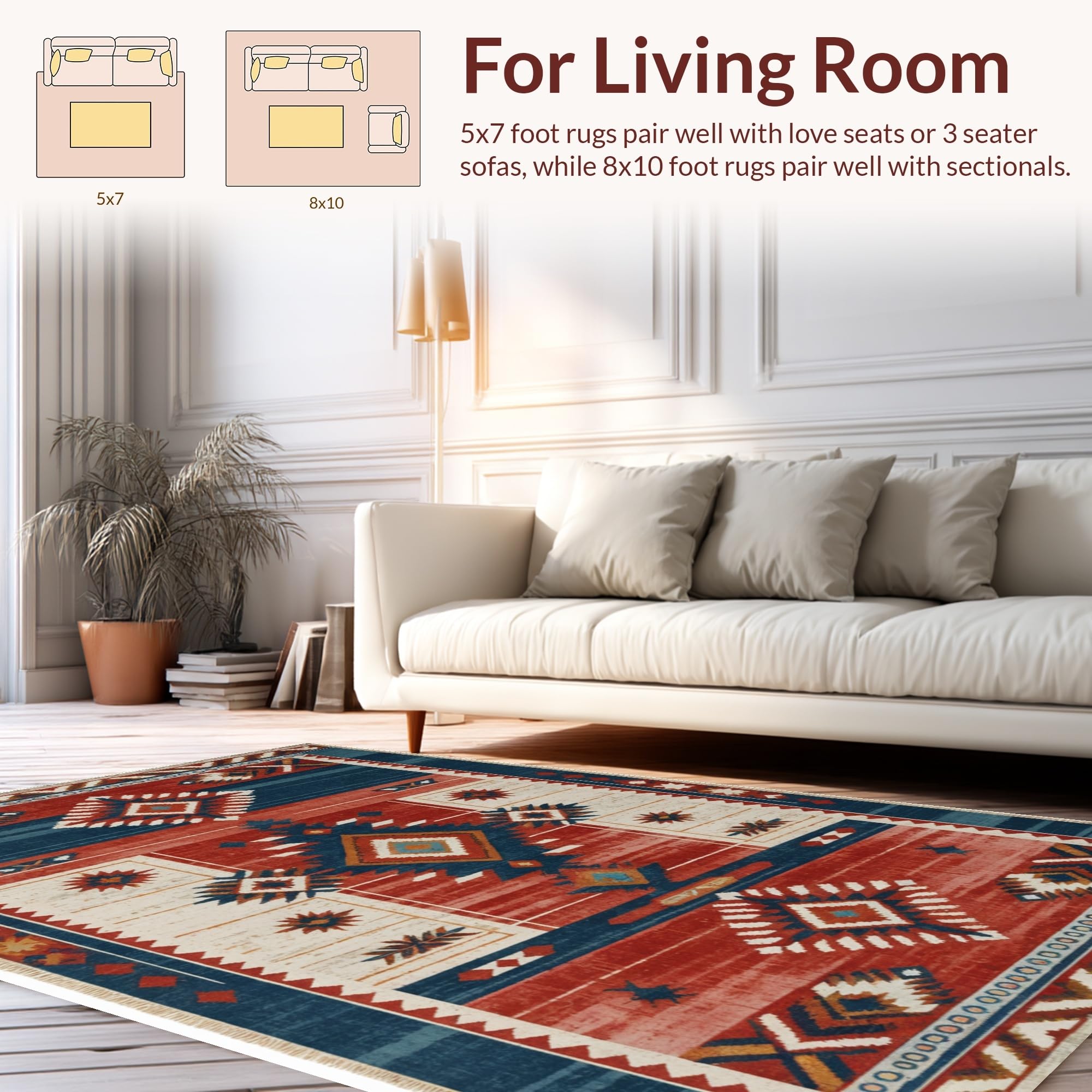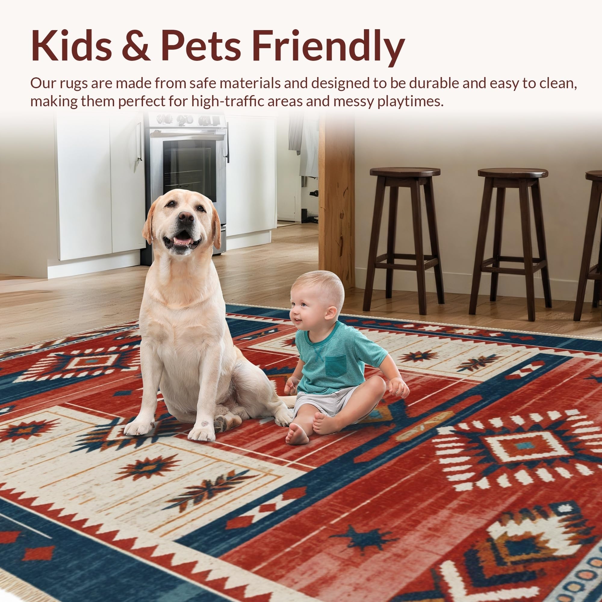 Ultra Soft Area Rug, Non Slip, Stain Resistant, Washable Area Rugs for Living Room, Bedroom, Distressed Crimson Bedroom Stain-Resistant Area Carpet(Red) Overview: