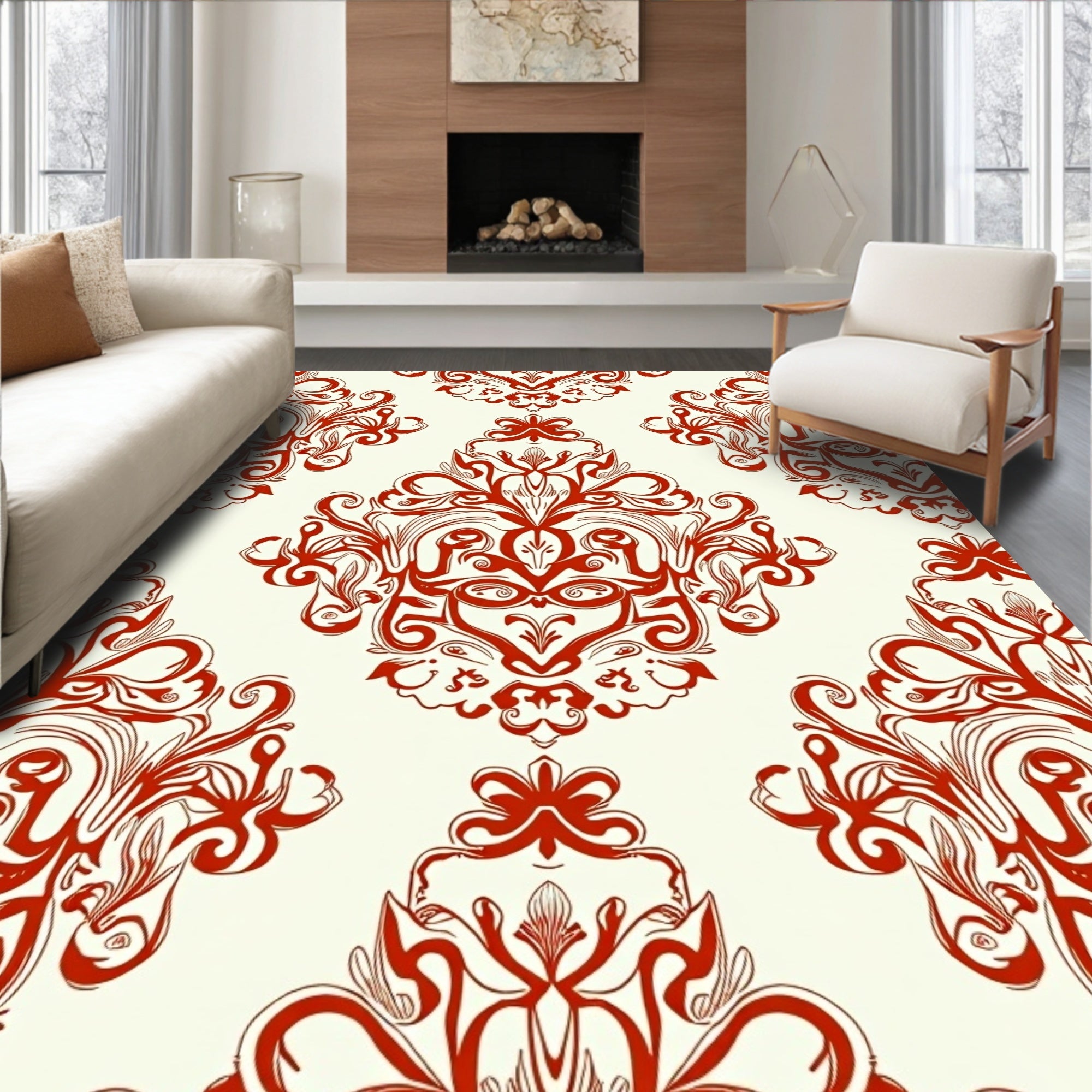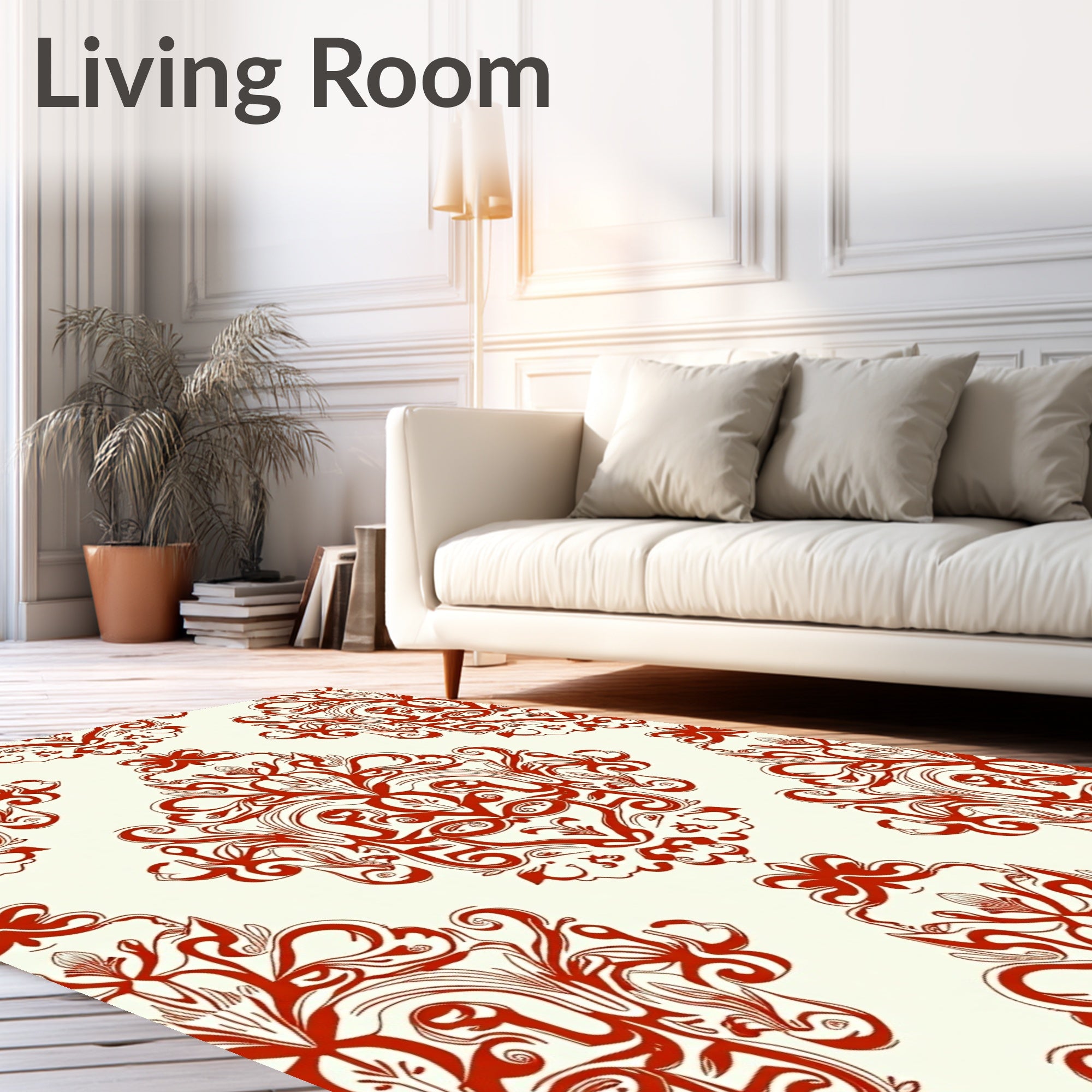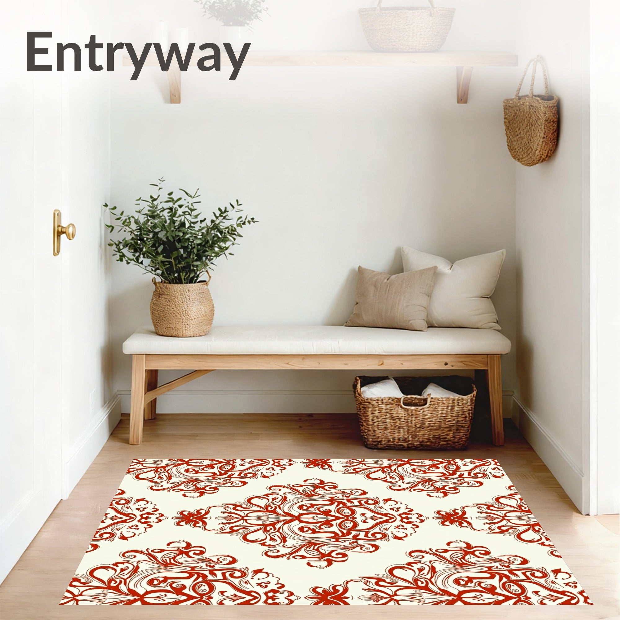 Ultra Soft Area Rug, Non Slip, Stain Resistant, Washable Area Rugs for Living Room, Bedroom, Distressed Floral Arabesque Motif(Red) Overview:
