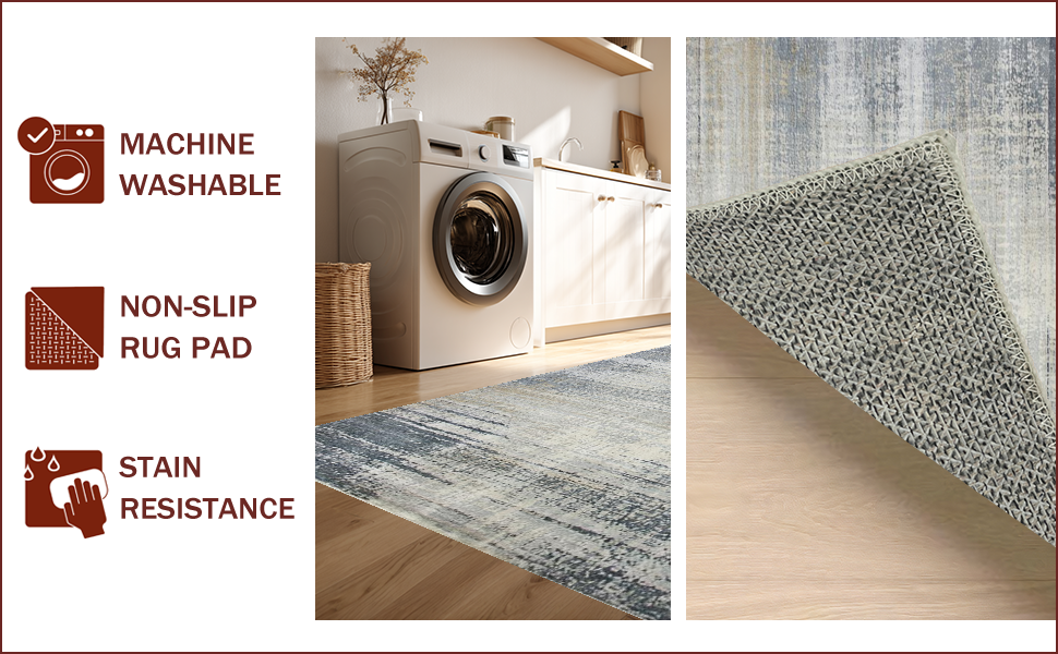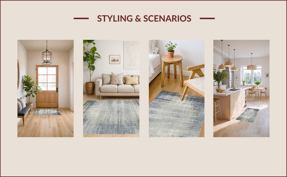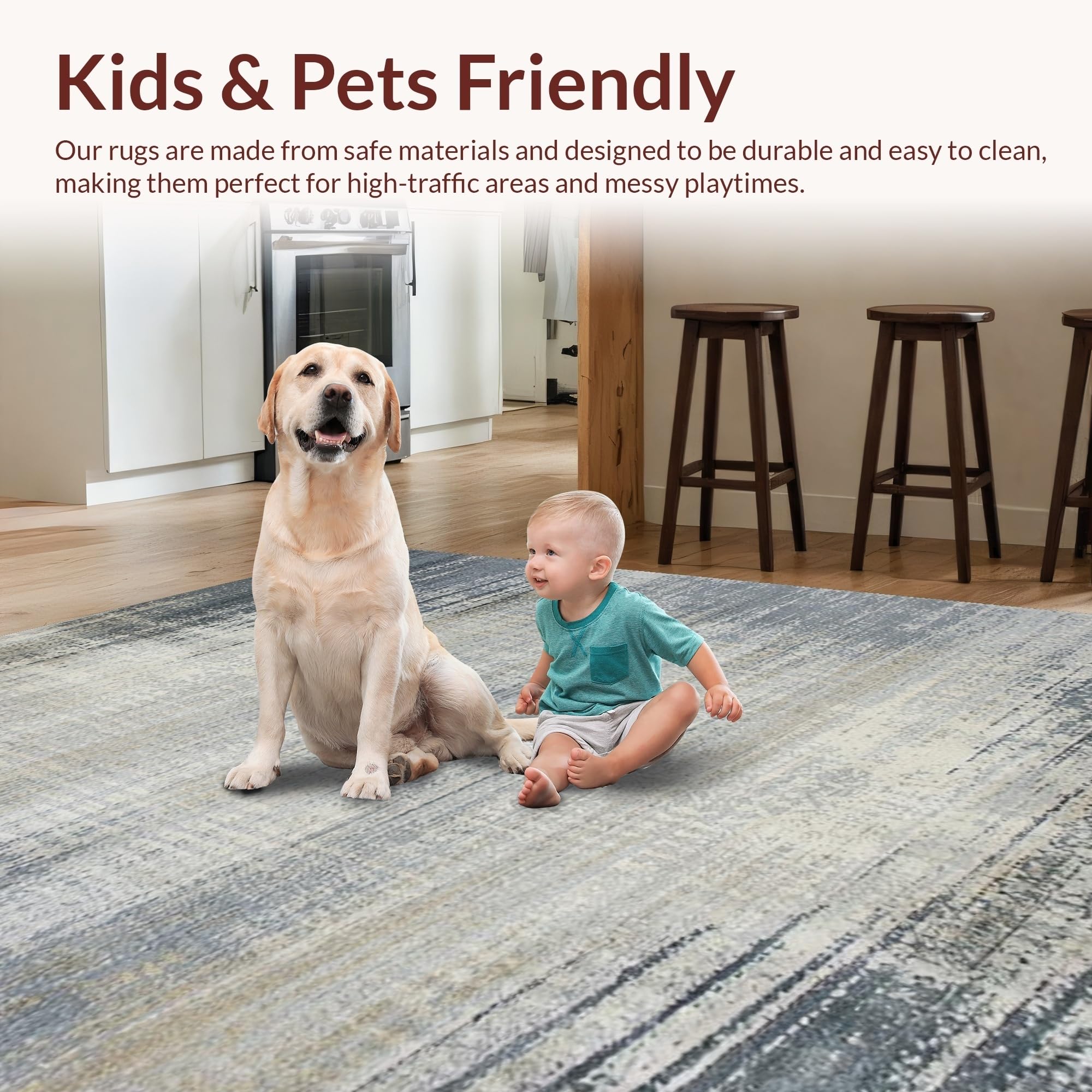 Ultra Soft Area Rug, Non Slip, Stain Resistant, Washable Area Rugs for Living Room, Bedroom, Distressed Modern Luxe Aesthetic(Gray) Overview: