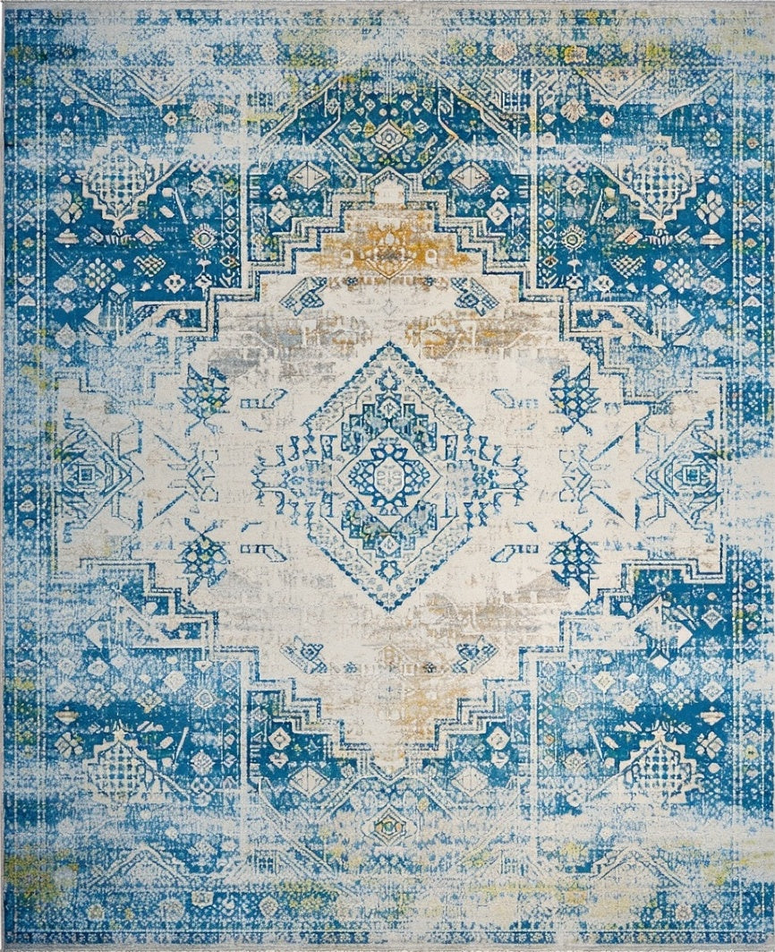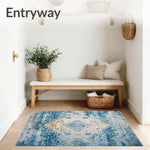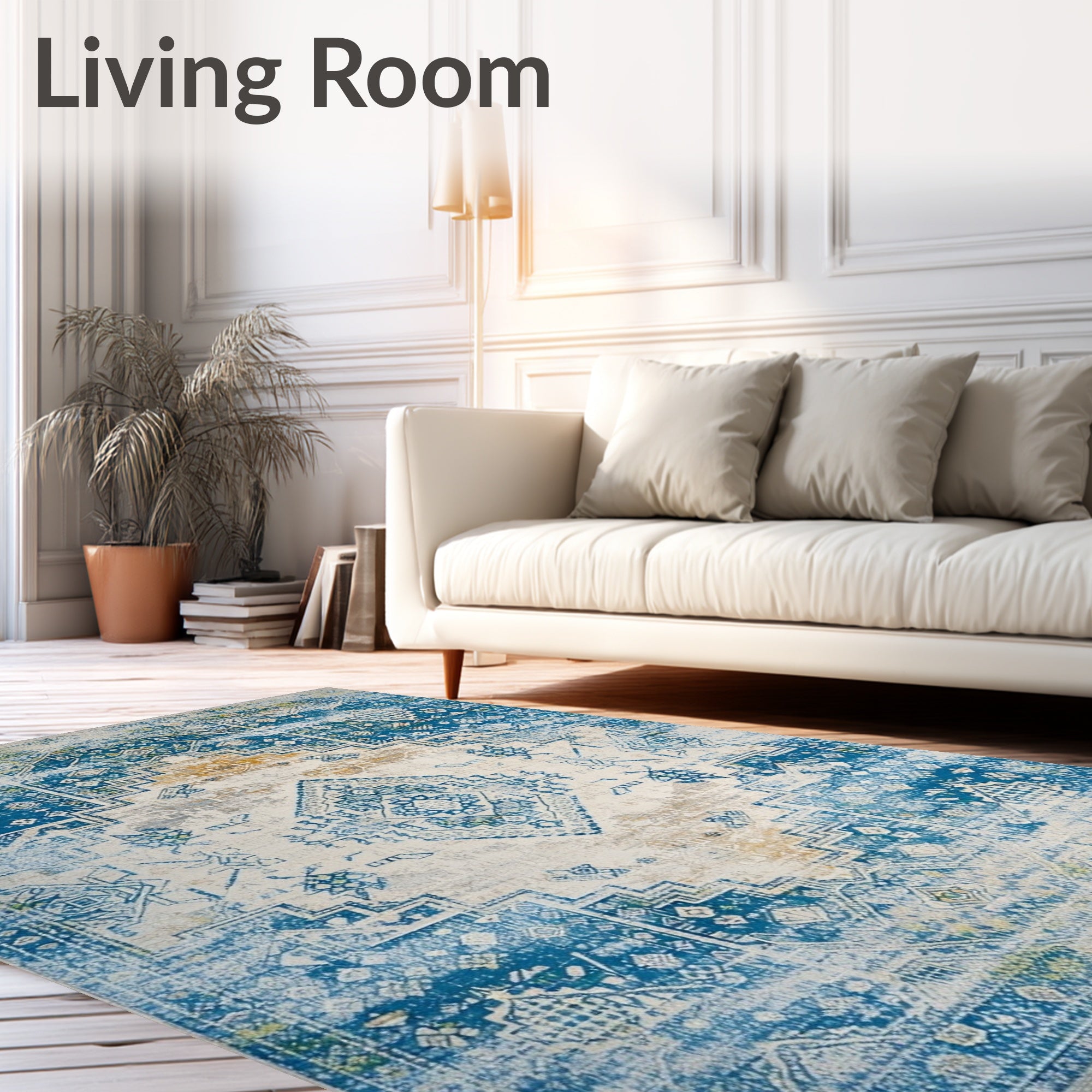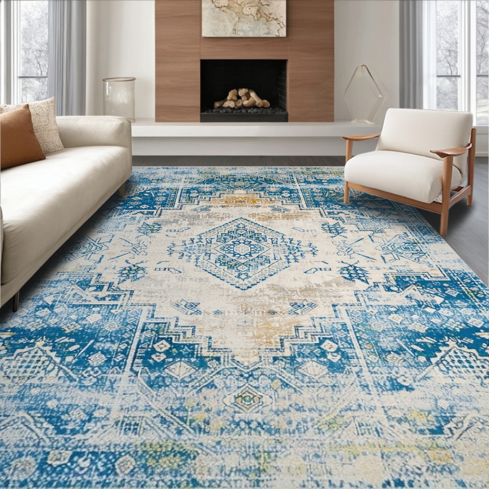 Ultra Soft Area Rug, Non Slip, Stain Resistant, Washable Area Rugs for Living Room, Bedroom, Distressed Vintage Abstract Geometric Area in Blue and Beige(Blue) Overview: