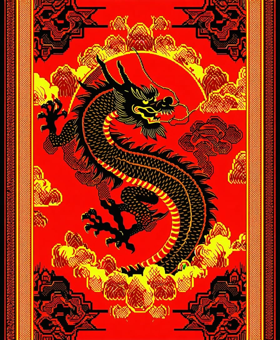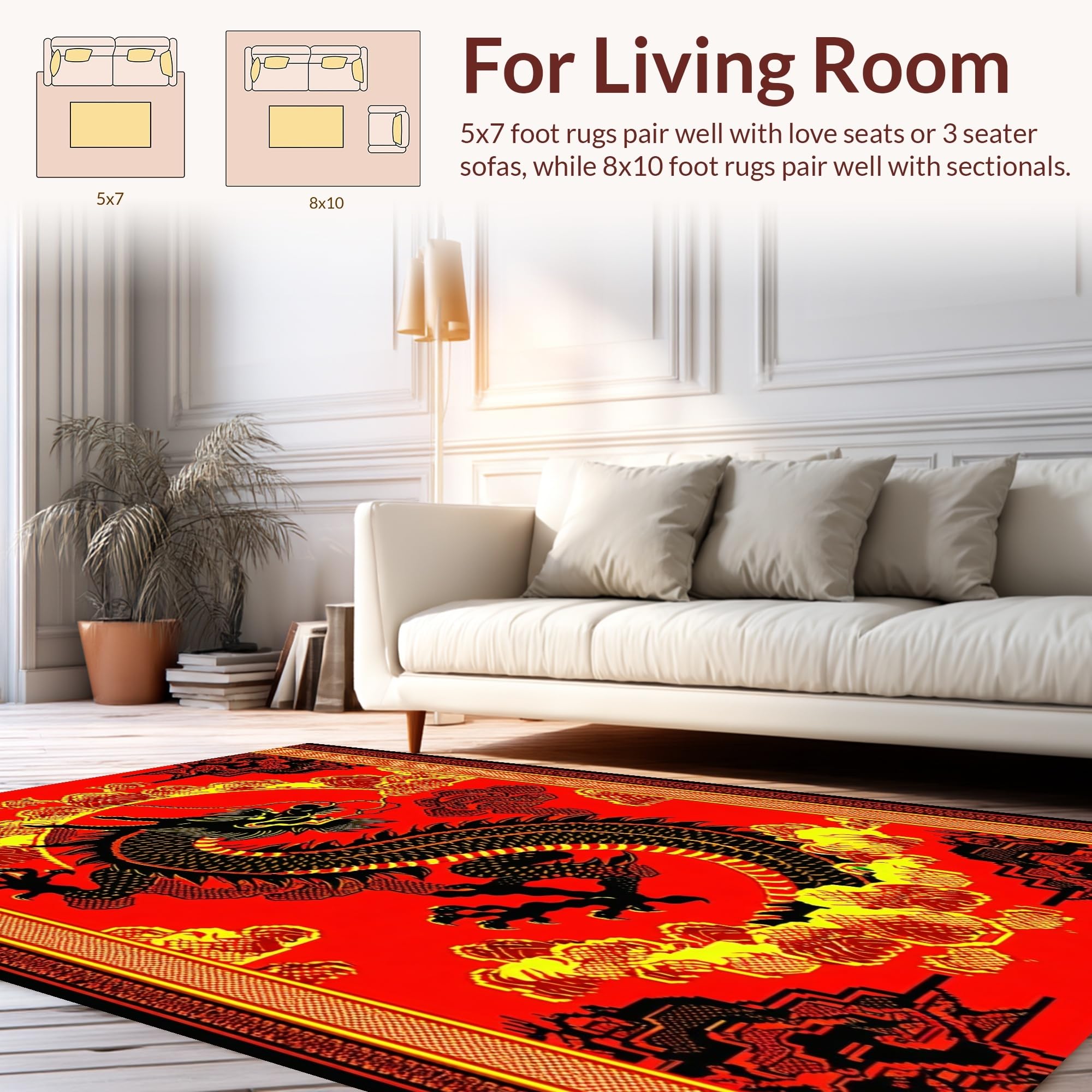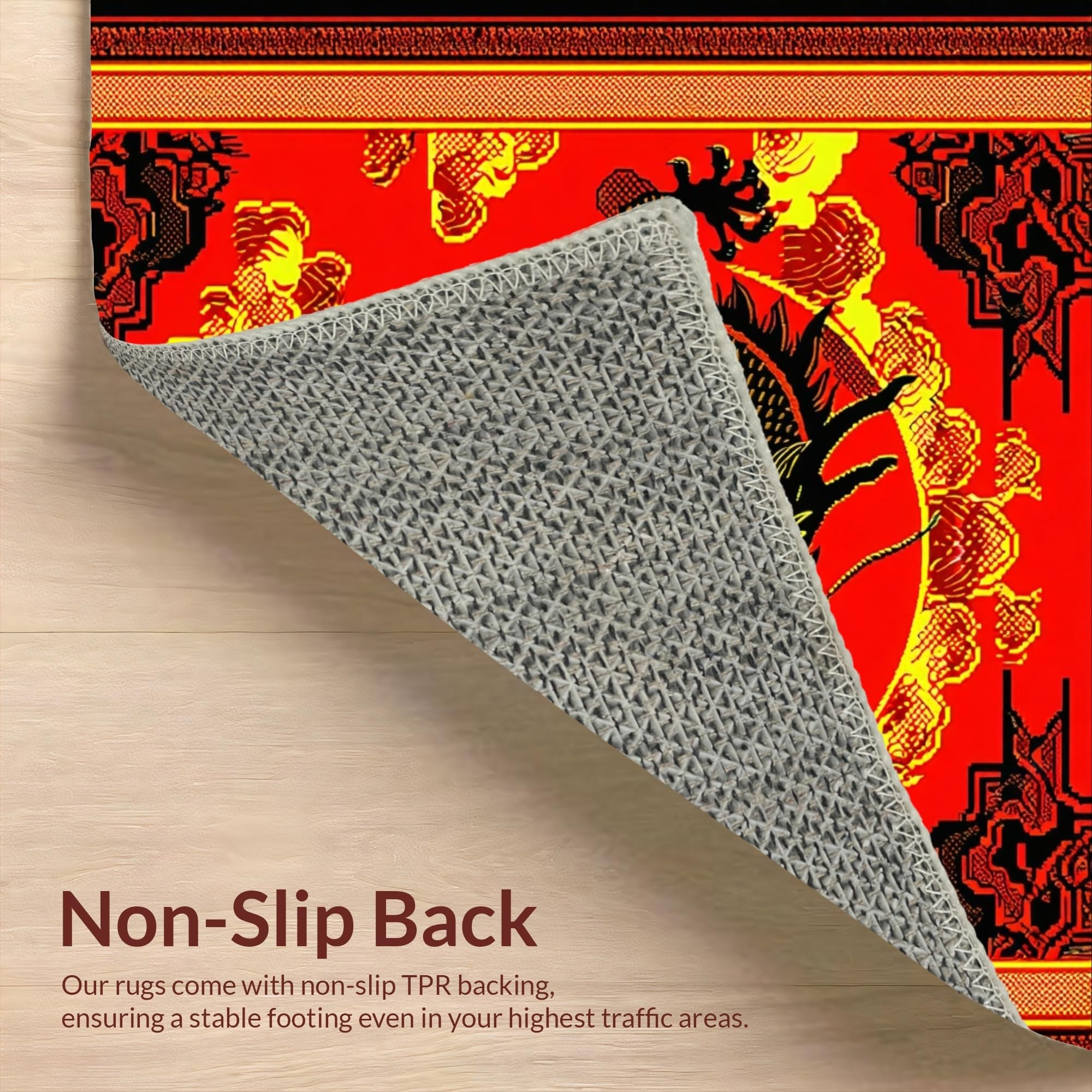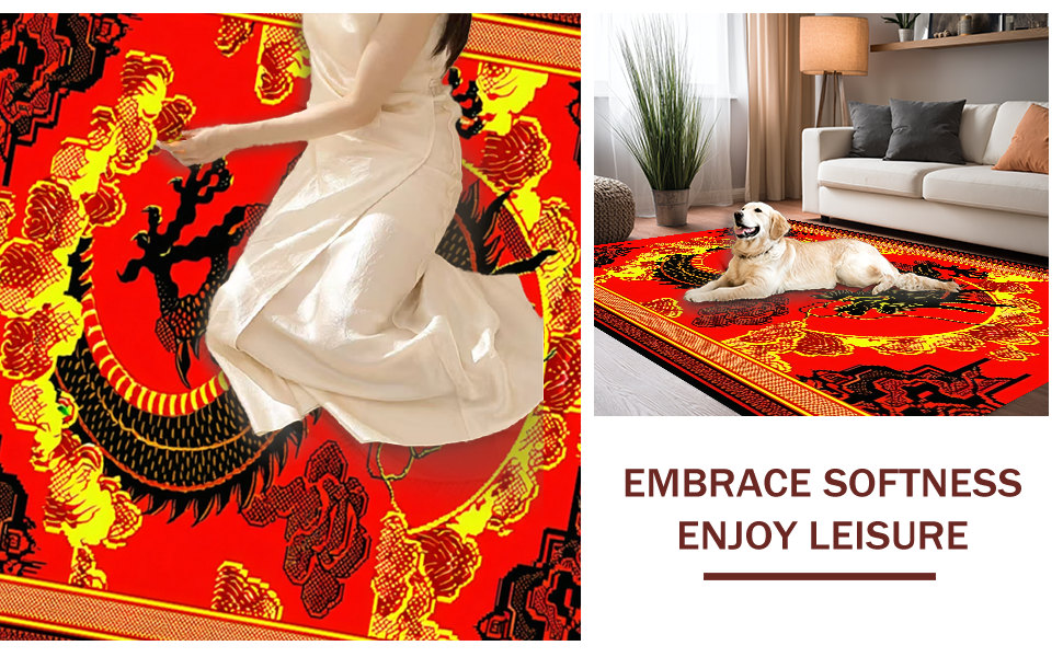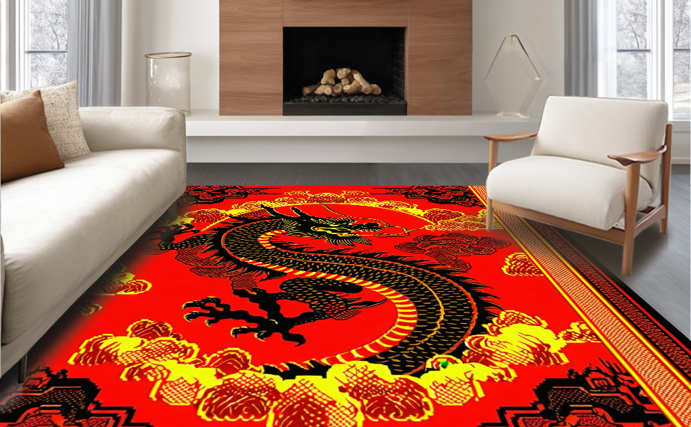 Ultra Soft Area Rug, Non Slip, Stain Resistant, Washable Area Rugs for Living Room, Bedroom, Dramatic Gothic Dragon Silhouette(Red) Overview:
