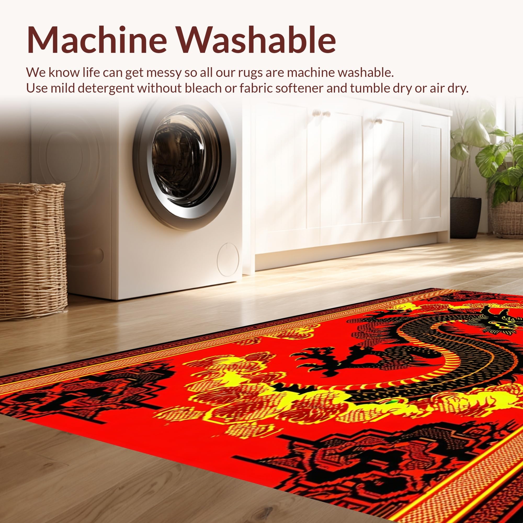 - Machine Washable: Our rugs can be easily thrown in the wash machine.