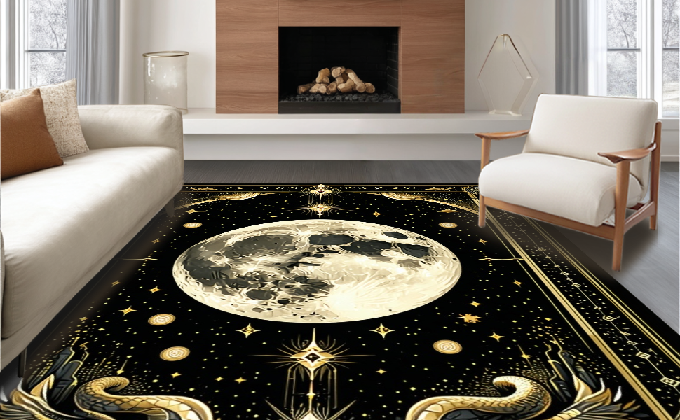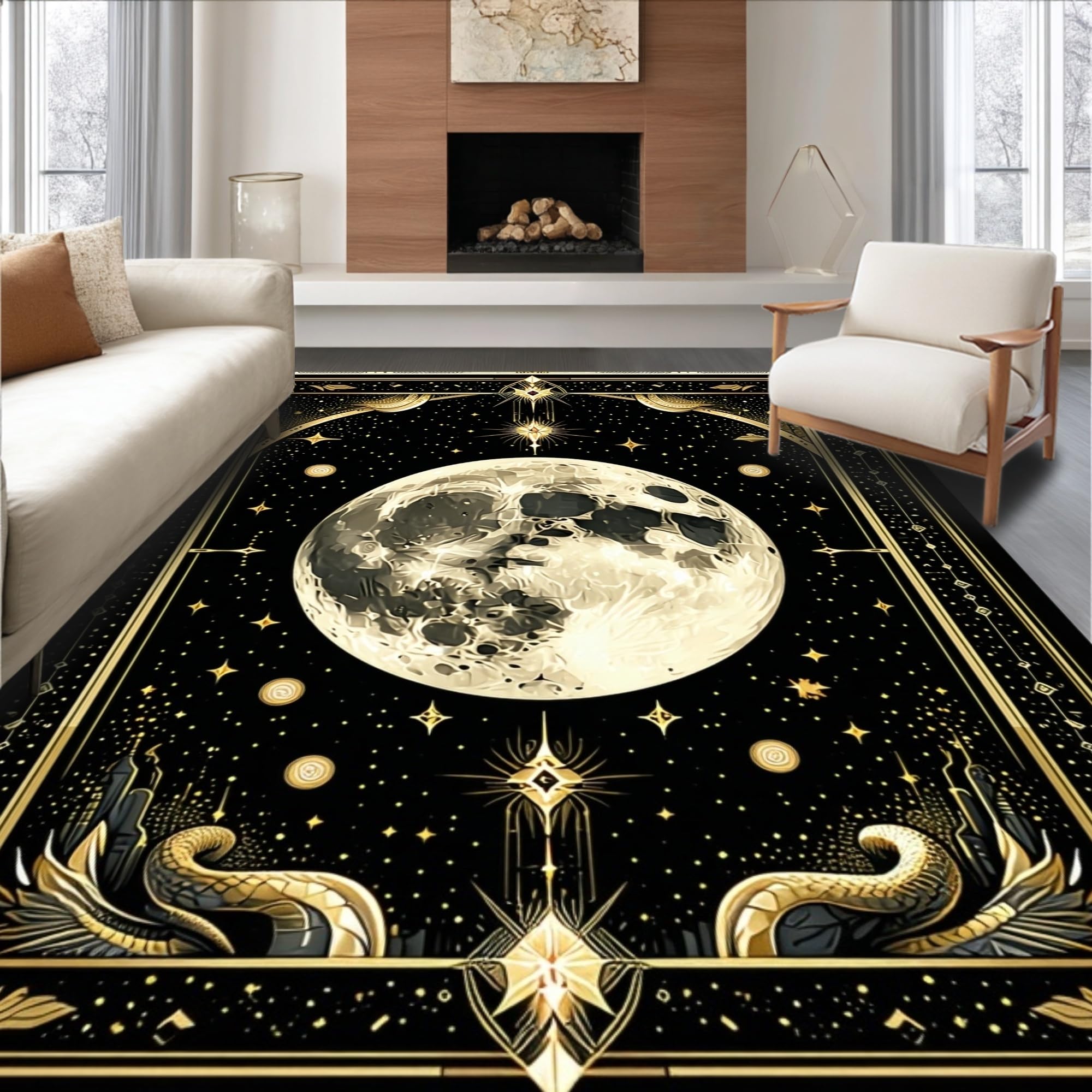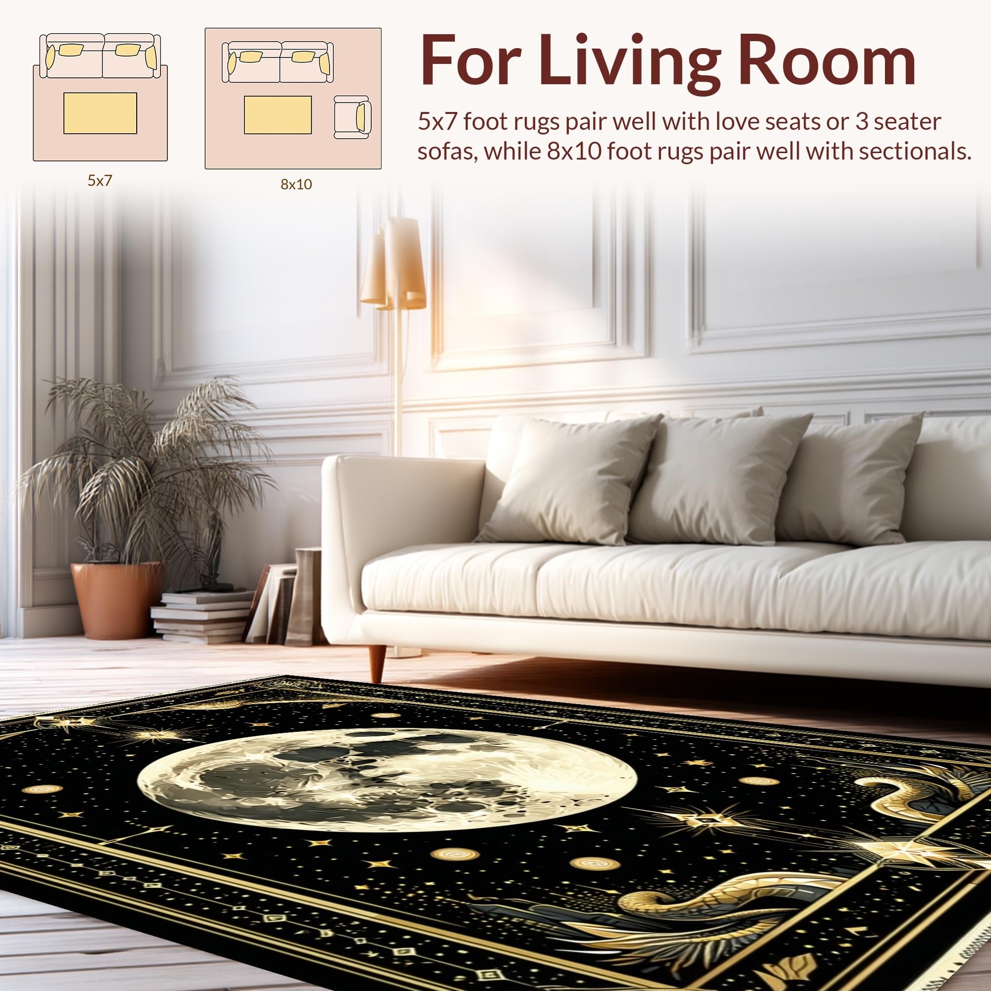 Ultra Soft Area Rug, Non Slip, Stain Resistant, Washable Area Rugs for Living Room, Bedroom, Dramatic Gothic Starry Elements(Gold) Overview: