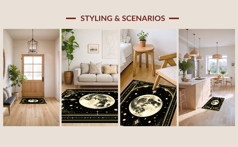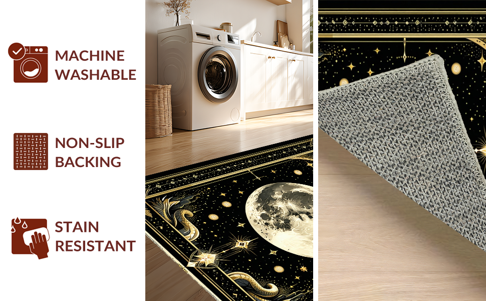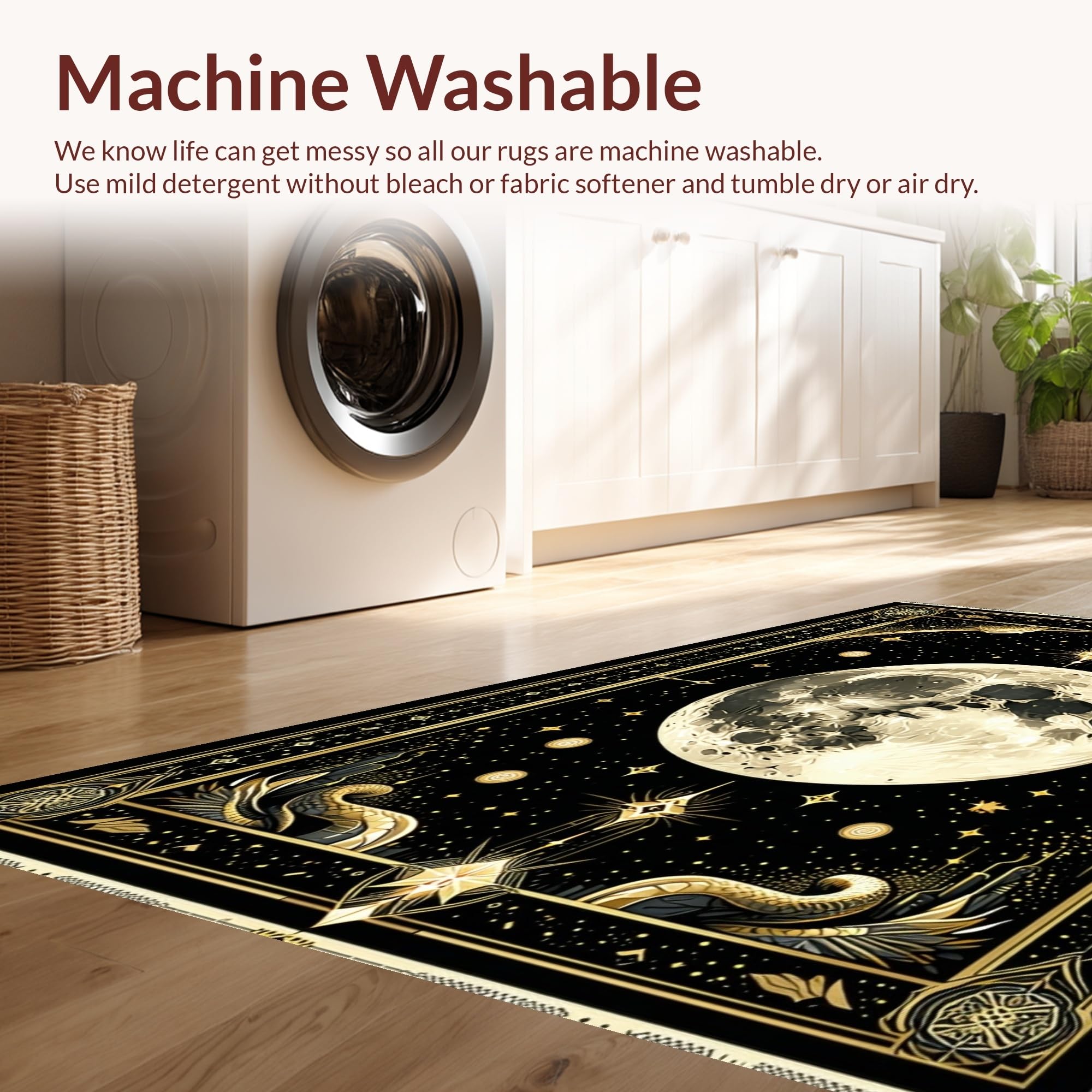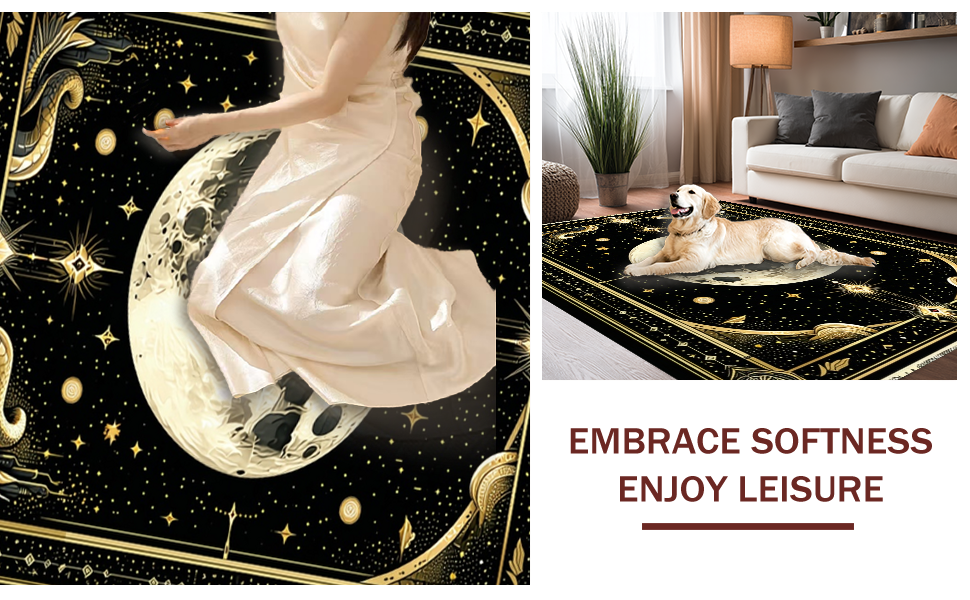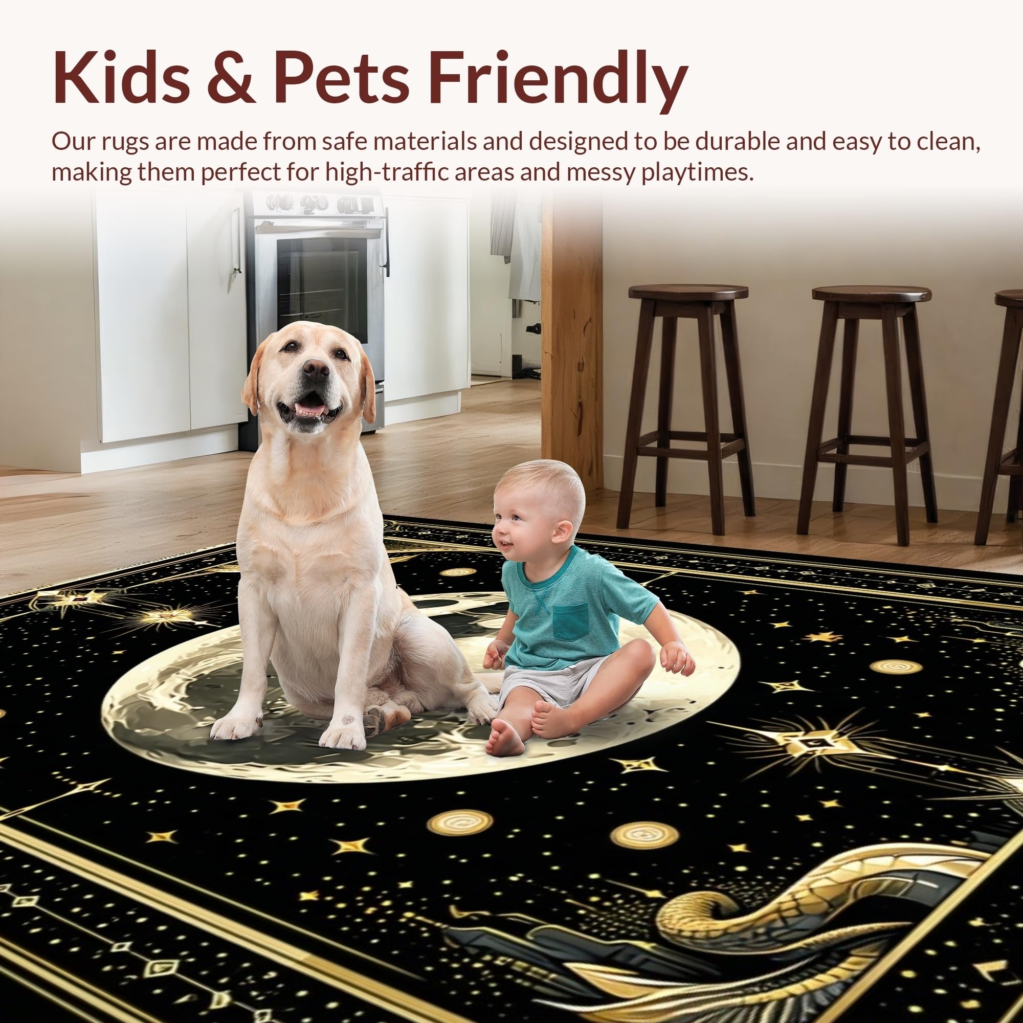 Ultra Soft Area Rug, Non Slip, Stain Resistant, Washable Area Rugs for Living Room, Bedroom, Dramatic Gothic Starry Elements(Gold) Overview: