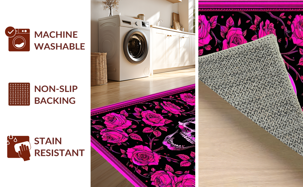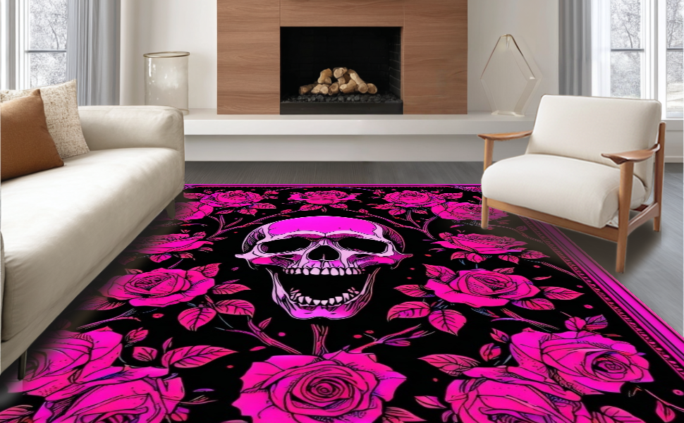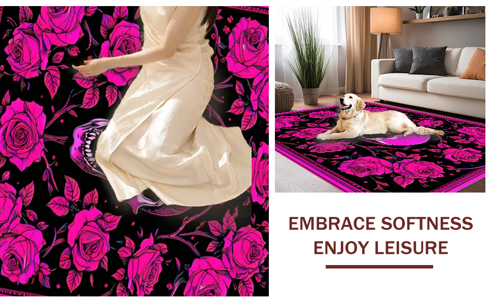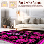 Ultra Soft Area Rug, Non Slip, Stain Resistant, Washable Area Rugs for Living Room, Bedroom, Dramatic Rose and Bone Theme(Black) Overview: