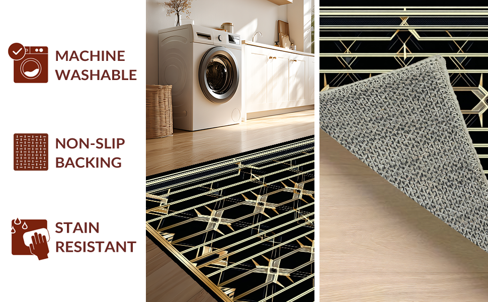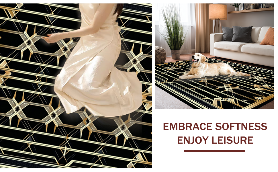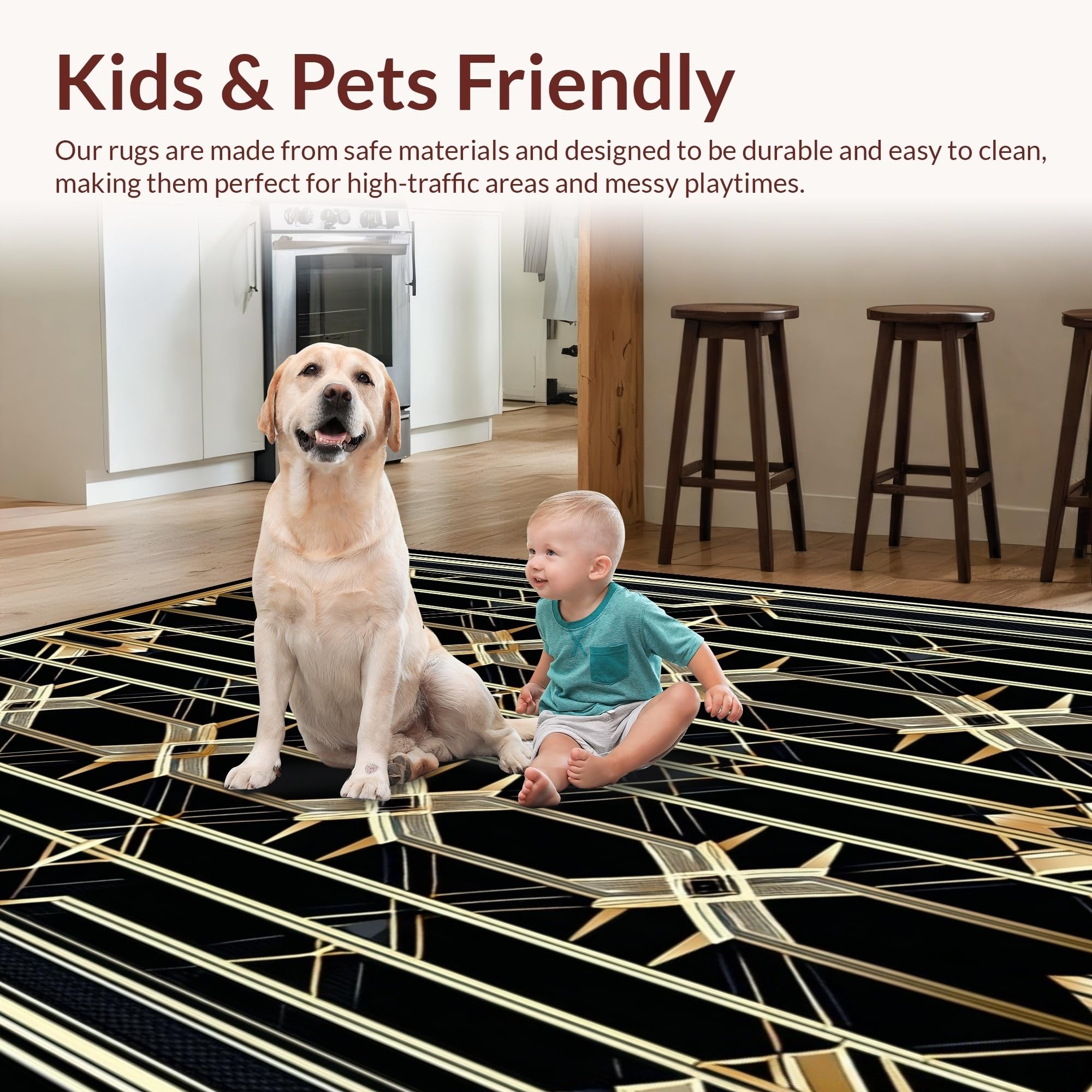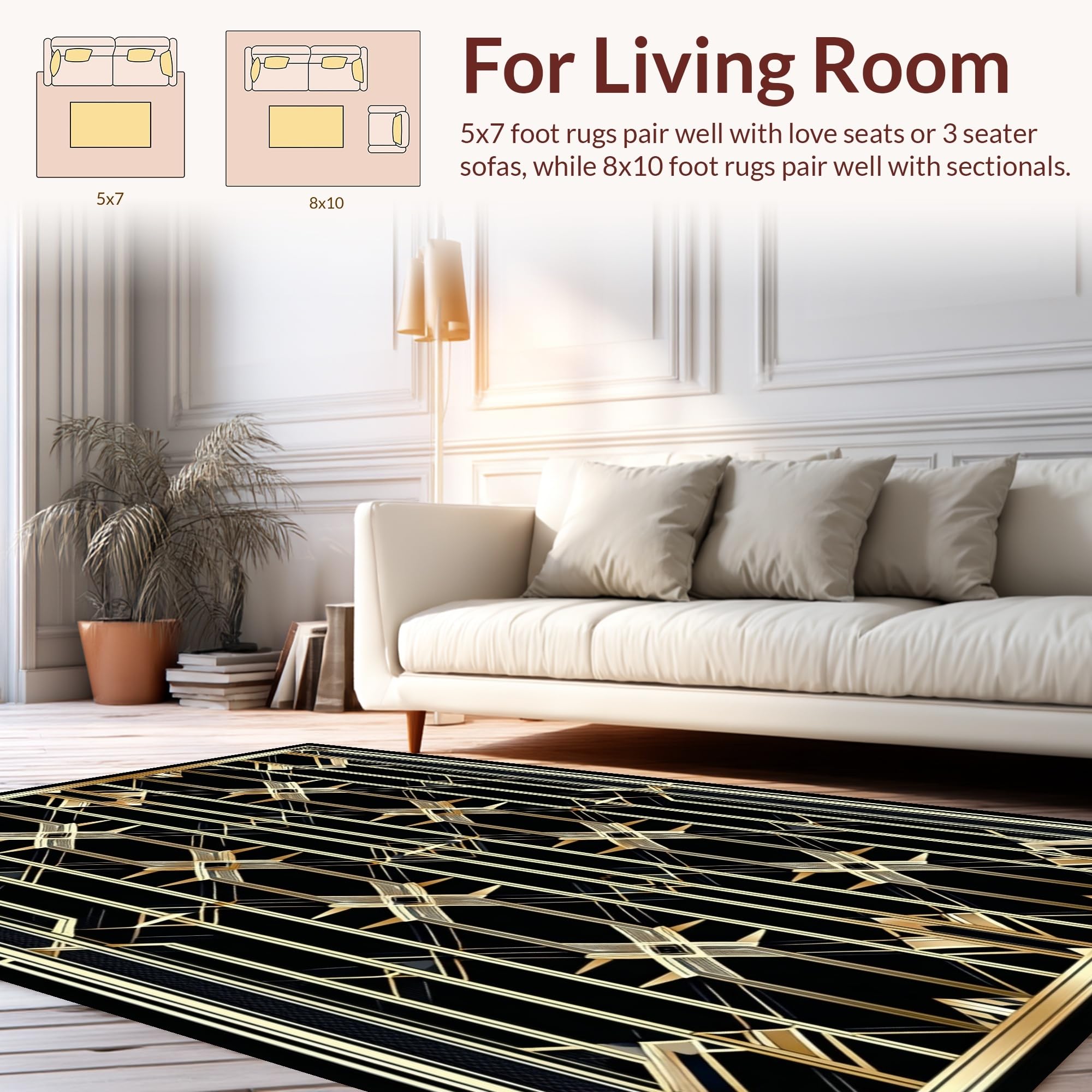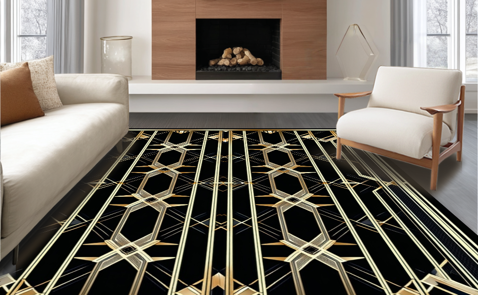 Ultra Soft Area Rug, Non Slip, Stain Resistant, Washable Area Rugs for Living Room, Bedroom, Dramatic Seamless Art Deco Influence(Black) Overview: