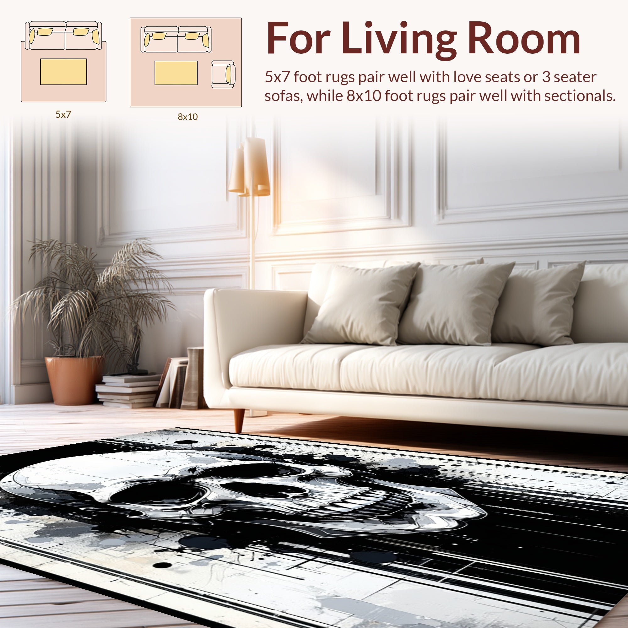 Flatwoven High Traffic Area Rug, Dramatic Smoke Inspired Aesthetic, Non Slip, Stain Resistant, Washable Area Rugs for Living Room, Bedroom (Black) Overview: