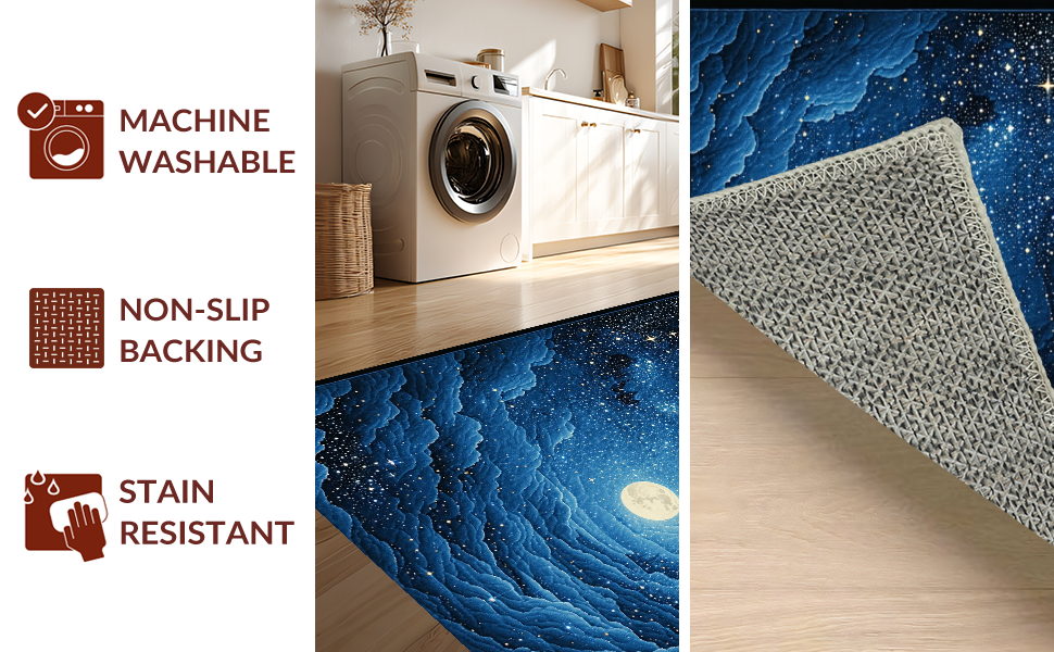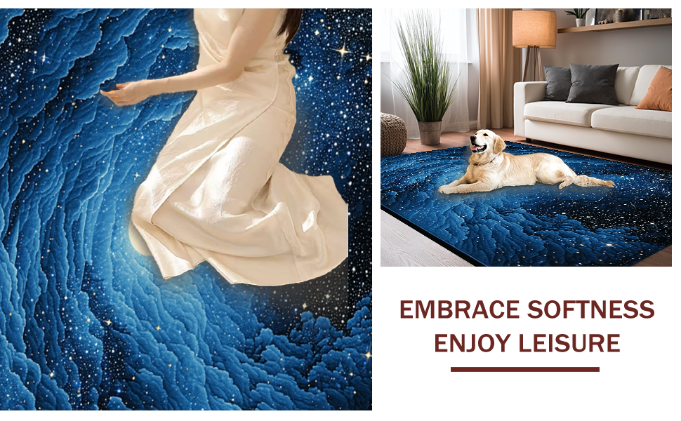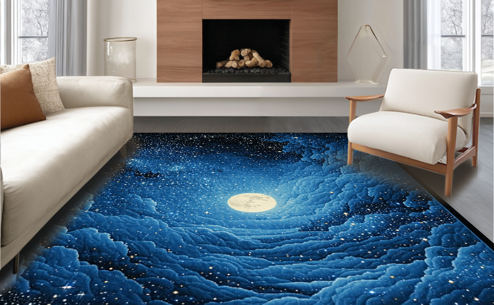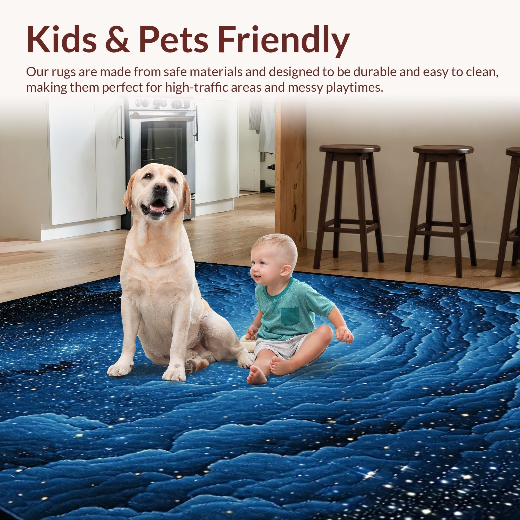 Ultra Soft Area Rug, Non Slip, Stain Resistant, Washable Area Rugs for Living Room, Bedroom, Dreamy Astral Patterned Floor Mat(Blue) Overview: