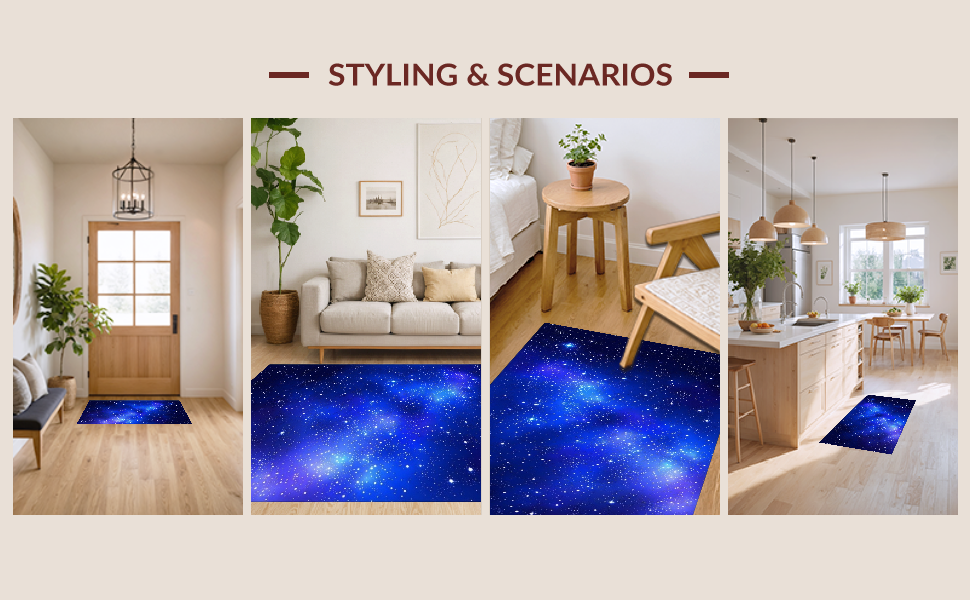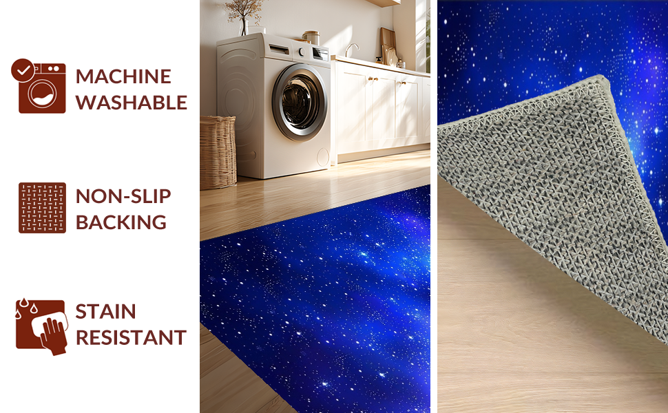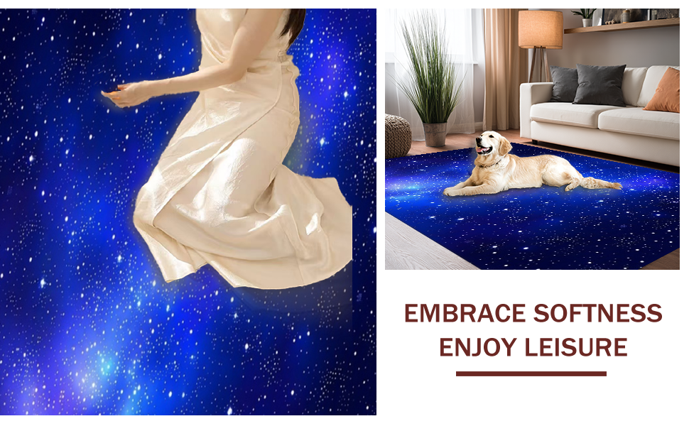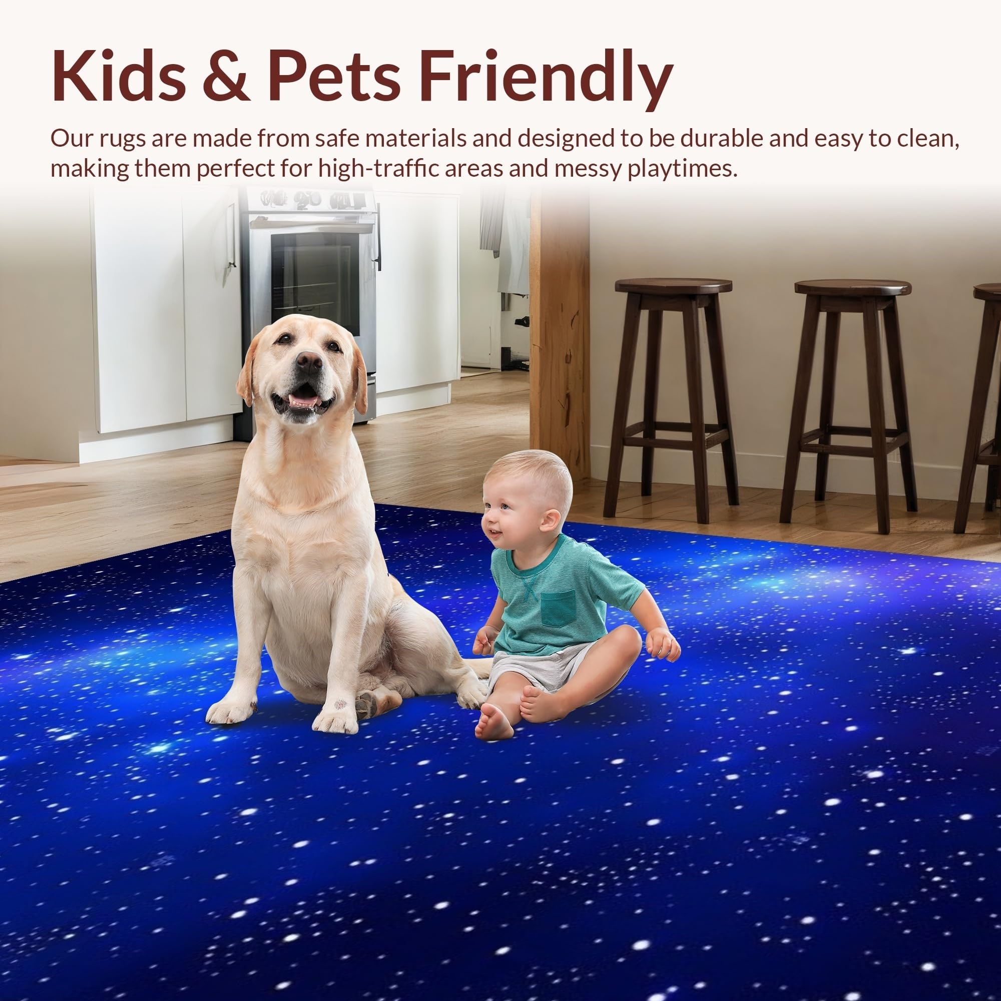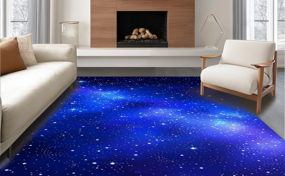 Ultra Soft Area Rug, Non Slip, Stain Resistant, Washable Area Rugs for Living Room, Bedroom, Dreamy Ethereal Starry Illumination(Blue) Overview: