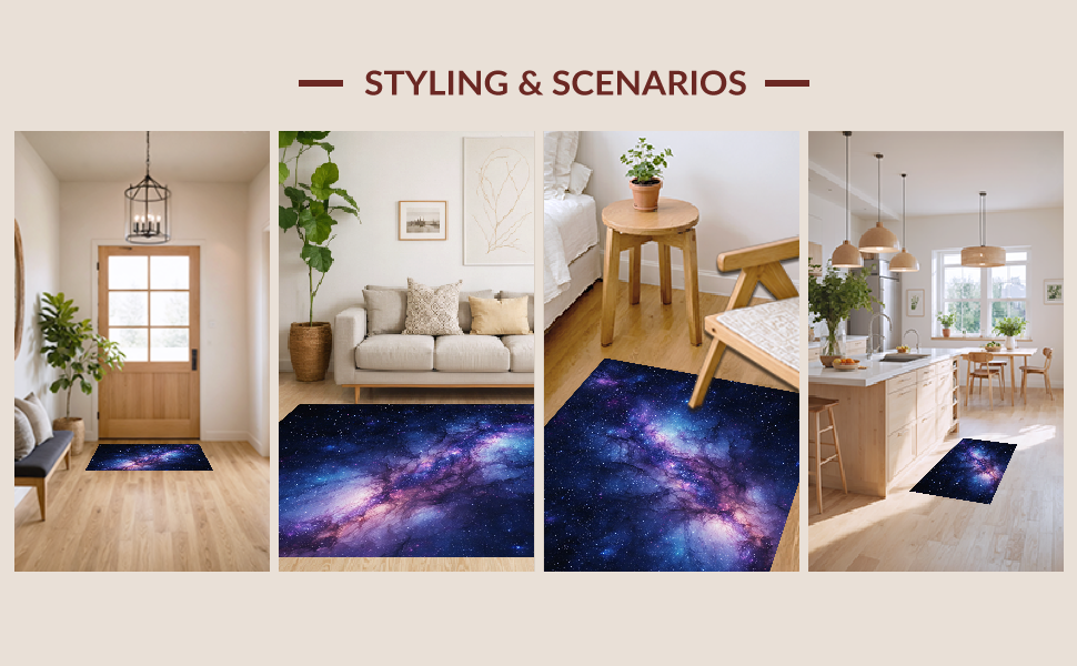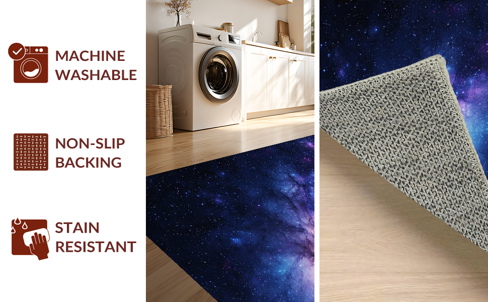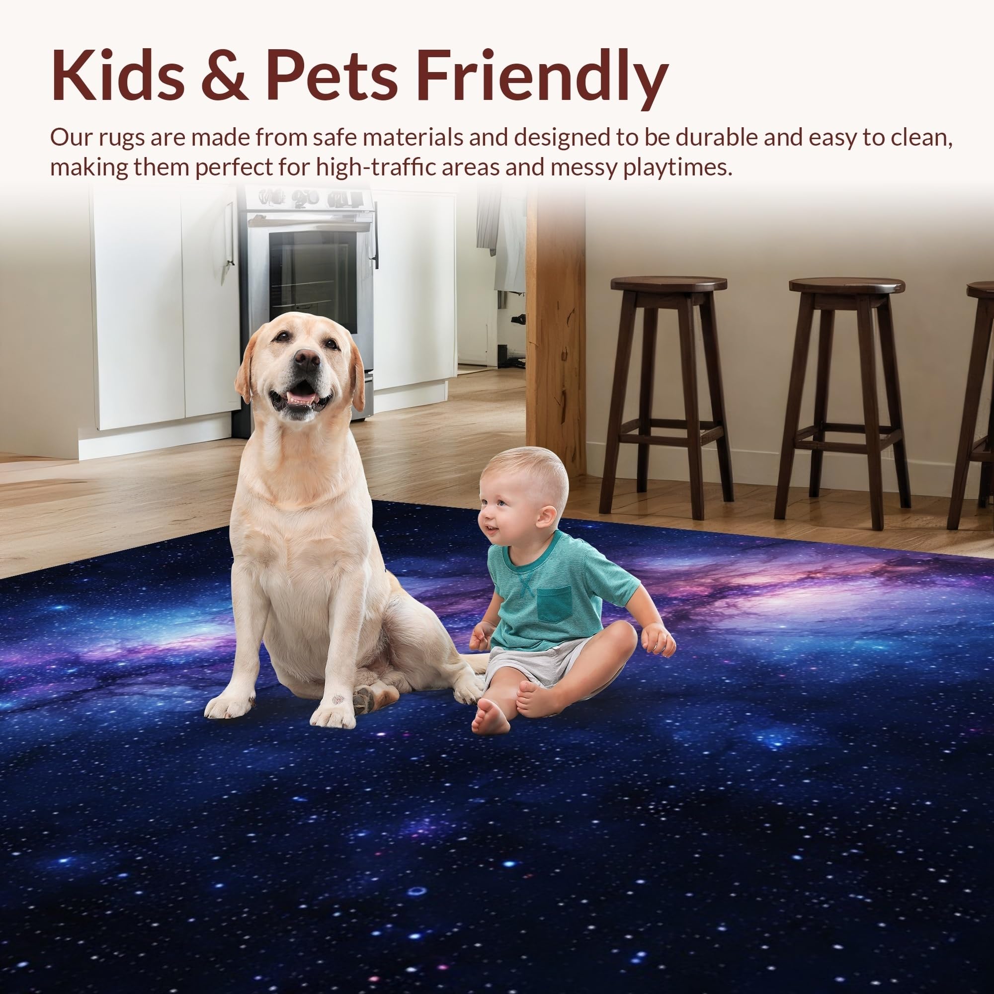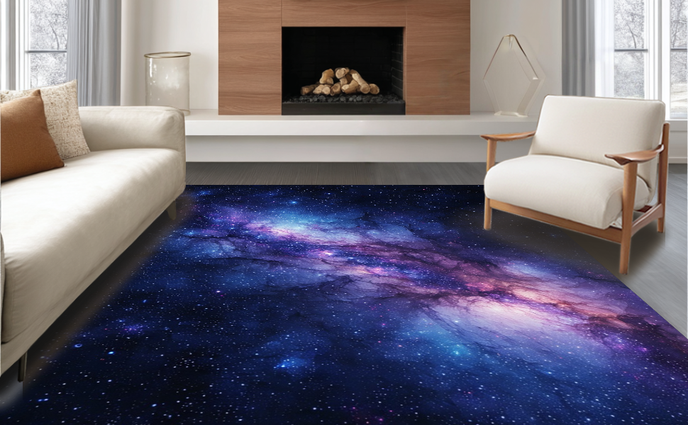Ultra Soft Area Rug, Non Slip, Stain Resistant, Washable Area Rugs for Living Room, Bedroom, Dreamy Nebula Swirl Design(Blue) Overview: