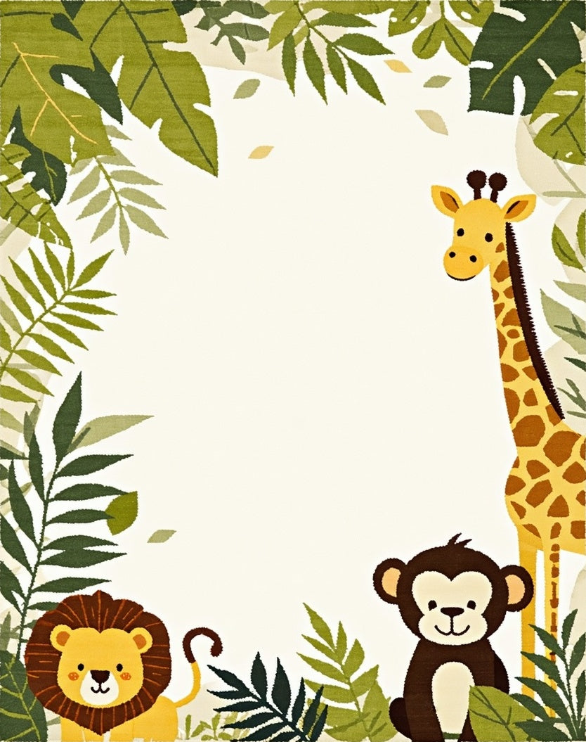 Ultra Soft Area Rug, Non Slip, Stain Resistant, Washable Area Rugs for Living Room, Bedroom, Dreamy Safari Beige Area Featuring Sweet Jungle Creatures(Green) Overview: