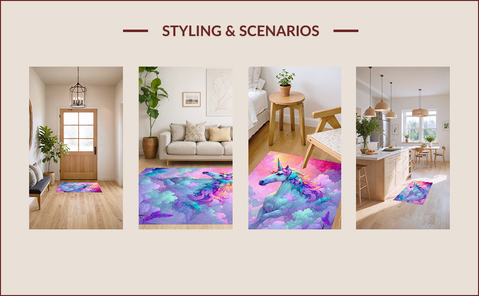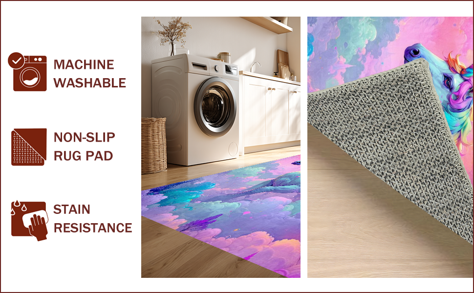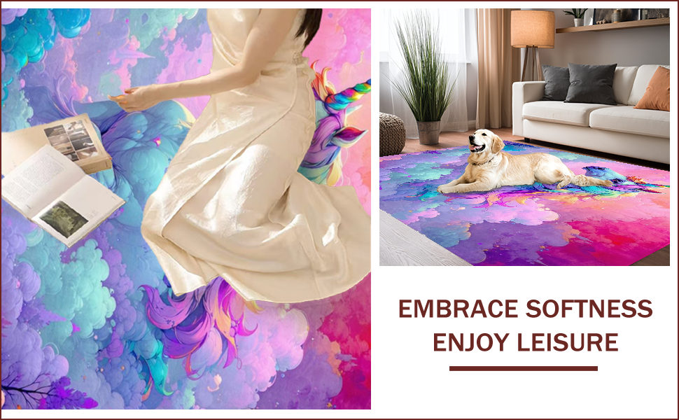 Ultra Soft Area Rug, Non Slip, Stain Resistant, Washable Area Rugs for Living Room, Bedroom, Dreamy Soft Plush Colorful Oasis(Purple) Overview: