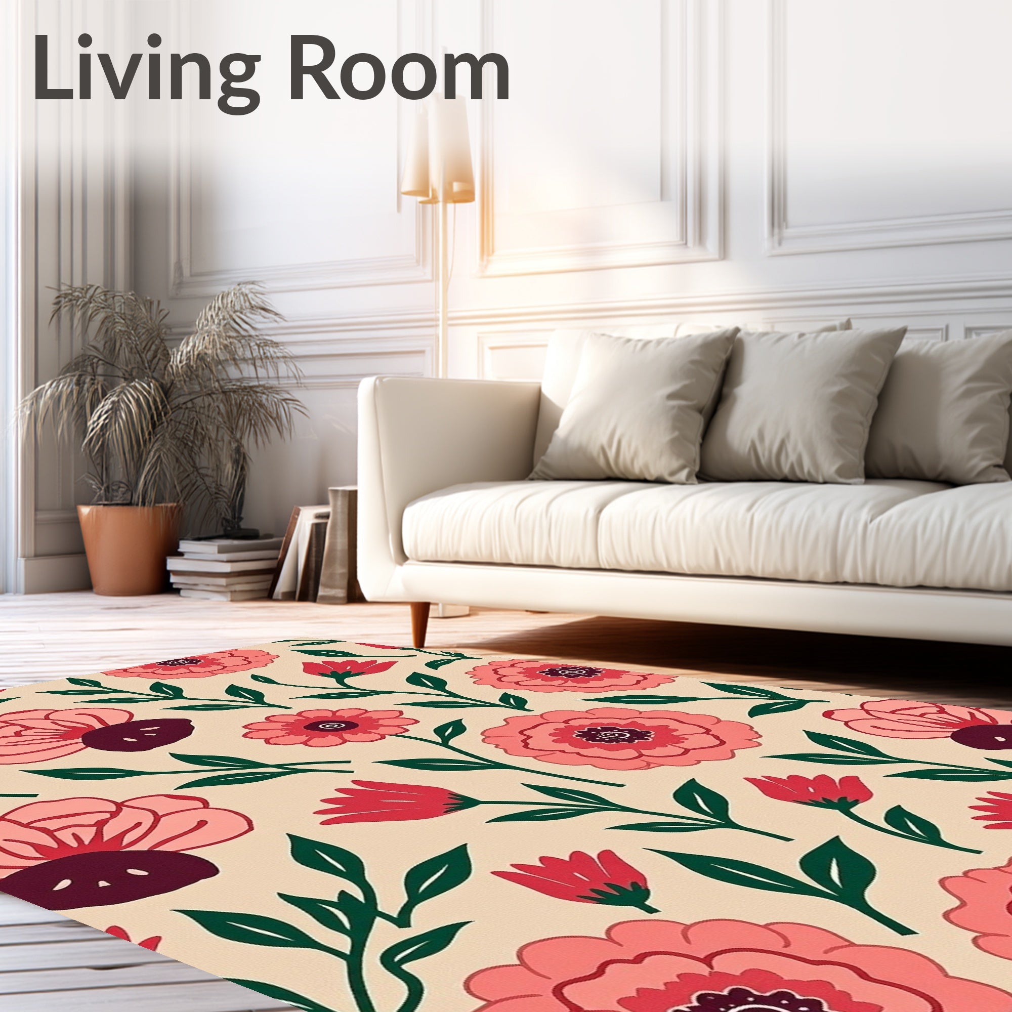 Ultra Soft Area Rug, Non Slip, Stain Resistant, Washable Area Rugs for Living Room, Bedroom, Dreamy Wildflower Meadow Anti Slip Surface with Contemporary Styling(Beige) Overview: