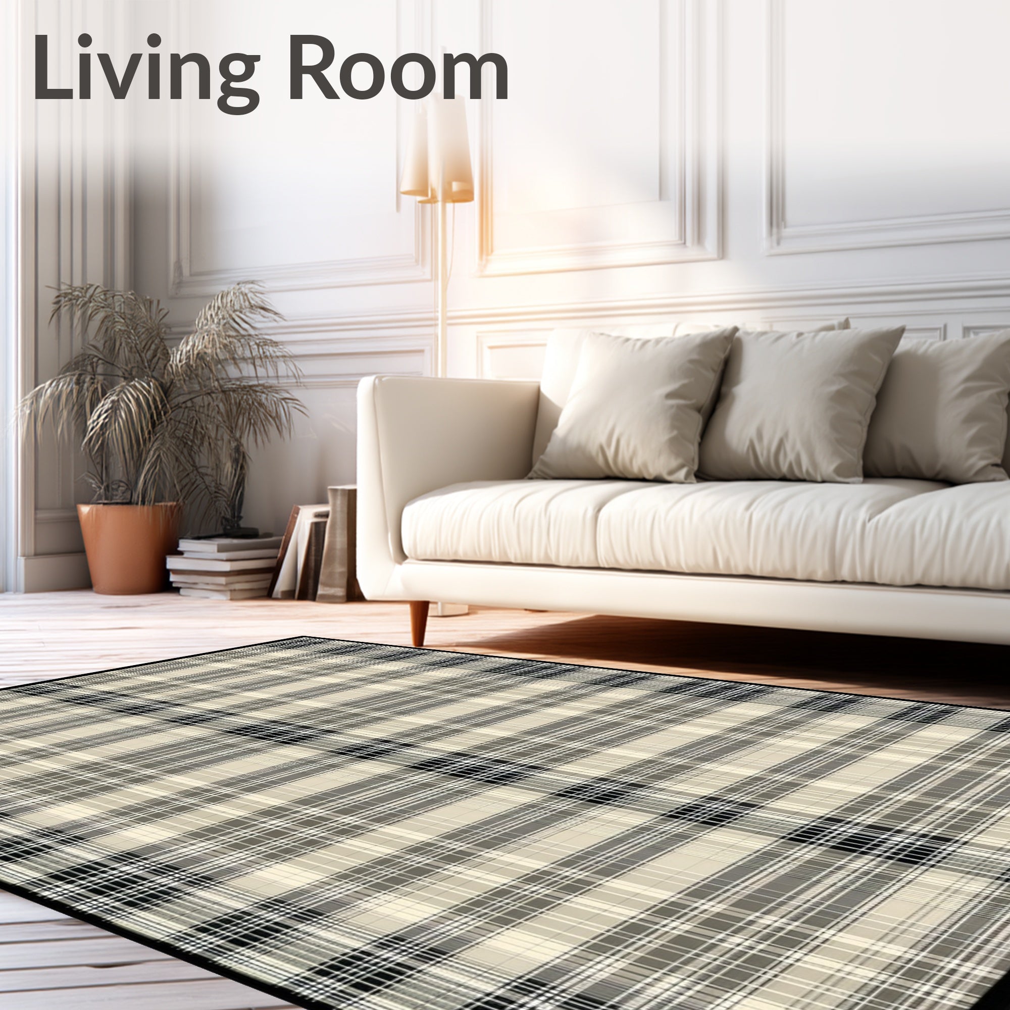 Ultra Soft Area Rug, Non Slip, Stain Resistant, Washable Area Rugs for Living Room, Bedroom, Dual Tone Plaid Area Minimalist Checkered Floor Covering(Beige) Overview: