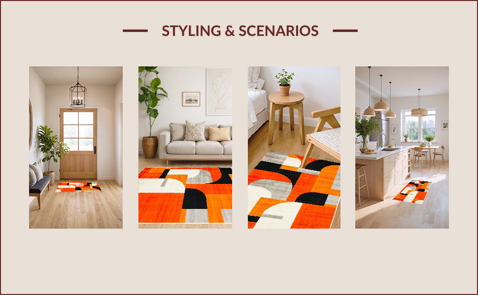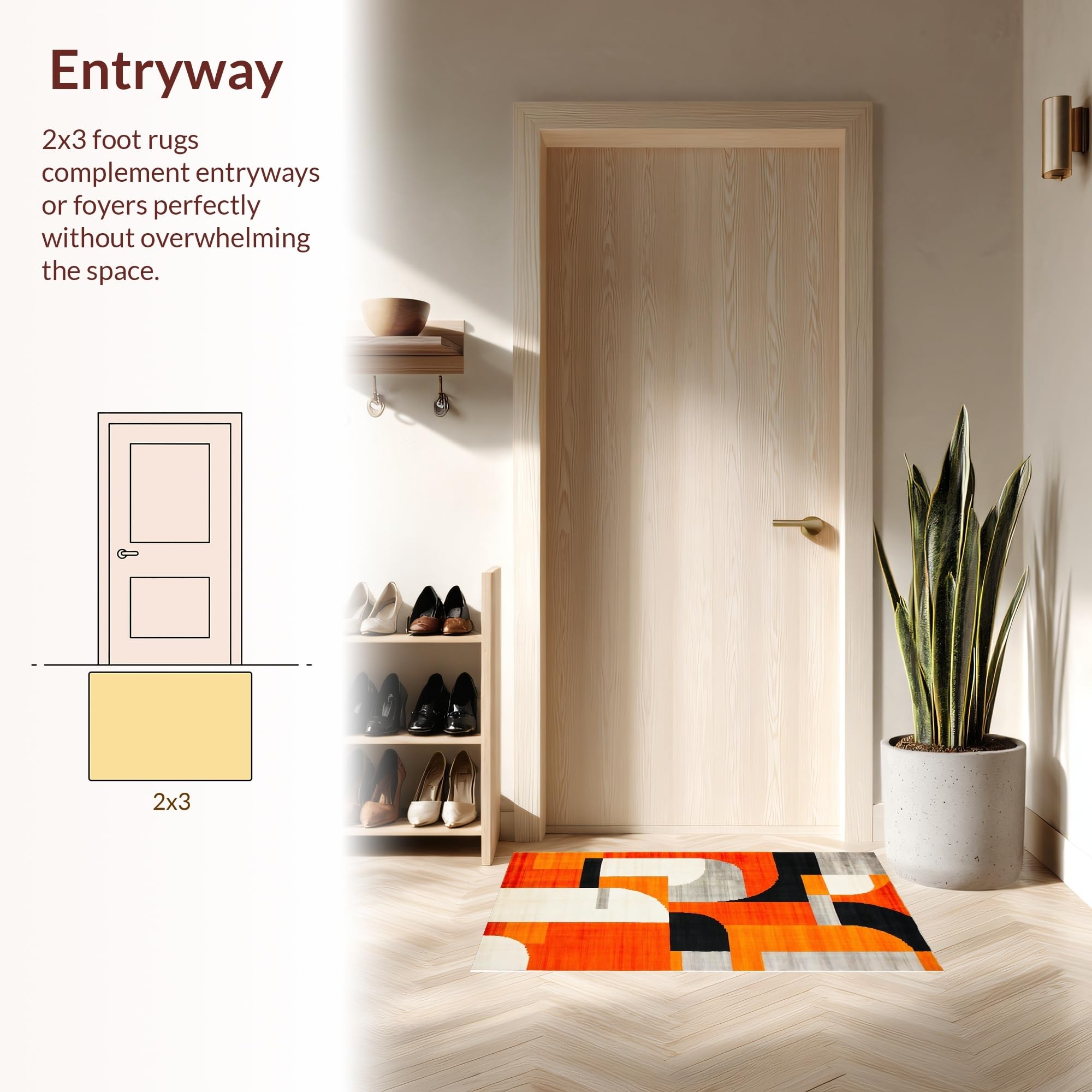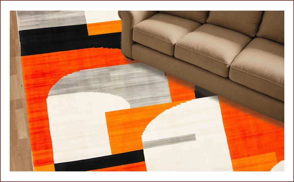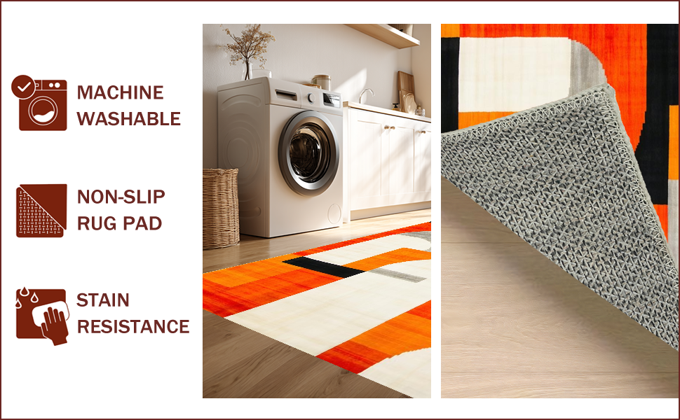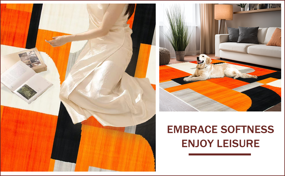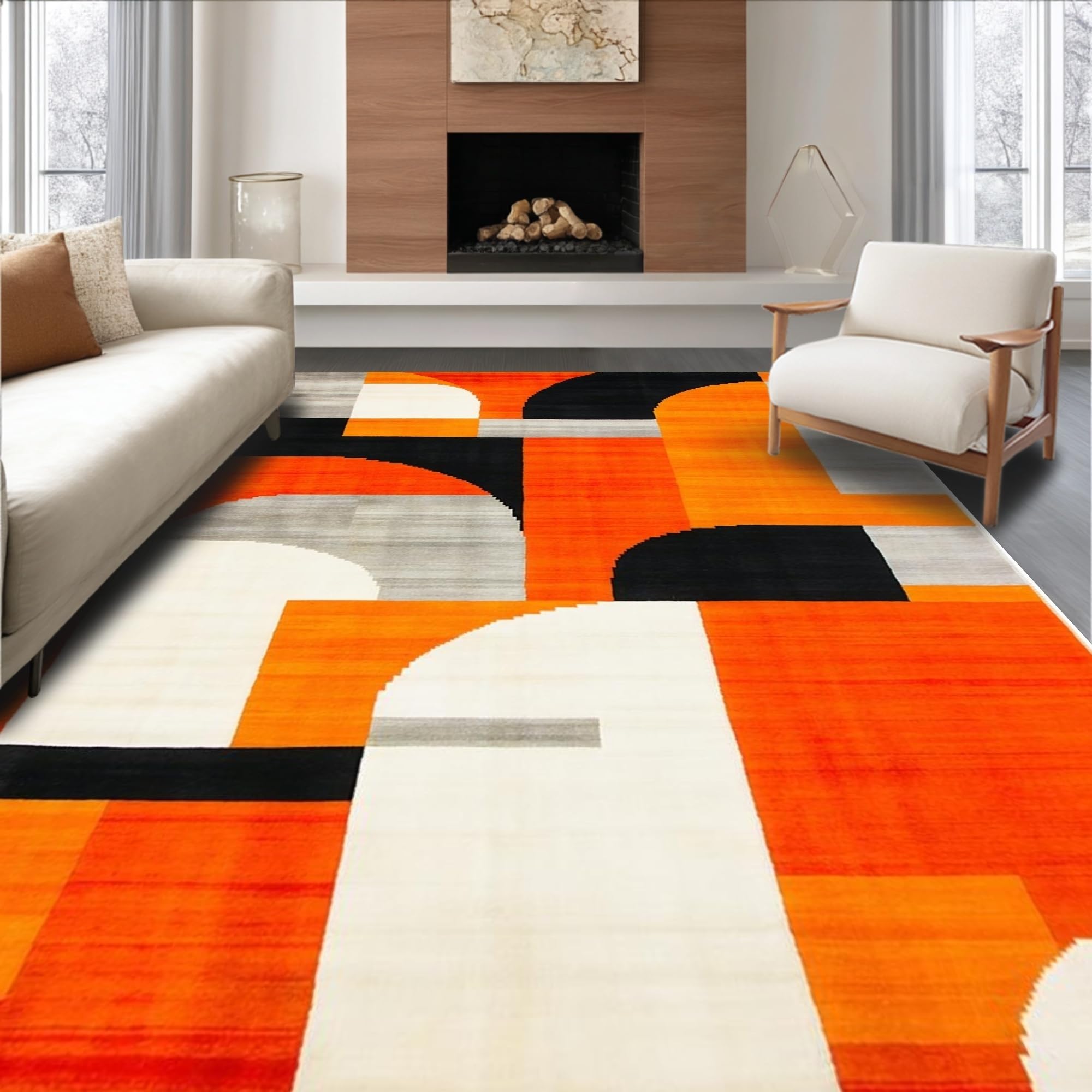 Ultra Soft Area Rug, Non Slip, Stain Resistant, Washable Area Rugs for Living Room, Bedroom, Dynamic 70s Inspired Graphic Design(Orange) Overview: