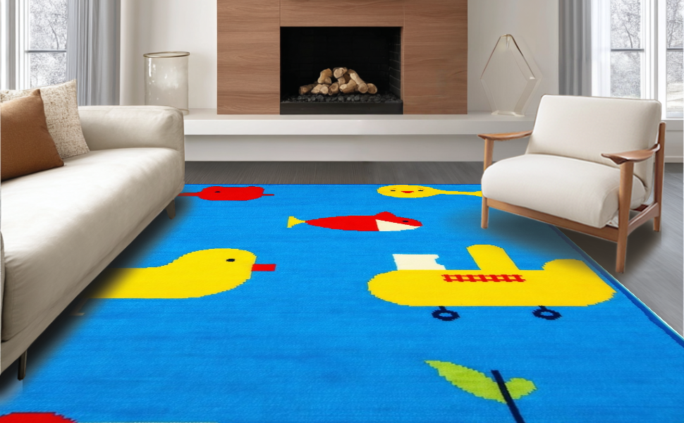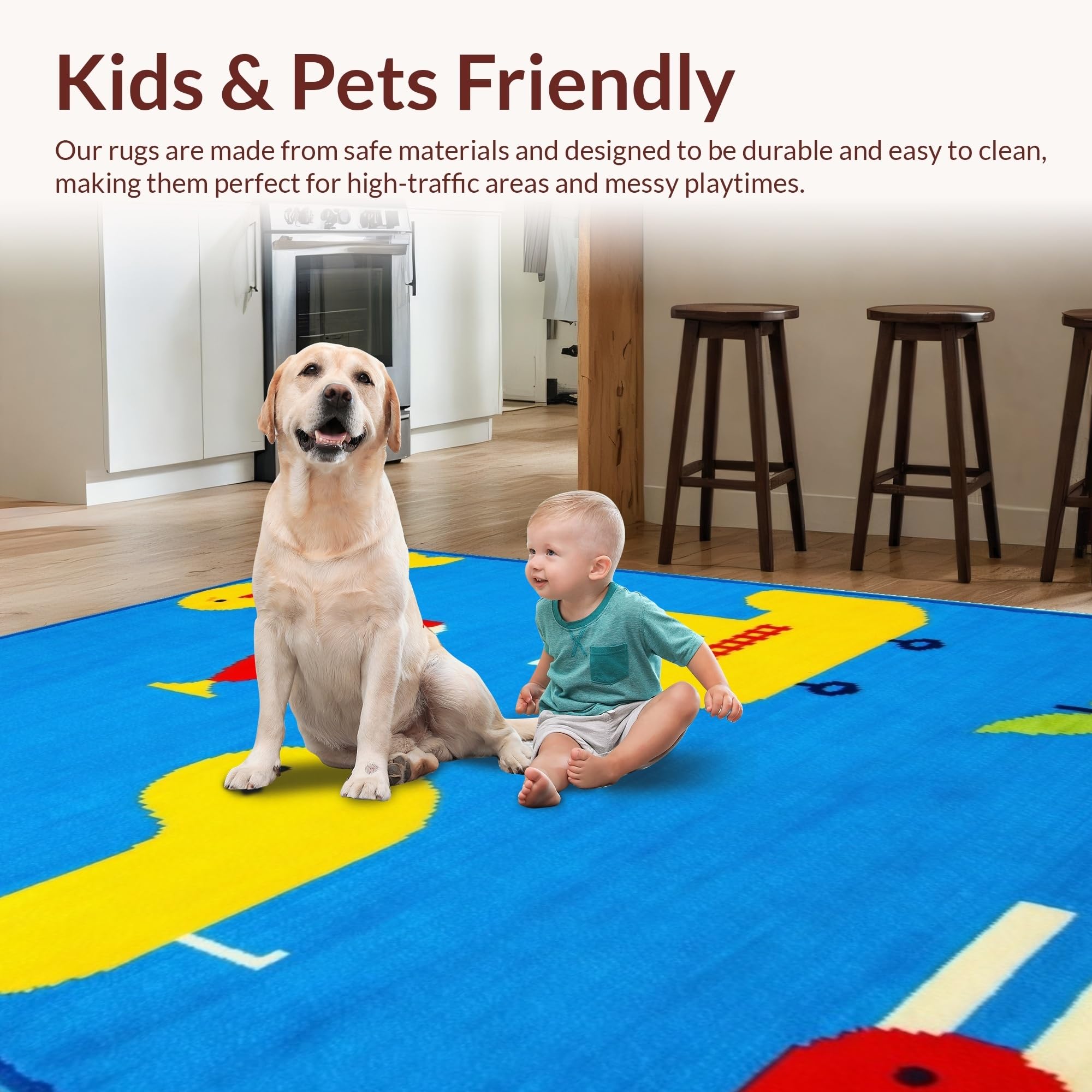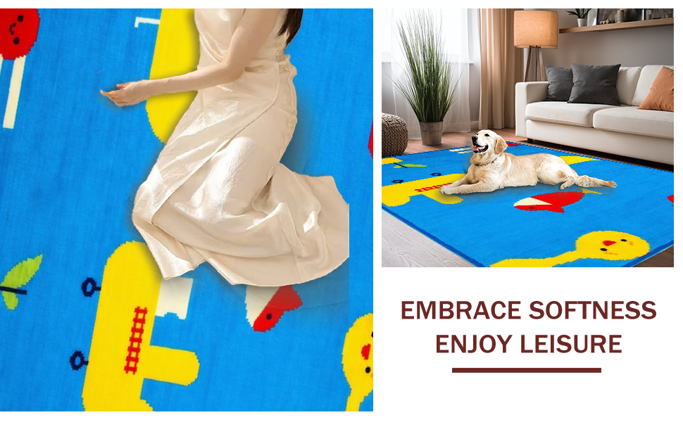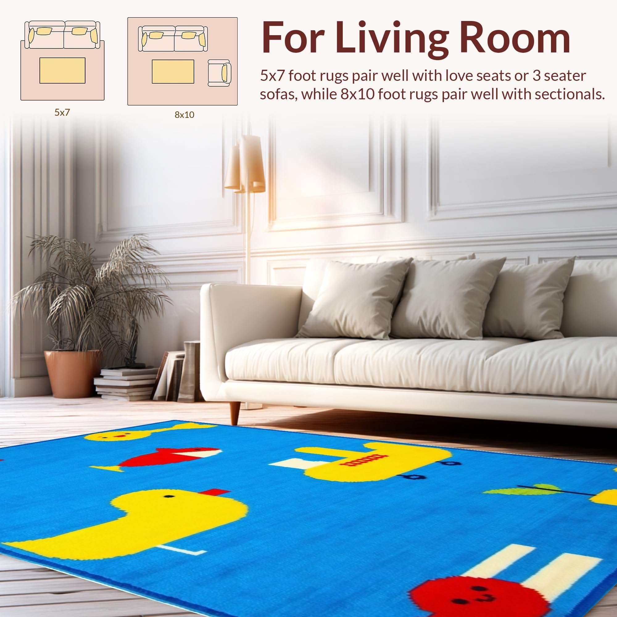 Ultra Soft Area Rug, Non Slip, Stain Resistant, Washable Area Rugs for Living Room, Bedroom, Dynamic ABC Patterned Visuals(Blue) Overview:
