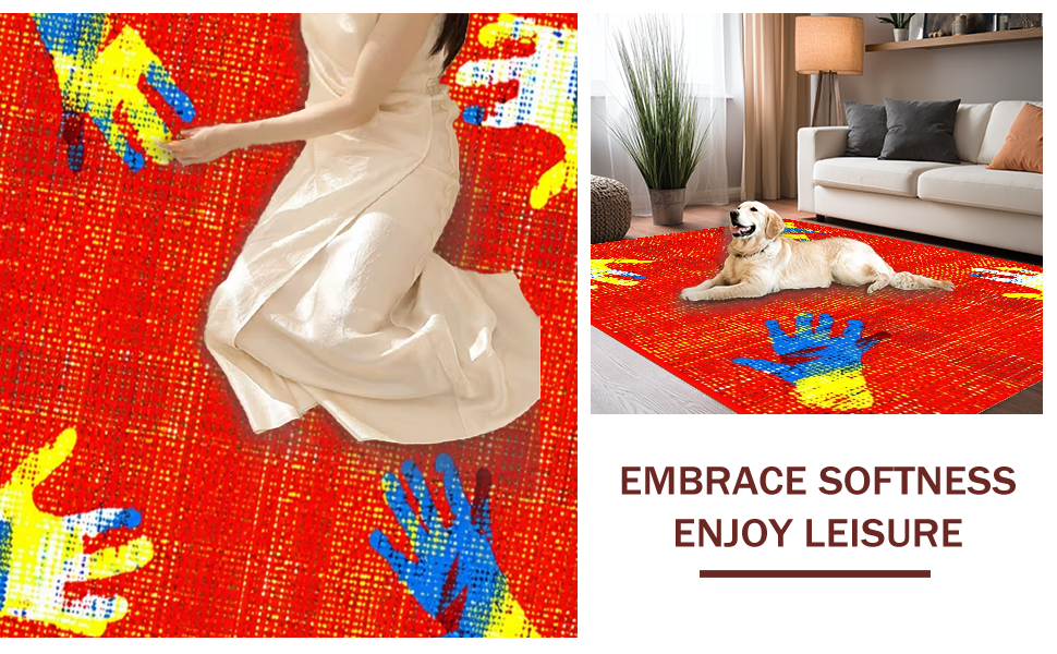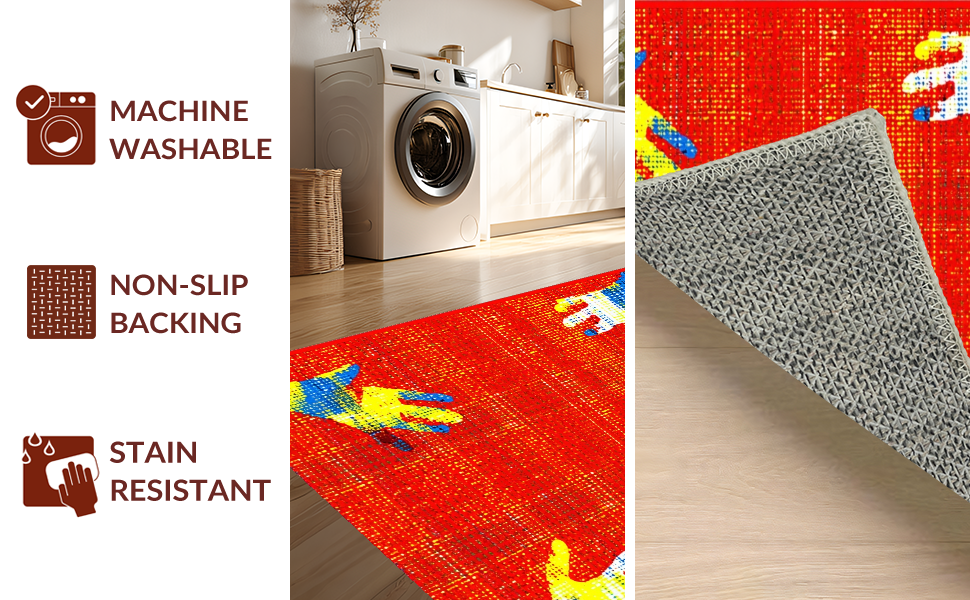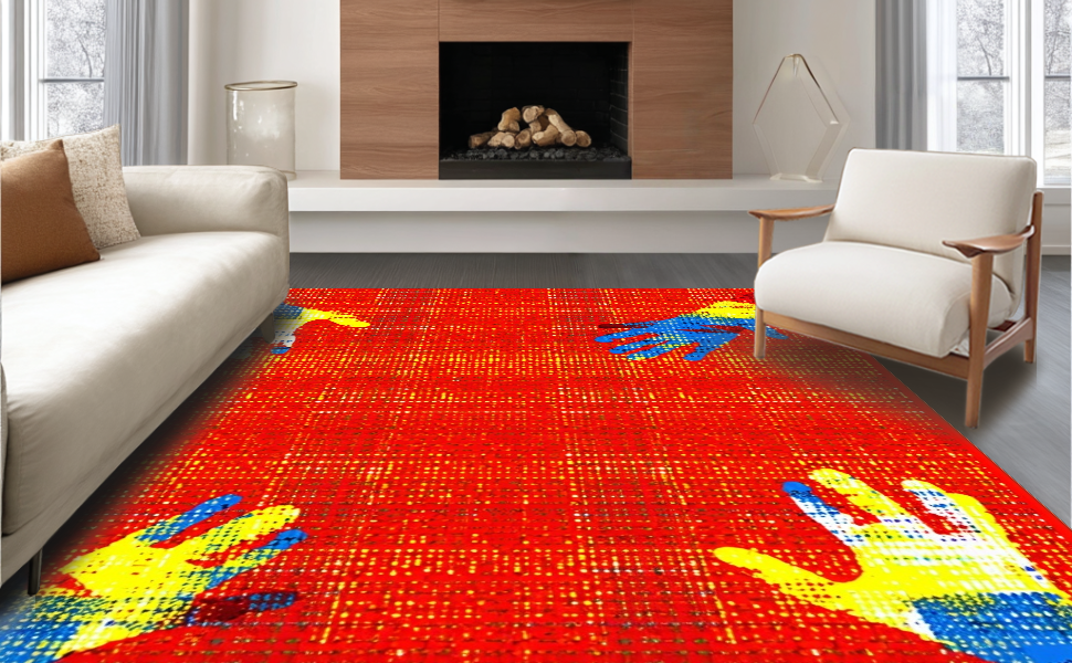 Ultra Soft Area Rug, Non Slip, Stain Resistant, Washable Area Rugs for Living Room, Bedroom, Dynamic Abstract Color Splash(Red) Overview: