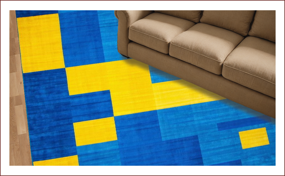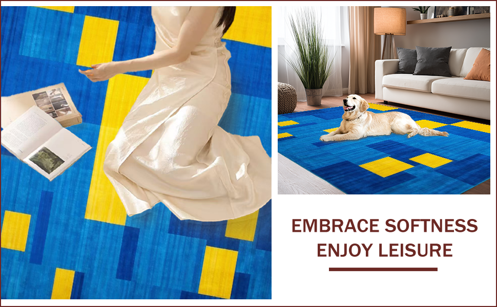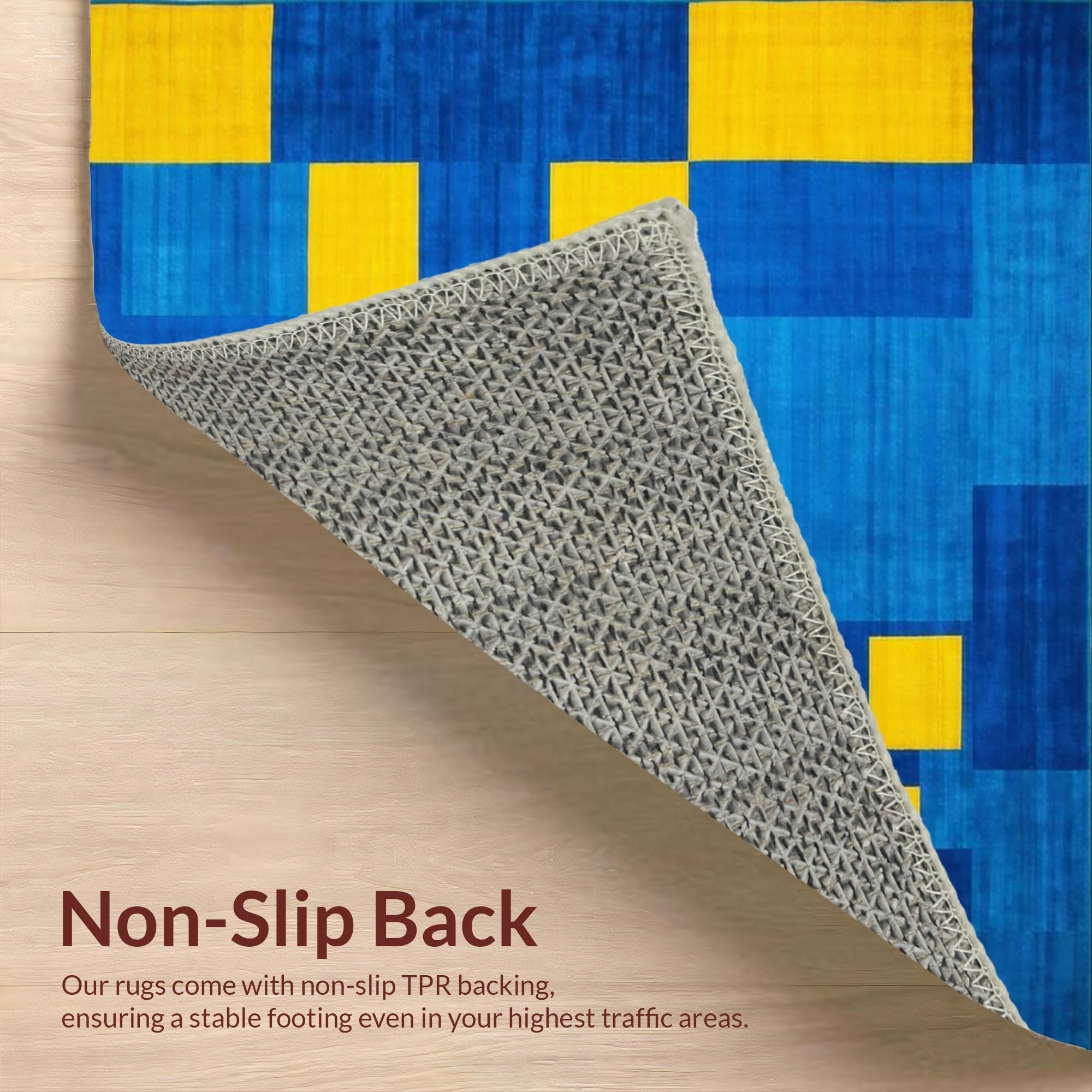 Ultra Soft Area Rug, Non Slip, Stain Resistant, Washable Area Rugs for Living Room, Bedroom, Dynamic Abstract Geometric Fusion(Blue) Overview: