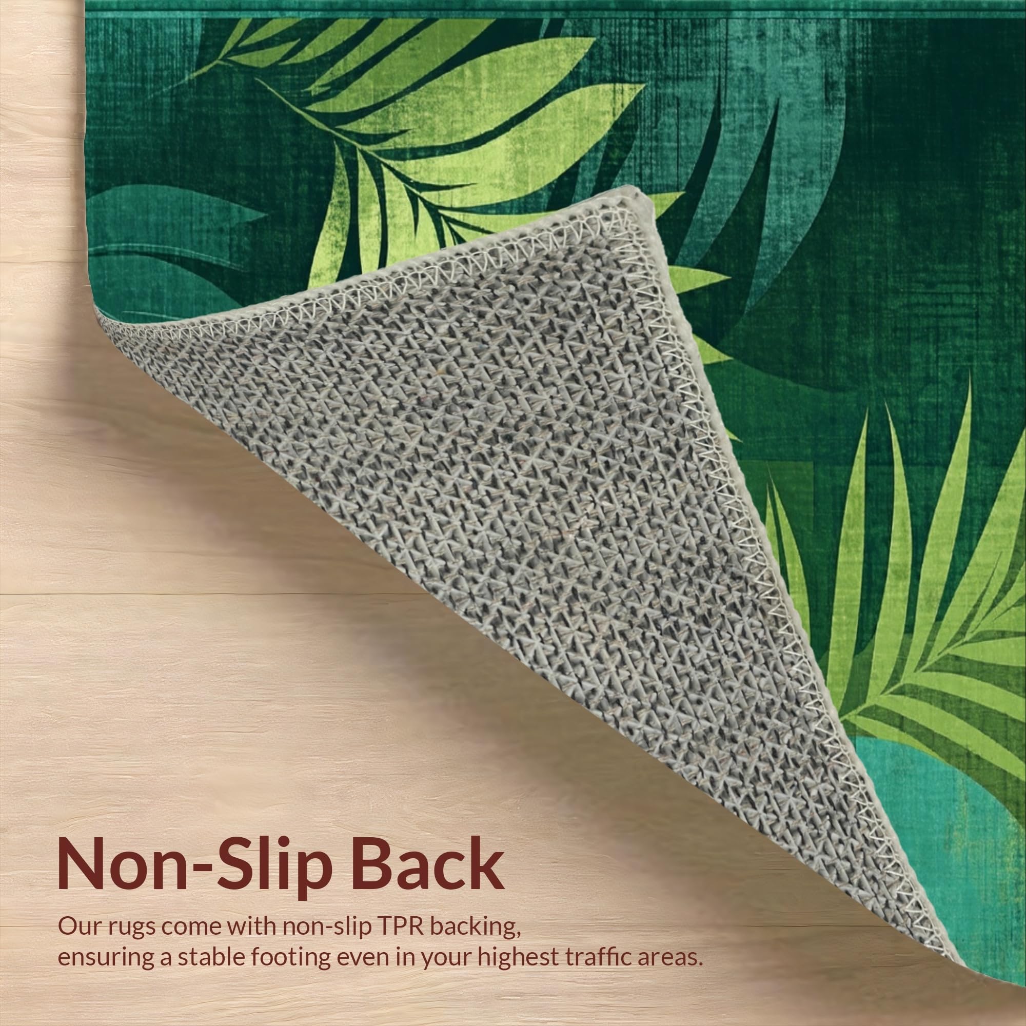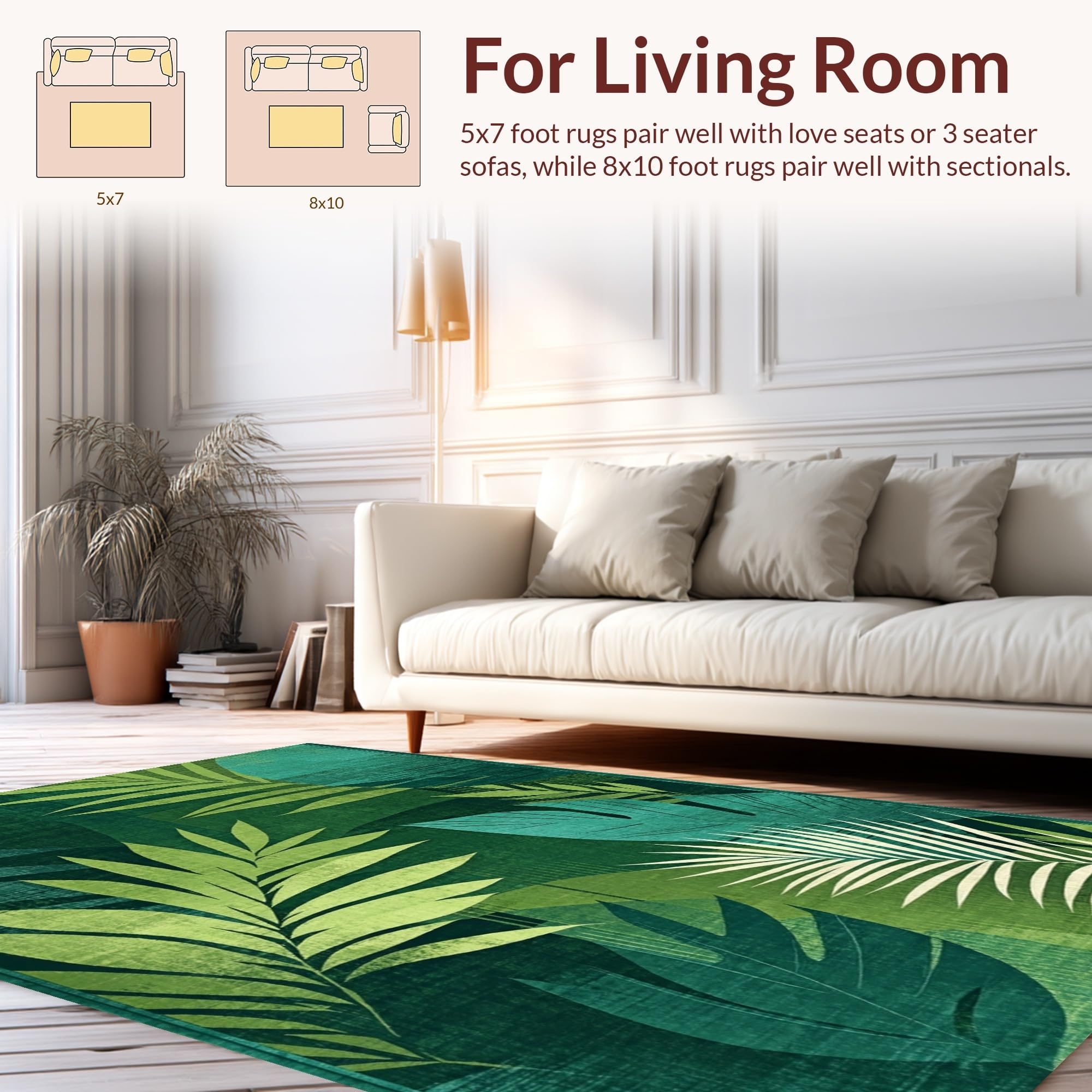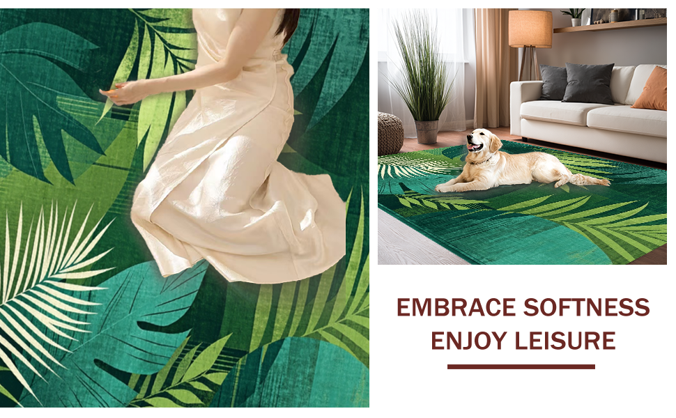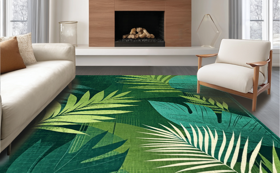 Ultra Soft Area Rug, Non Slip, Stain Resistant, Washable Area Rugs for Living Room, Bedroom, Dynamic Abstract Tropical Print(Green) Overview: