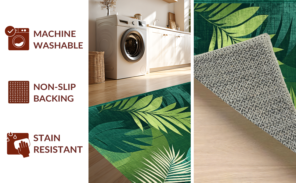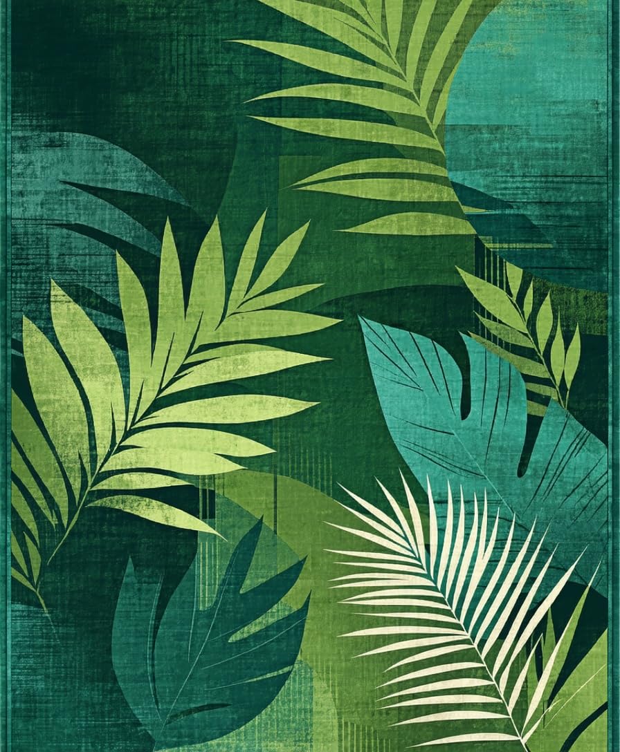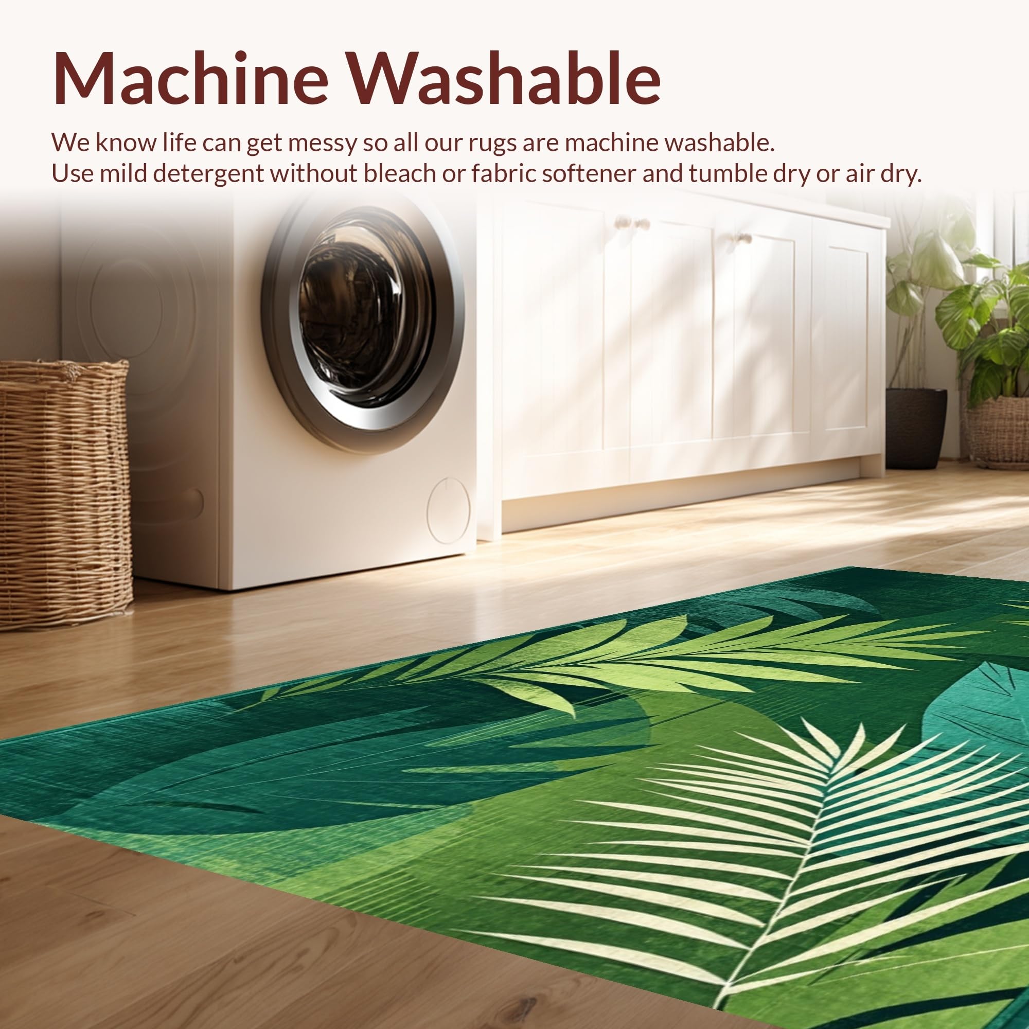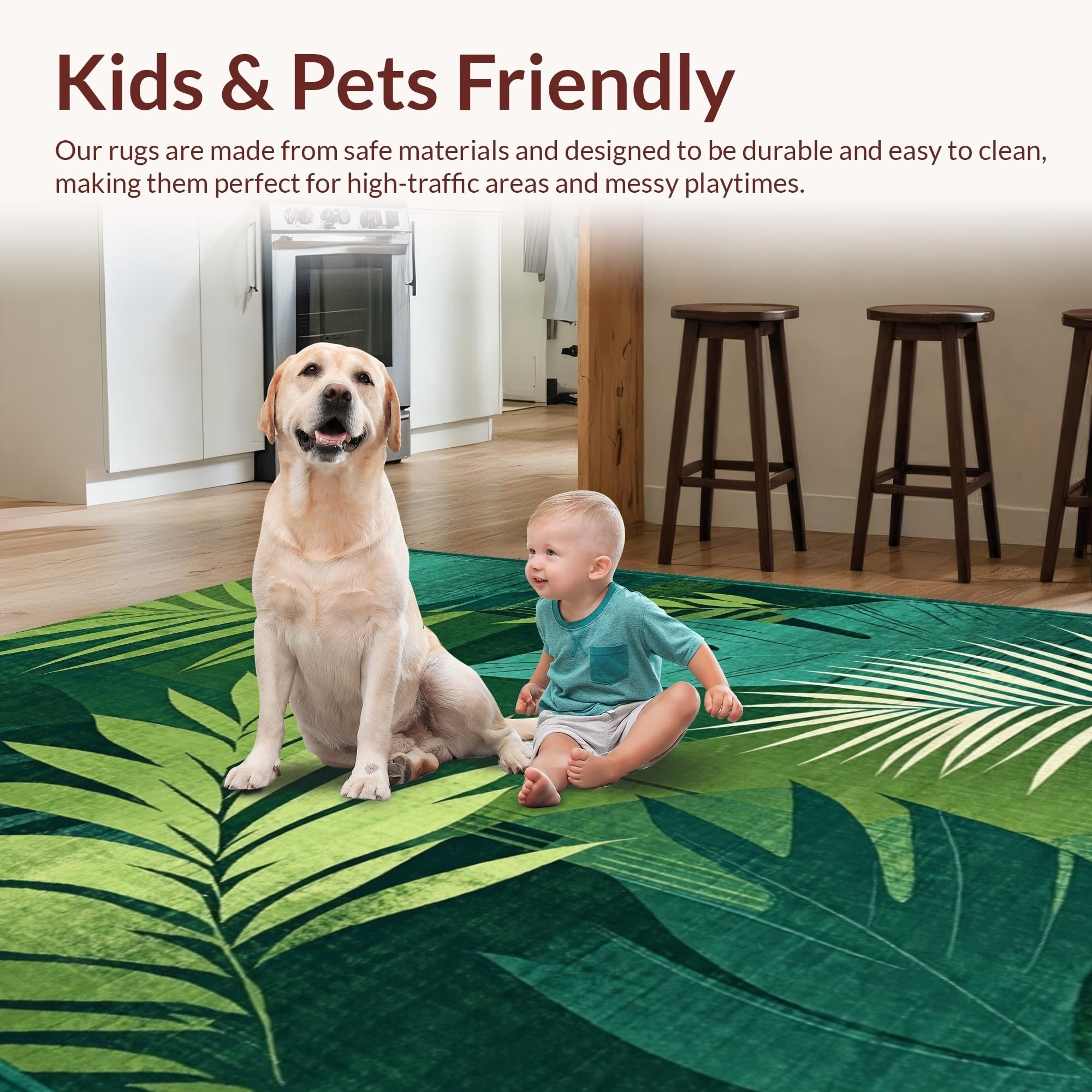 Ultra Soft Area Rug, Non Slip, Stain Resistant, Washable Area Rugs for Living Room, Bedroom, Dynamic Abstract Tropical Print(Green) Overview: