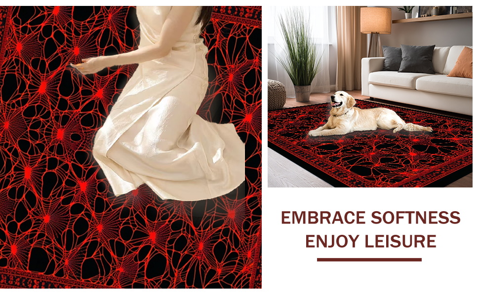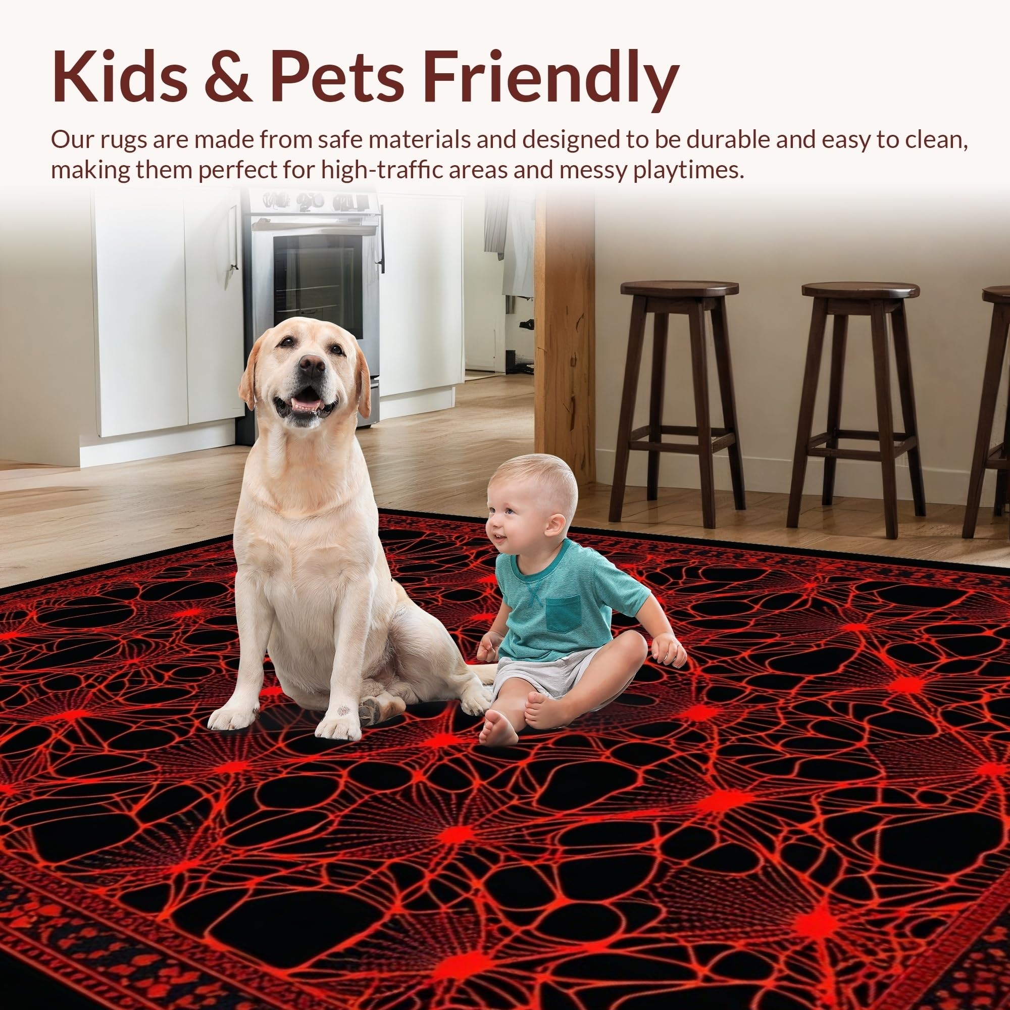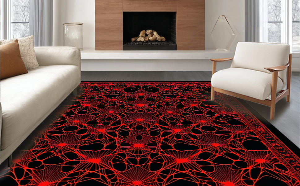 Ultra Soft Area Rug, Non Slip, Stain Resistant, Washable Area Rugs for Living Room, Bedroom, Dynamic Arachnid-Themed Decorative Piece(Red) Overview: