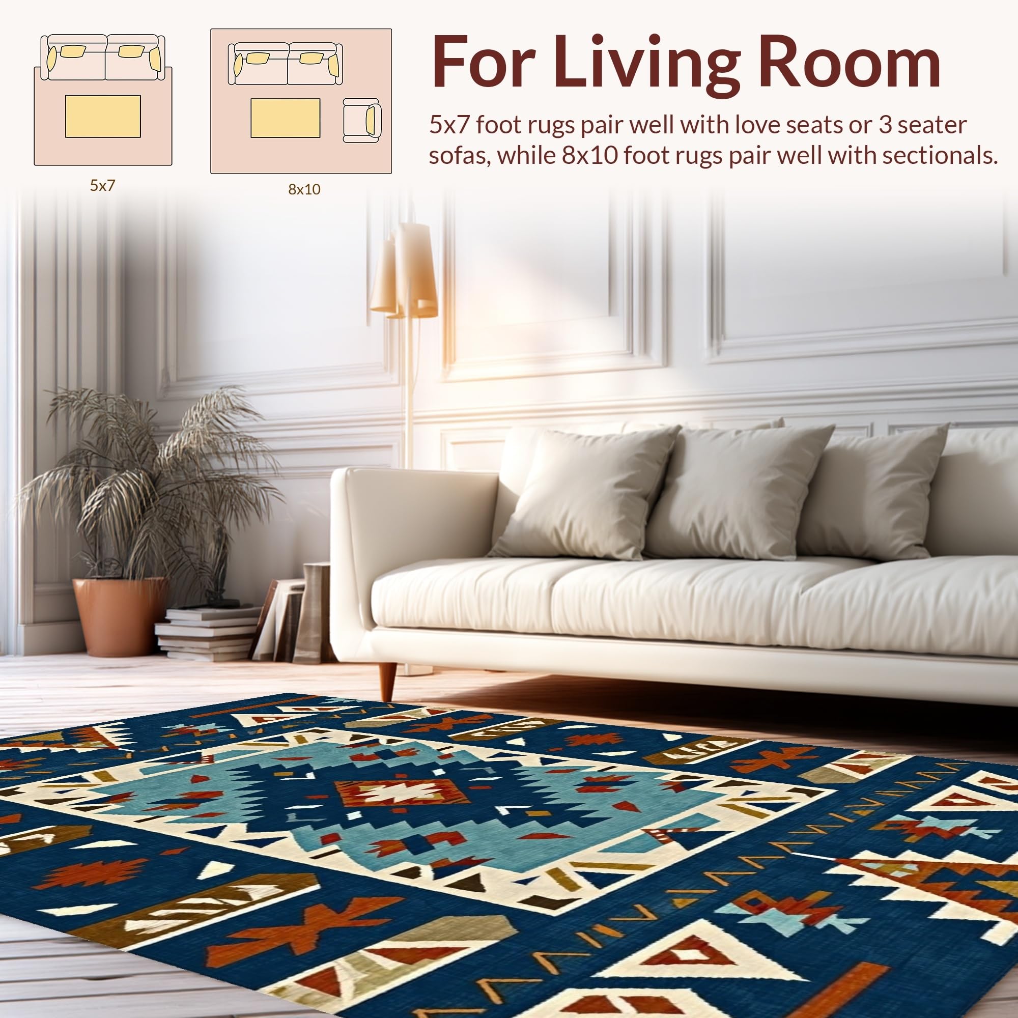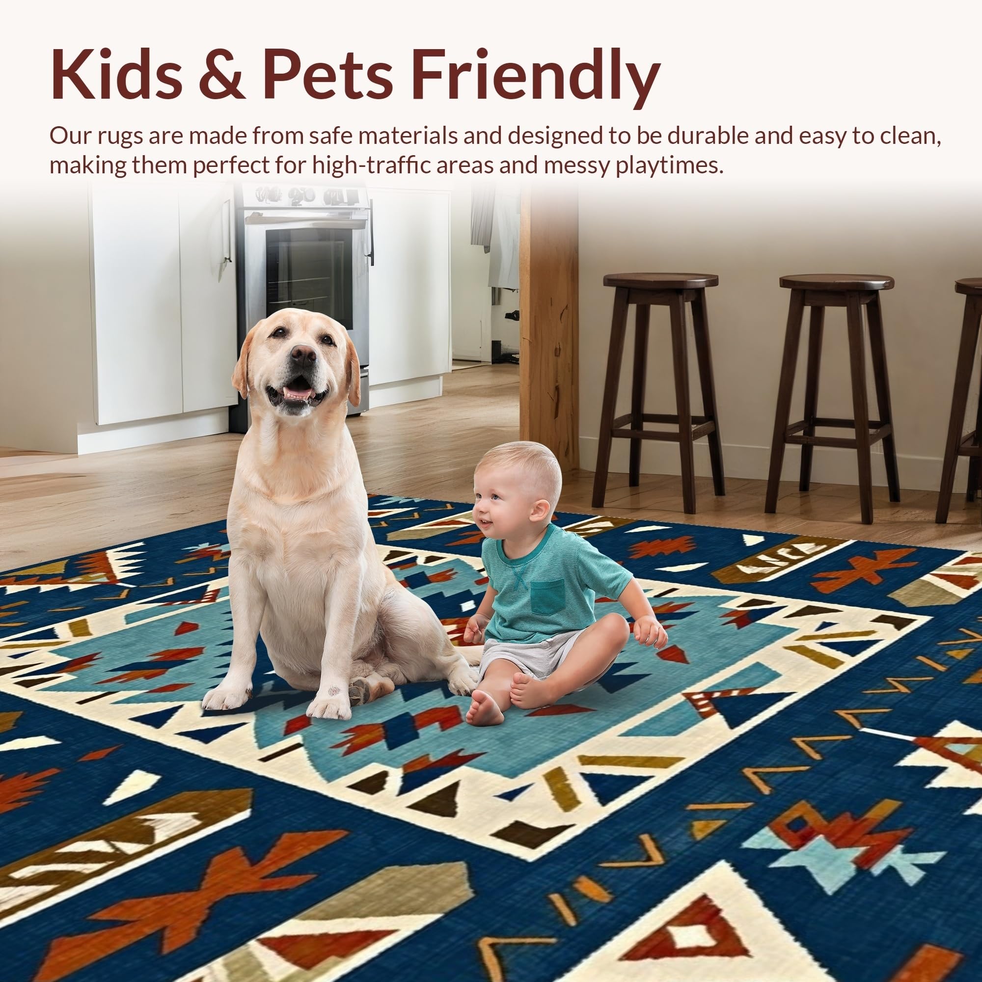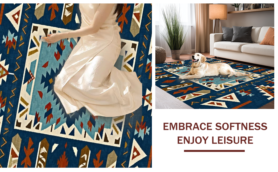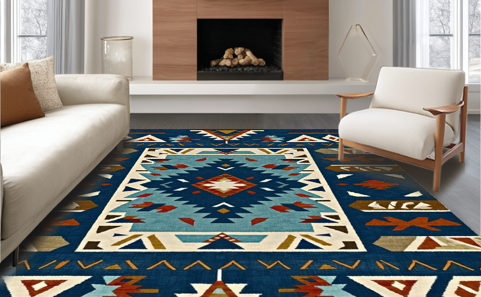 Ultra Soft Area Rug, Non Slip, Stain Resistant, Washable Area Rugs for Living Room, Bedroom, Dynamic Blue and Beige Pattern(Blue) Overview: