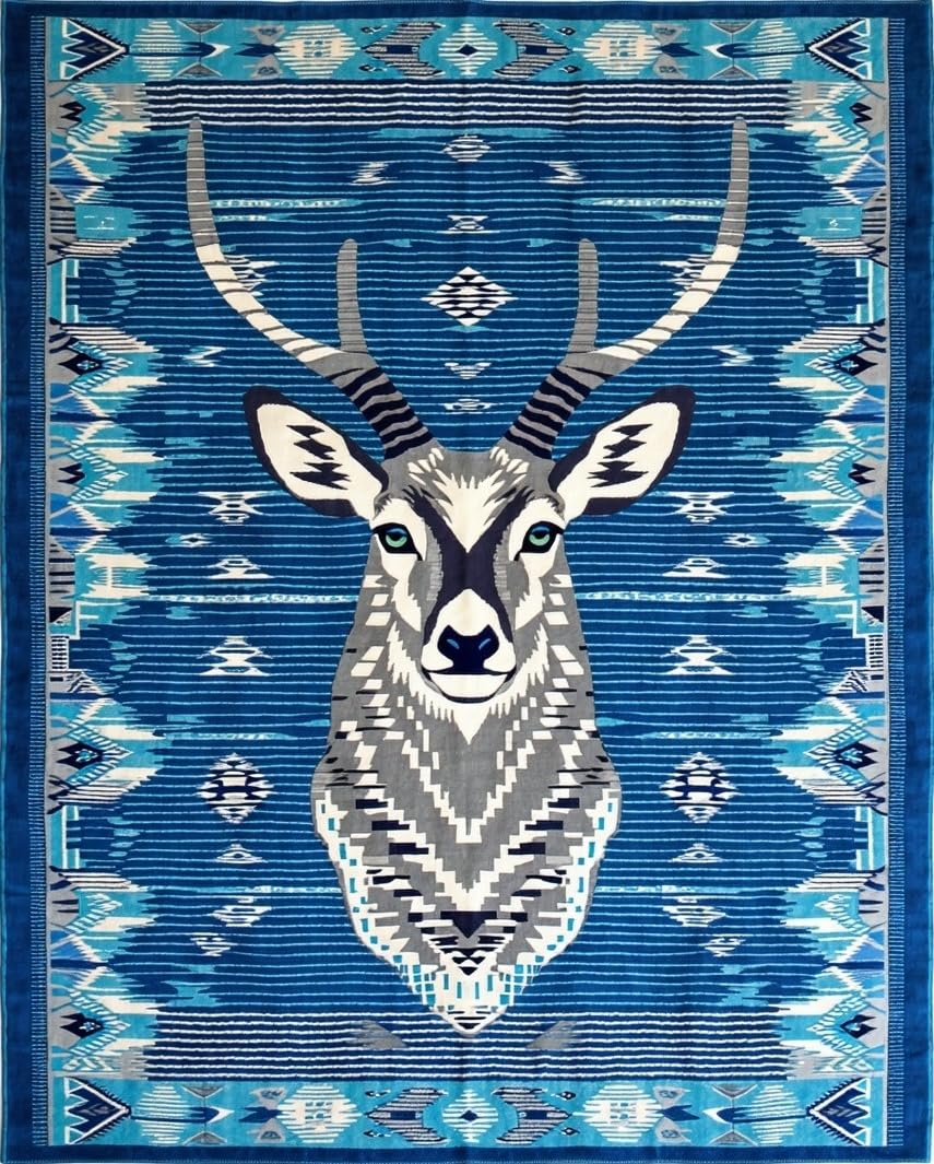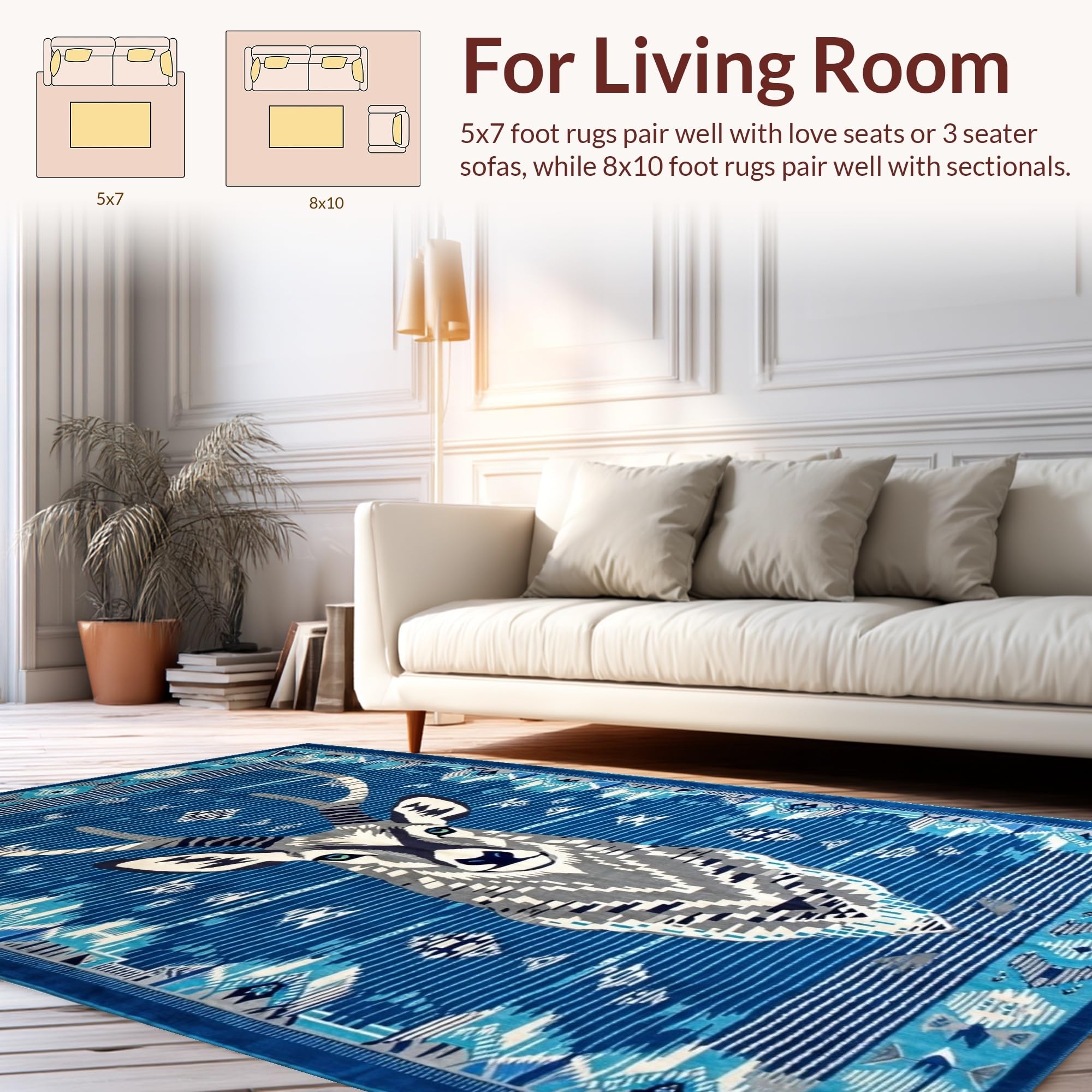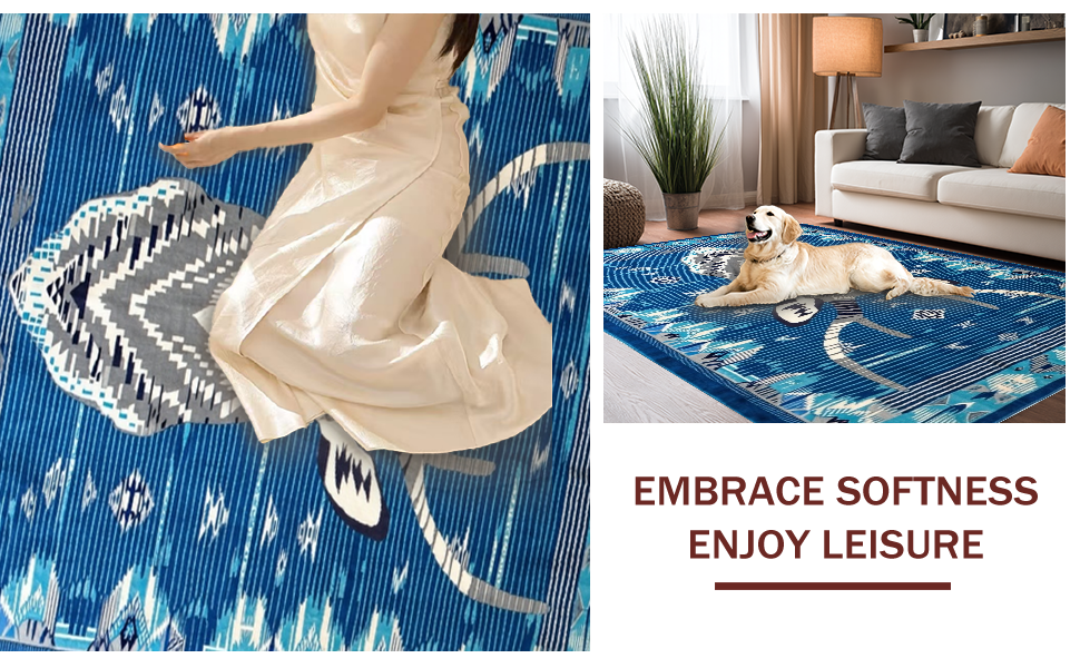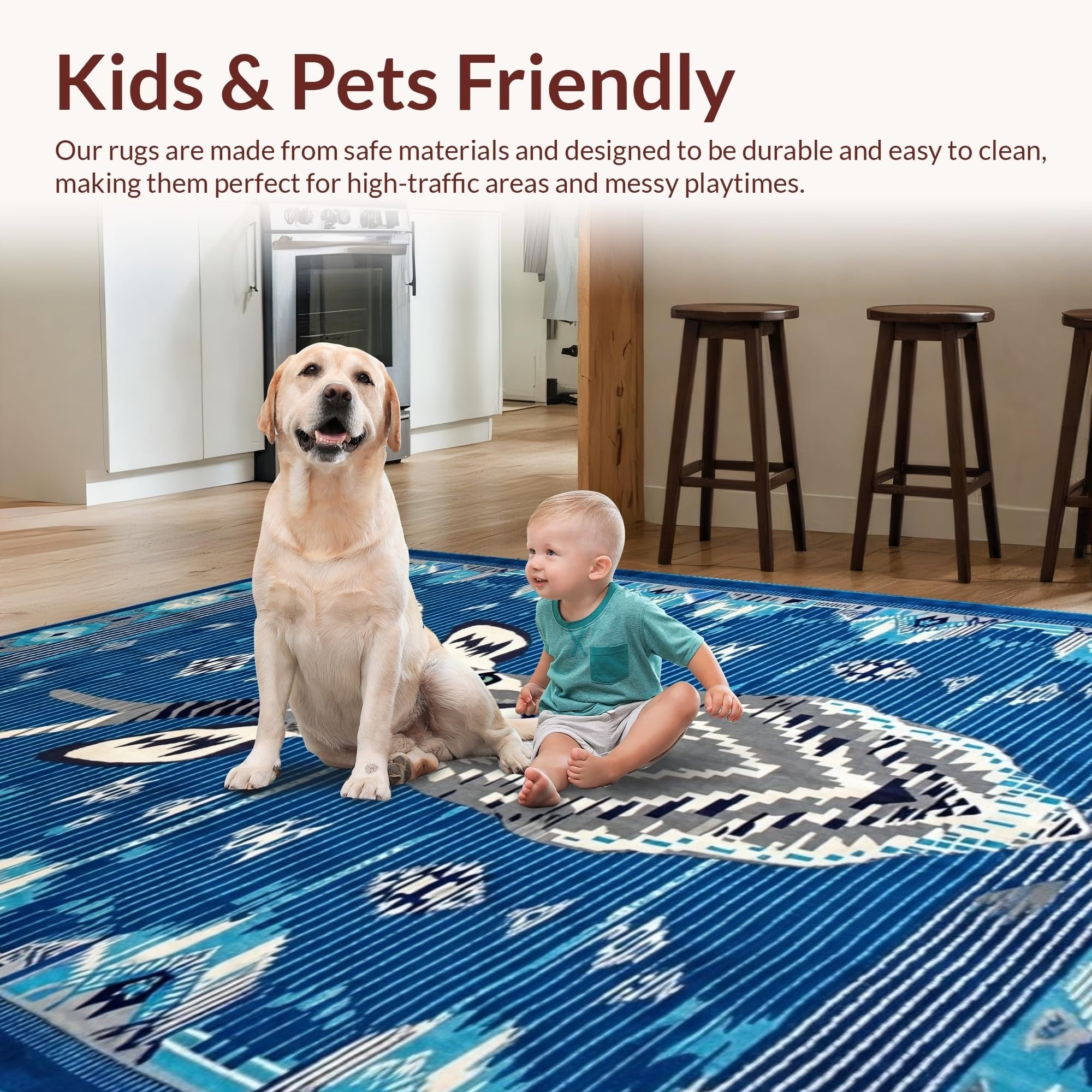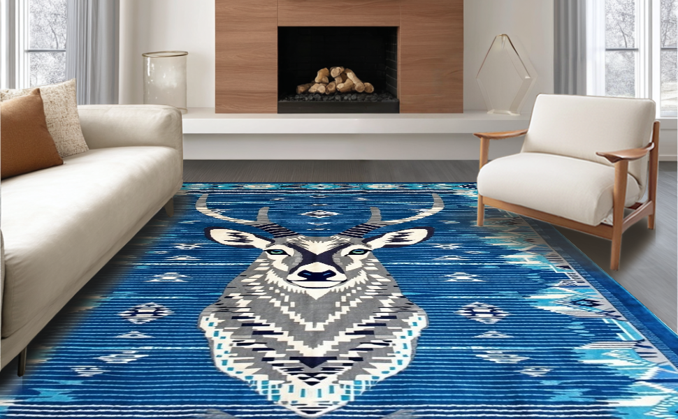Ultra Soft Area Rug, Non Slip, Stain Resistant, Washable Area Rugs for Living Room, Bedroom, Dynamic Blue and Gray Ethnic Style(Blue) Overview: