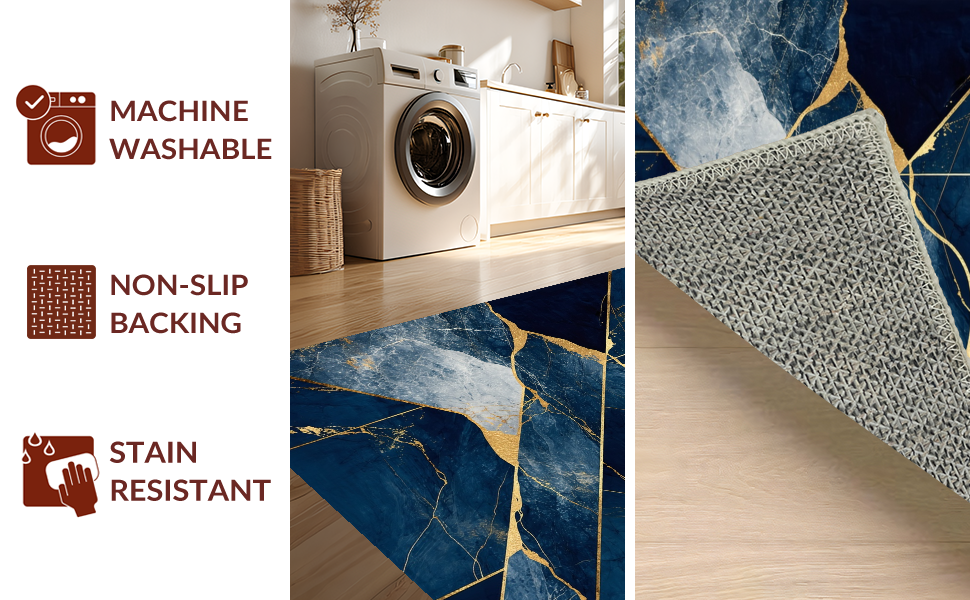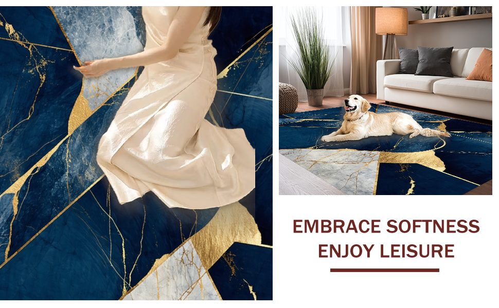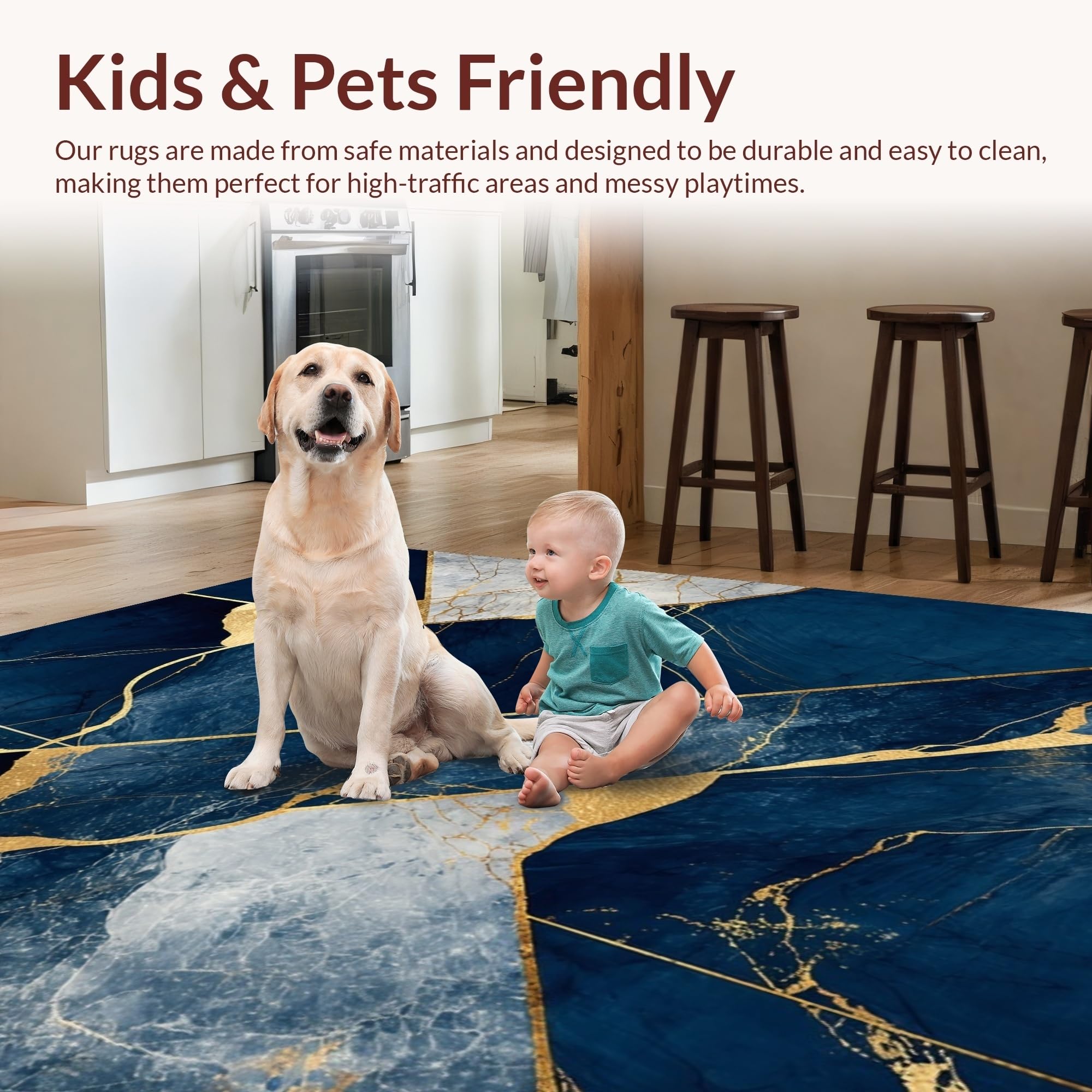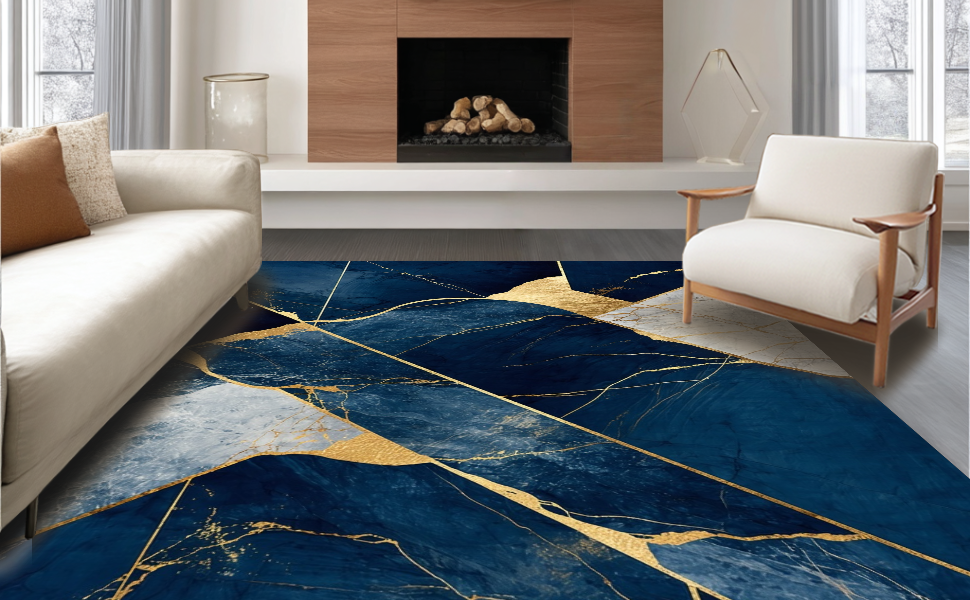 Ultra Soft Area Rug, Non Slip, Stain Resistant, Washable Area Rugs for Living Room, Bedroom, Dynamic Color Contrast Marble Design(Blue) Overview: