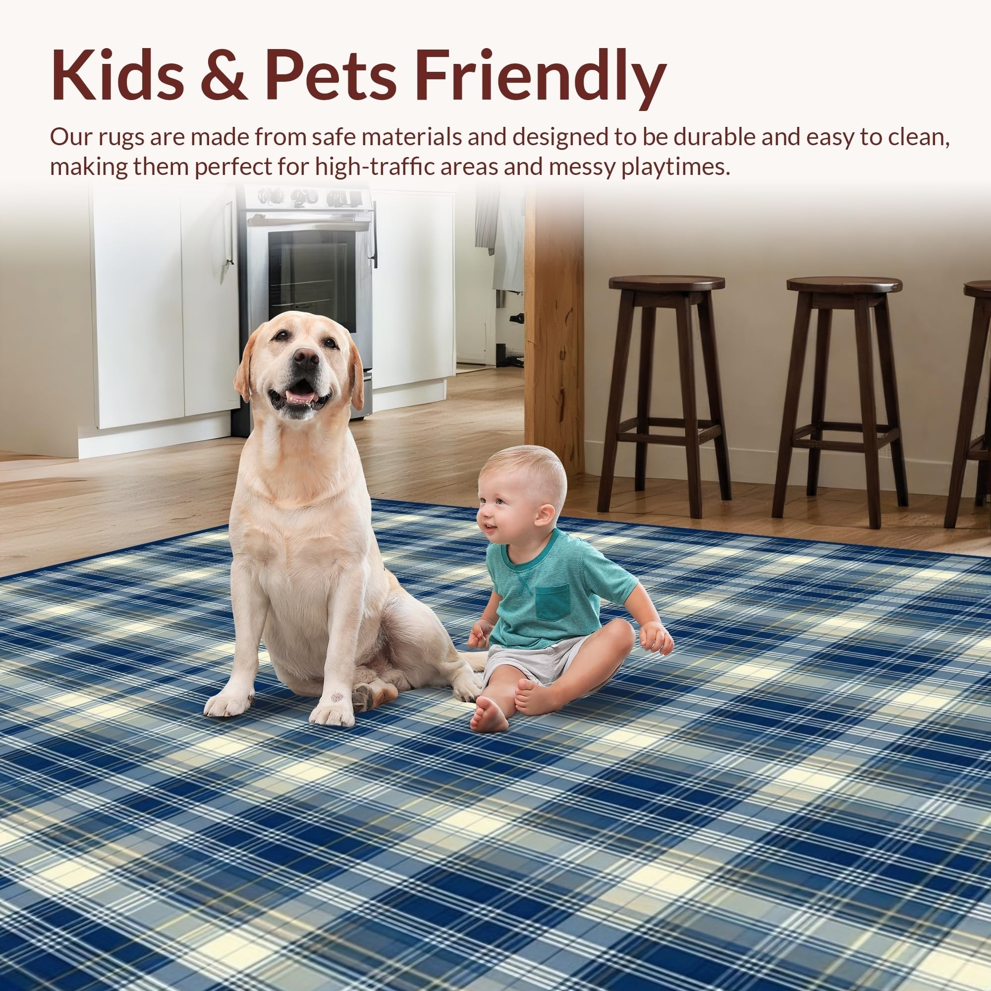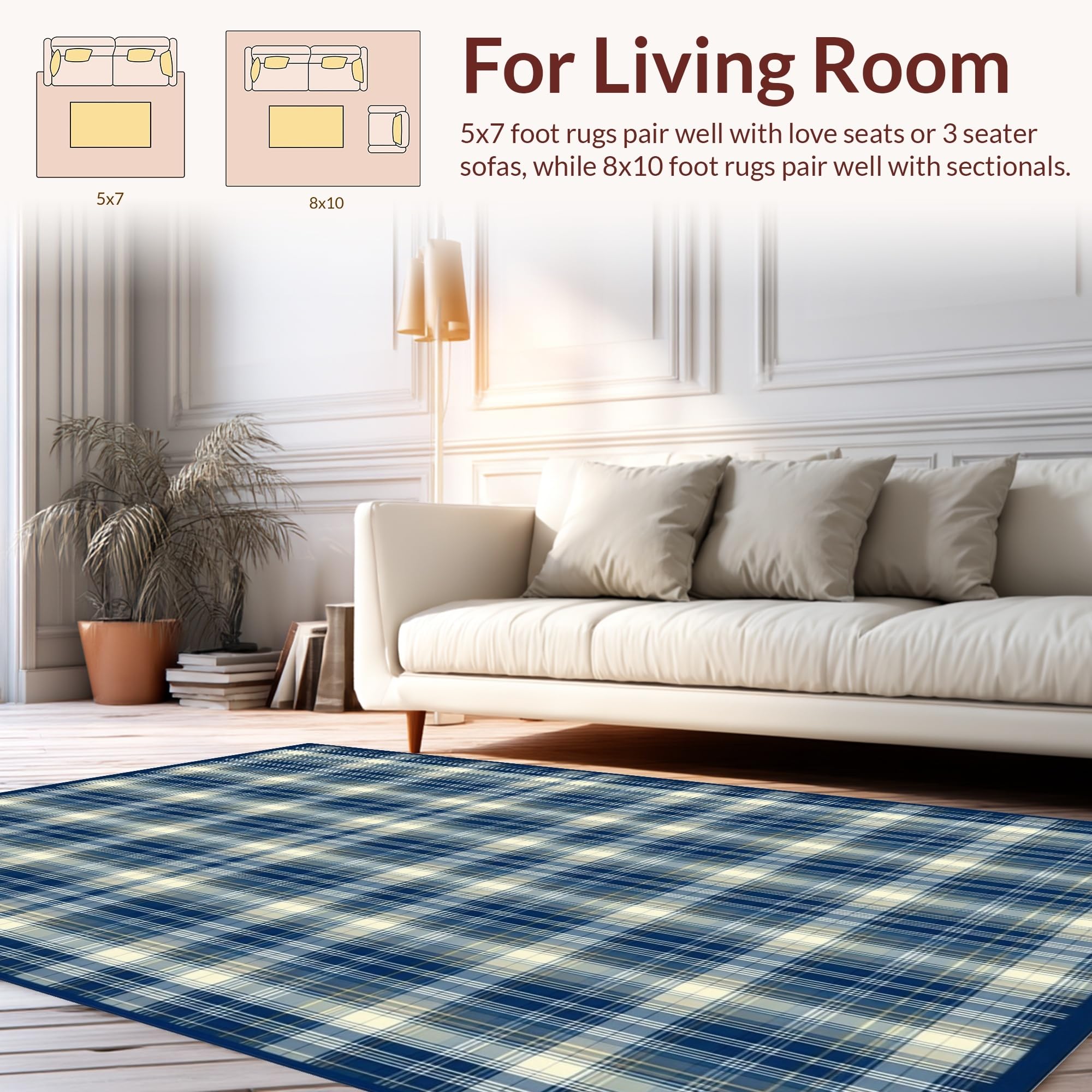 Ultra Soft Area Rug, Non Slip, Stain Resistant, Washable Area Rugs for Living Room, Bedroom, Dynamic Color-Shifted Geometric Design(Blue) Overview: