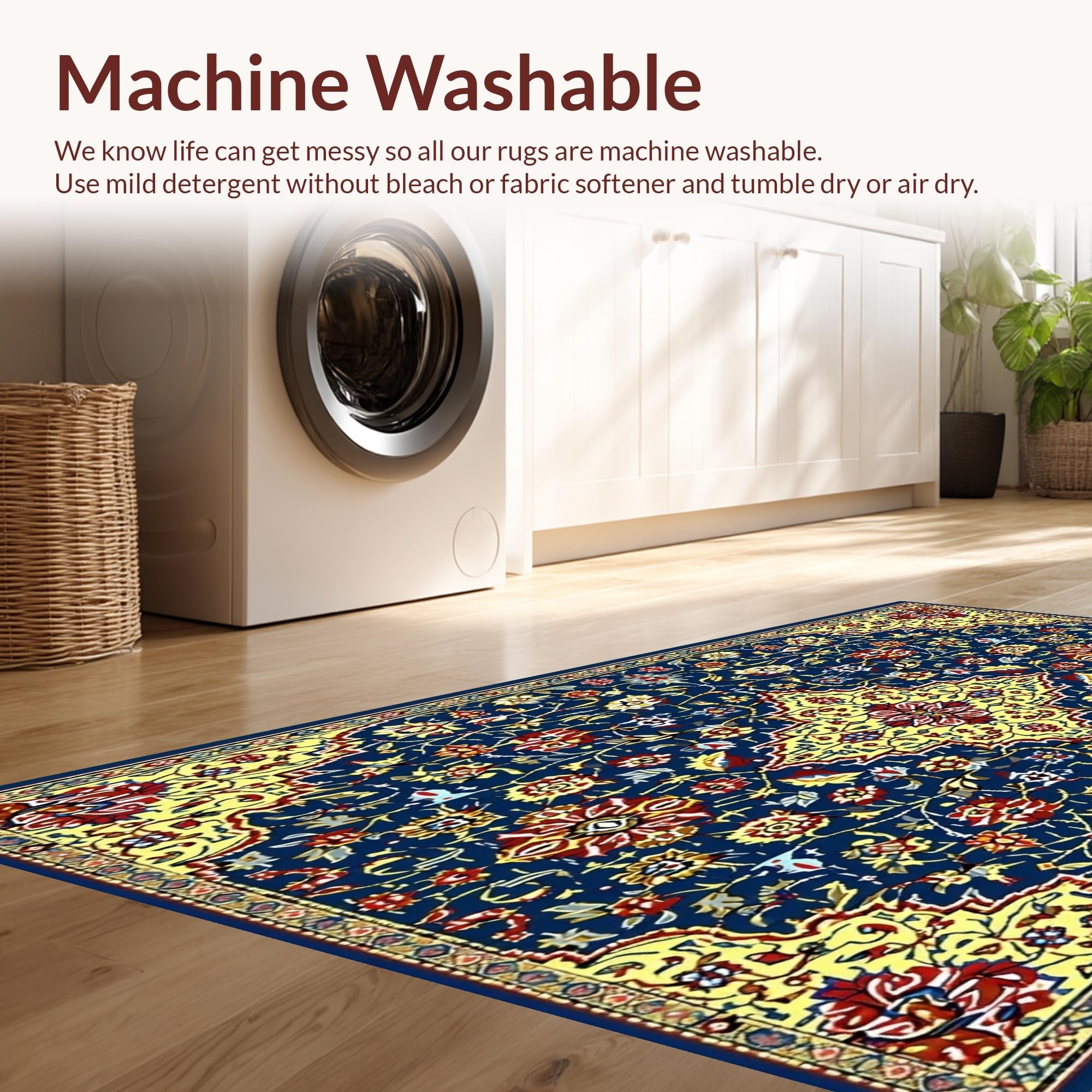 - Machine Washable: Our rugs can be easily thrown in the wash machine.