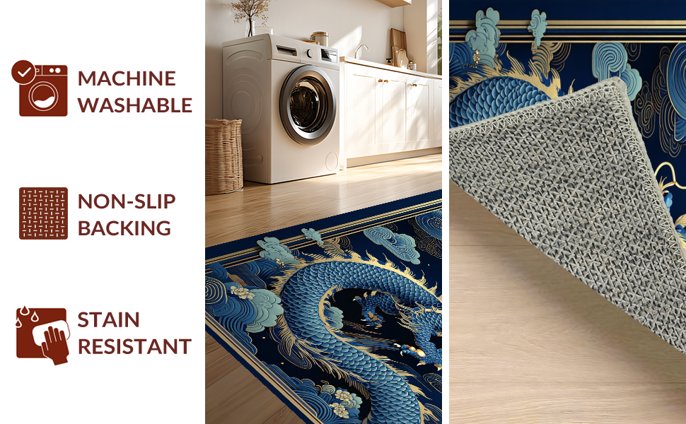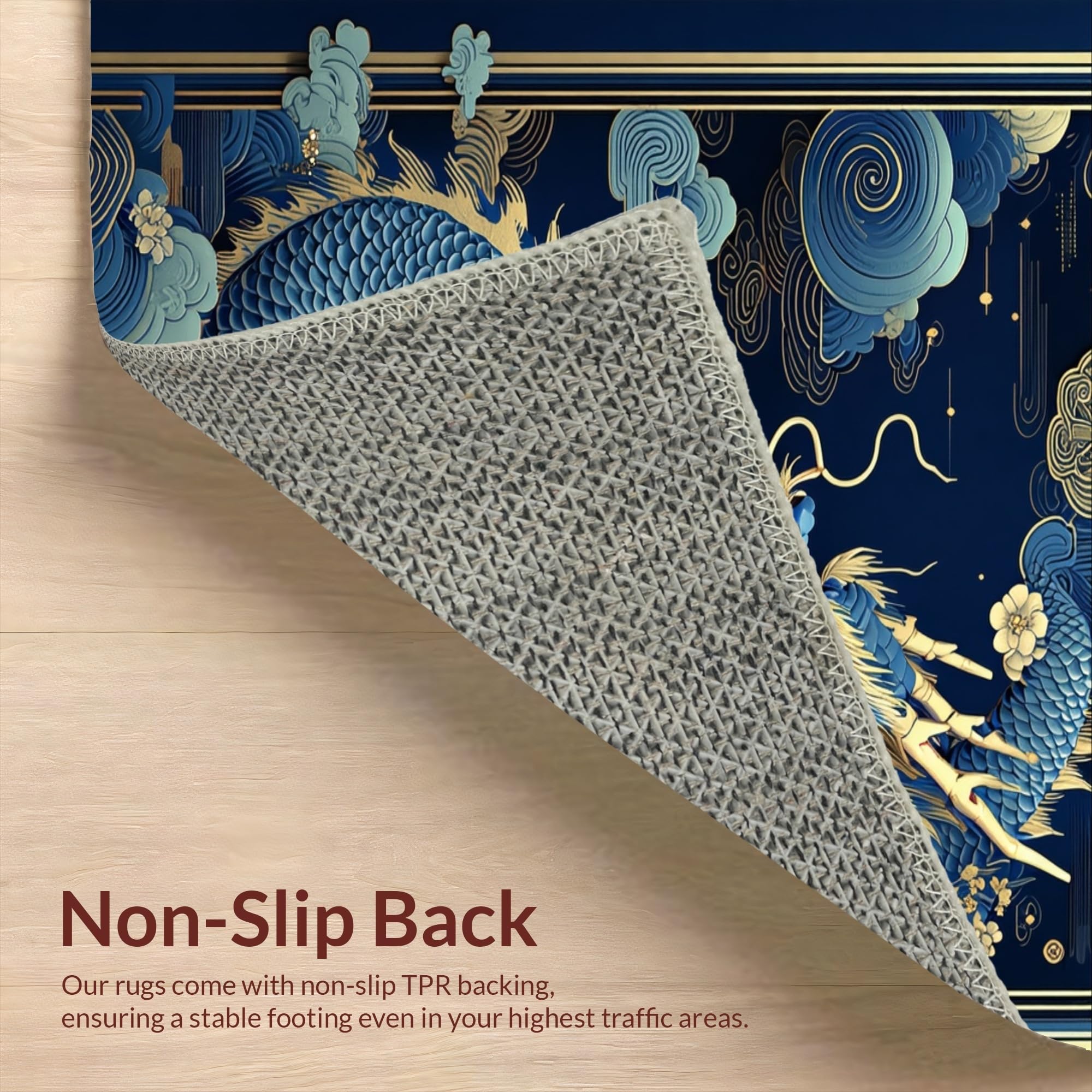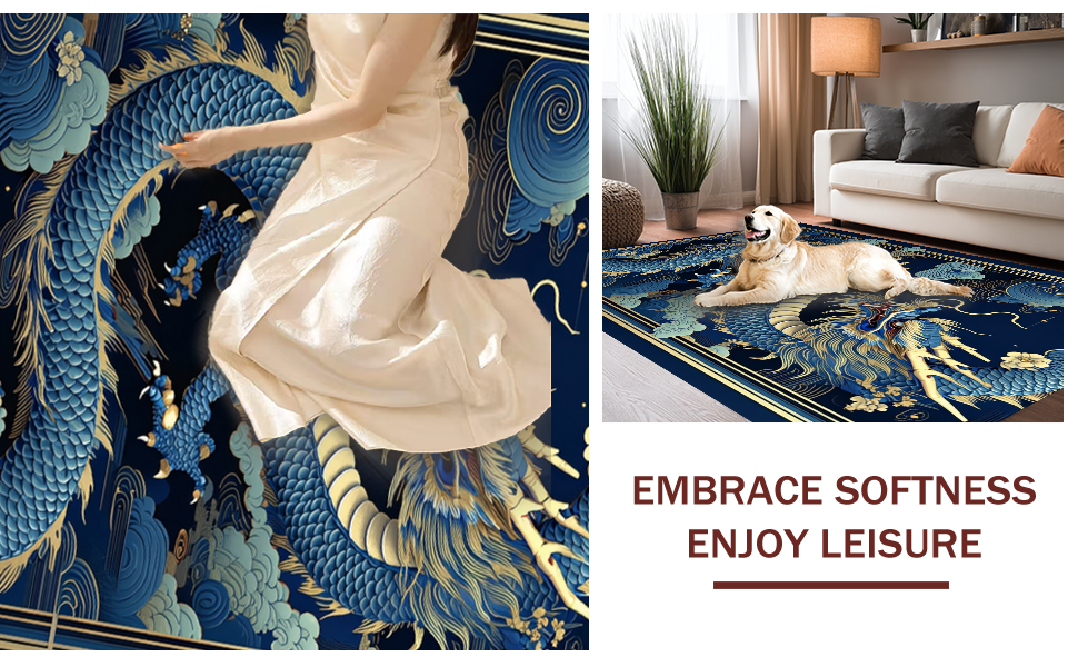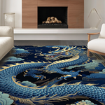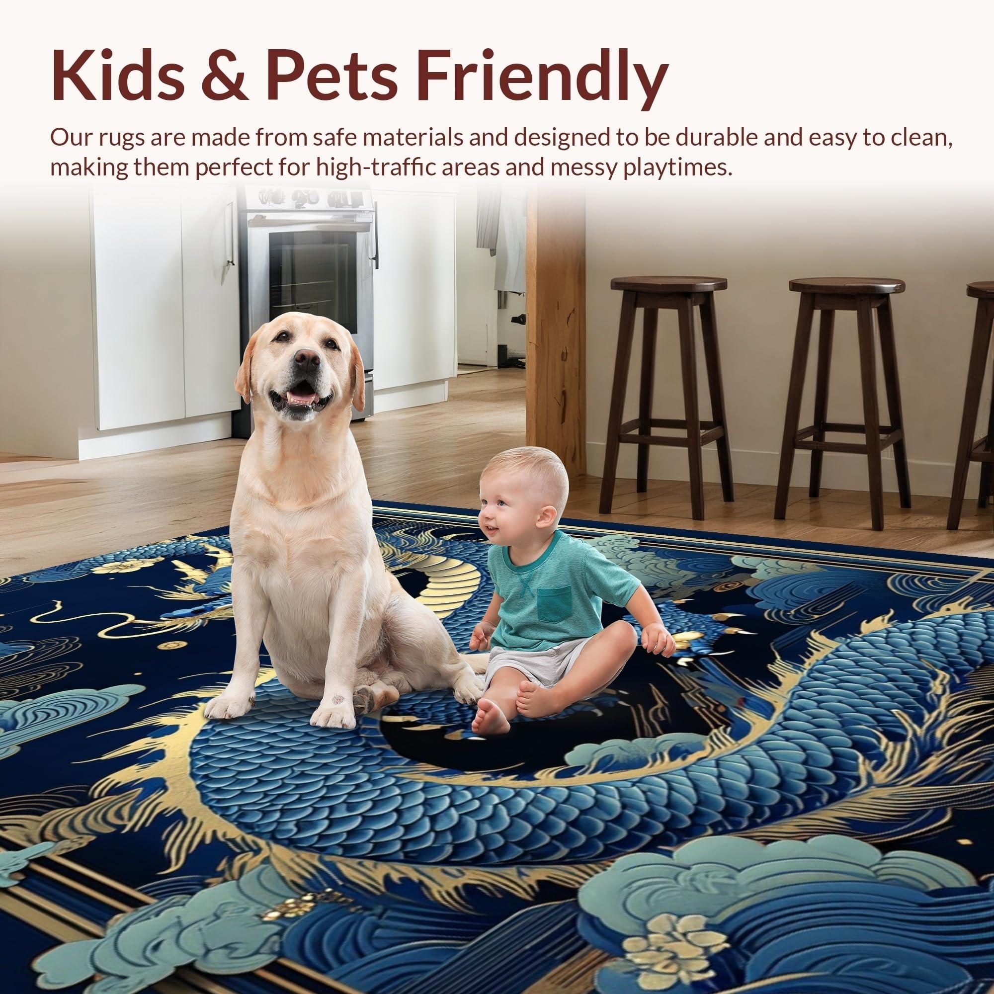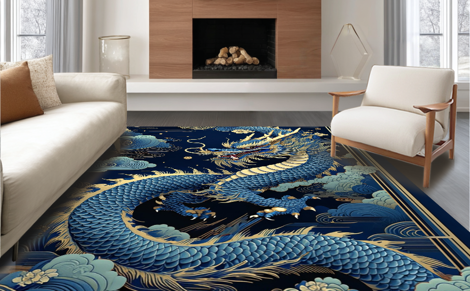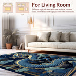 Ultra Soft Area Rug, Non Slip, Stain Resistant, Washable Area Rugs for Living Room, Bedroom, Dynamic Colorful Dragon Imagery(Blue) Overview: