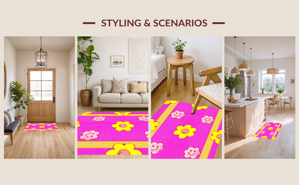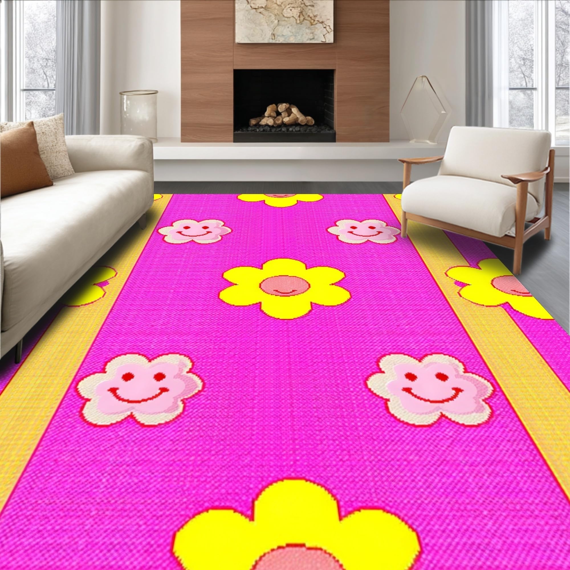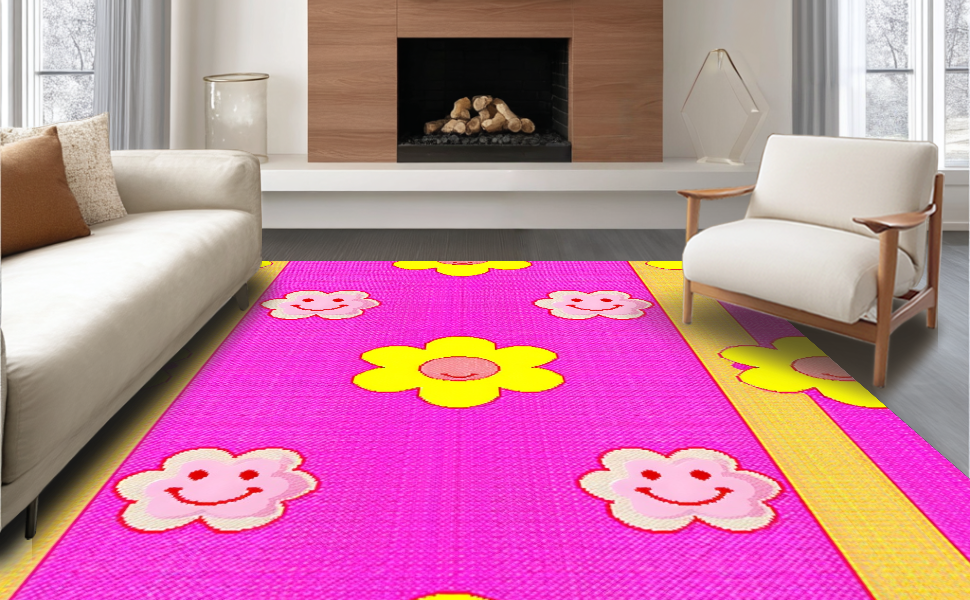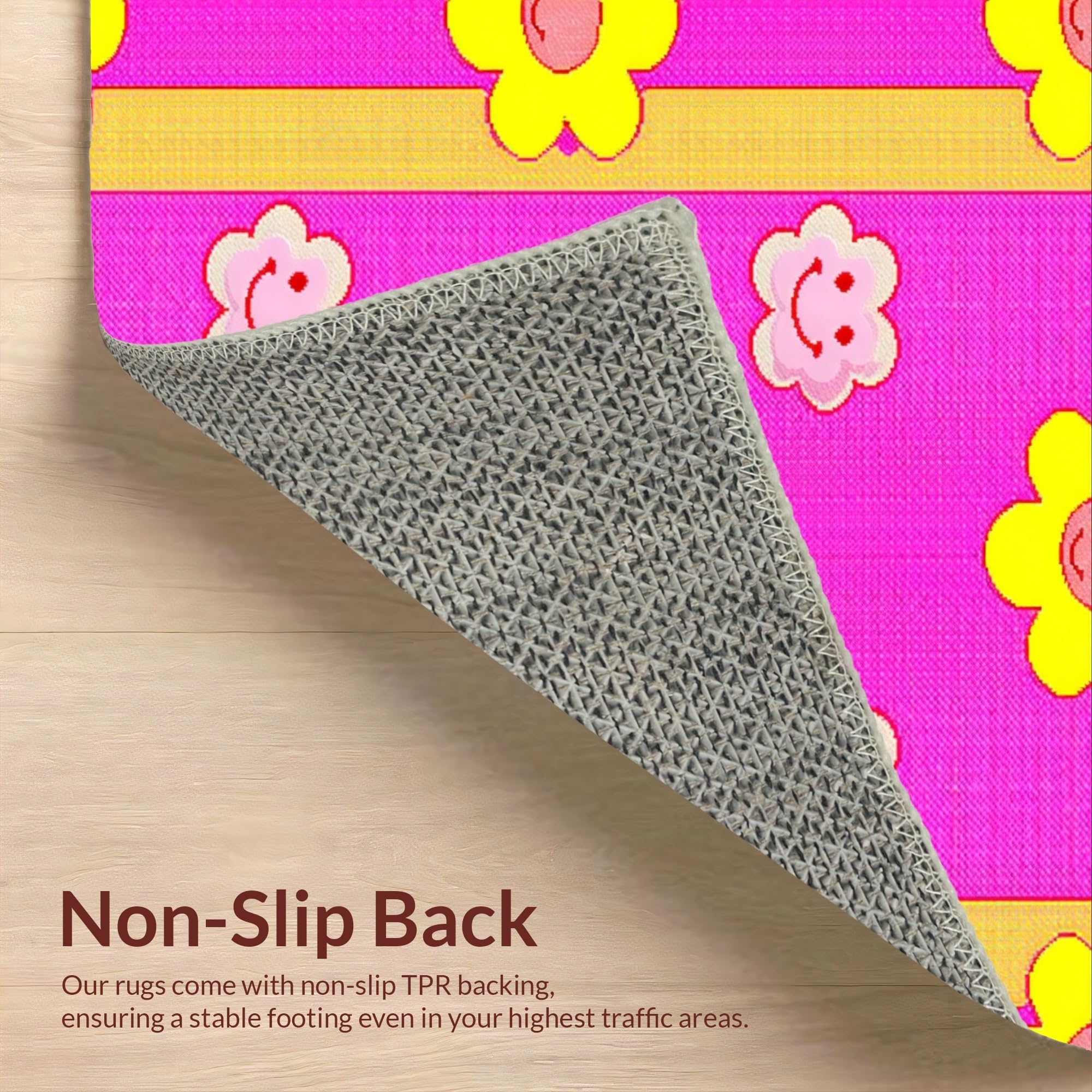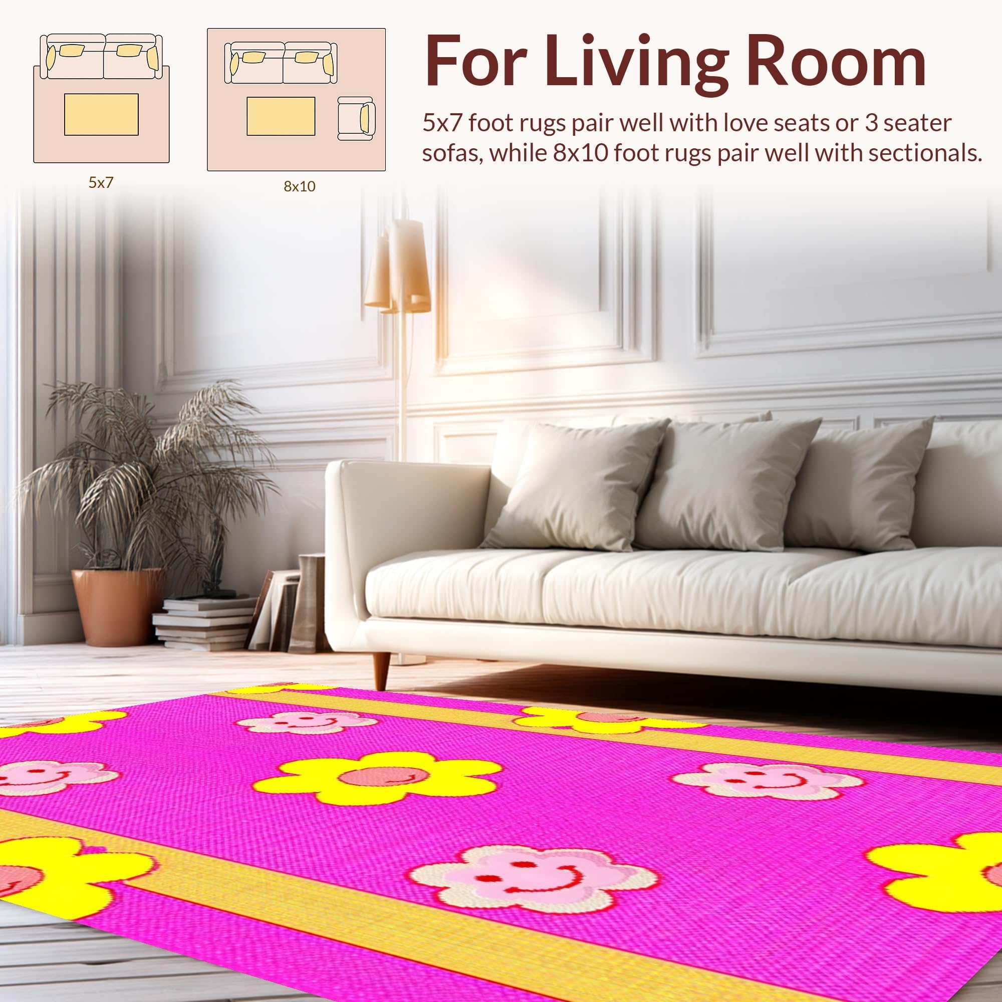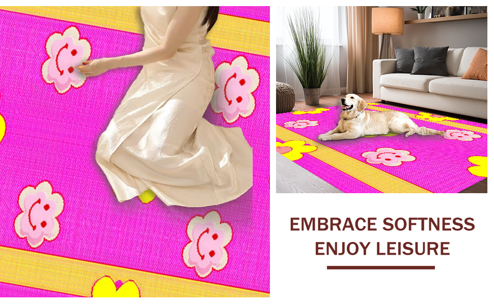 Ultra Soft Area Rug, Non Slip, Stain Resistant, Washable Area Rugs for Living Room, Bedroom, Dynamic Colorful Flower Medley(Pink) Overview: