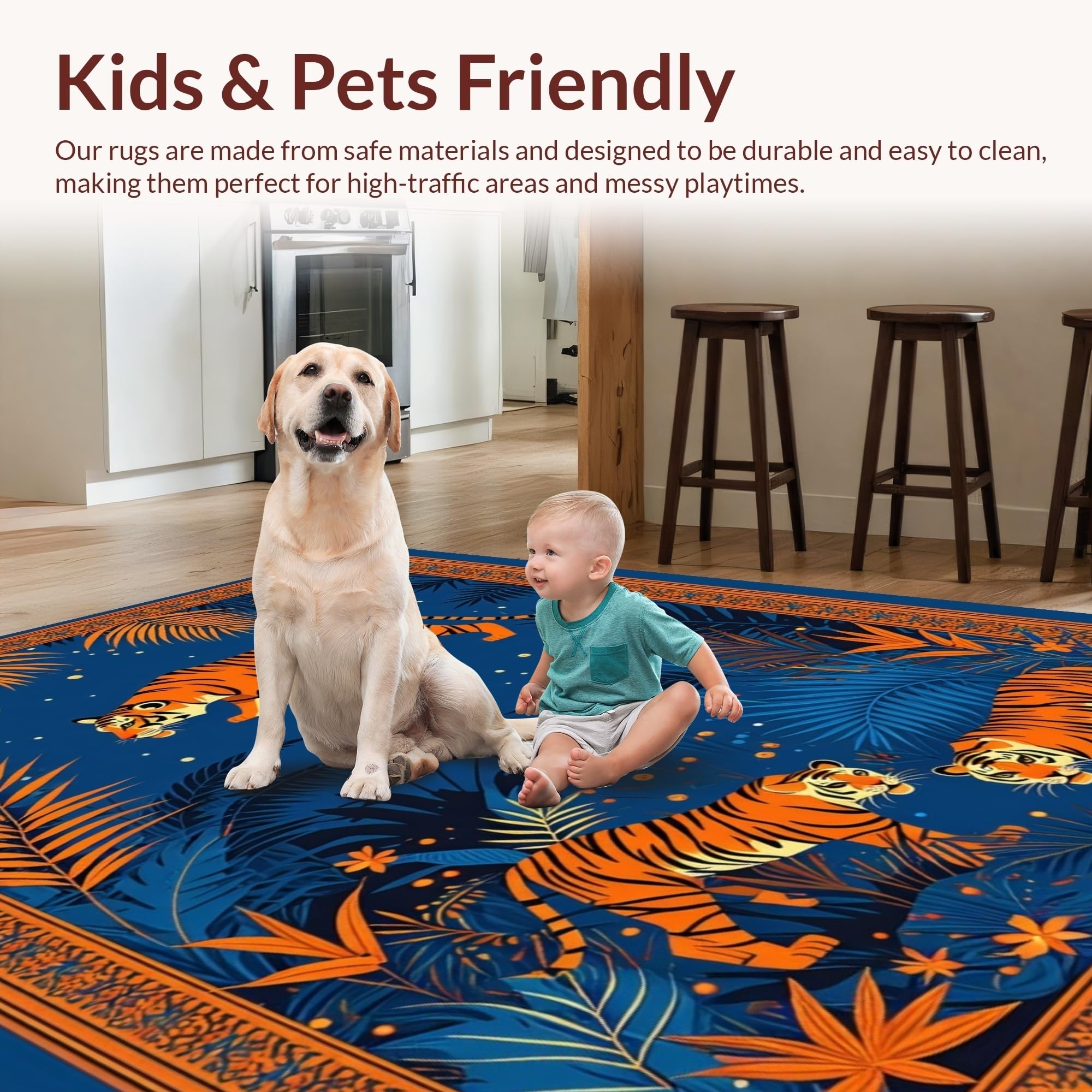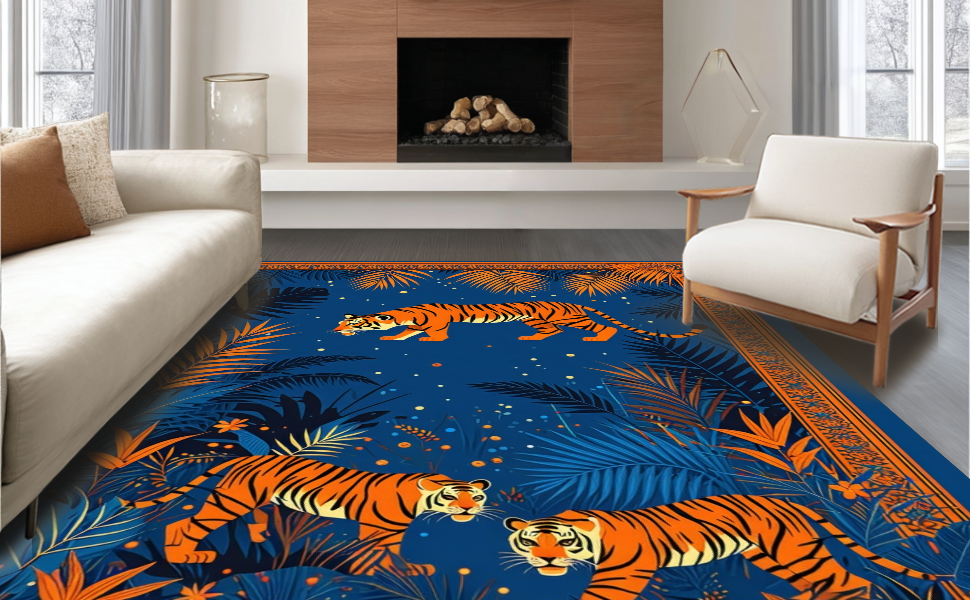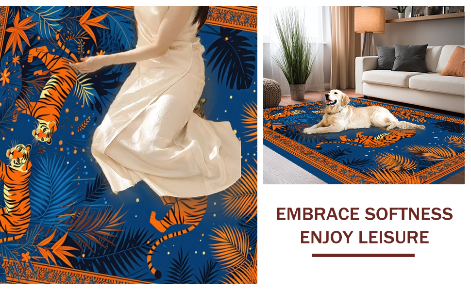 Ultra Soft Area Rug, Non Slip, Stain Resistant, Washable Area Rugs for Living Room, Bedroom, Dynamic Colorful Nature Fusion(Blue) Overview: