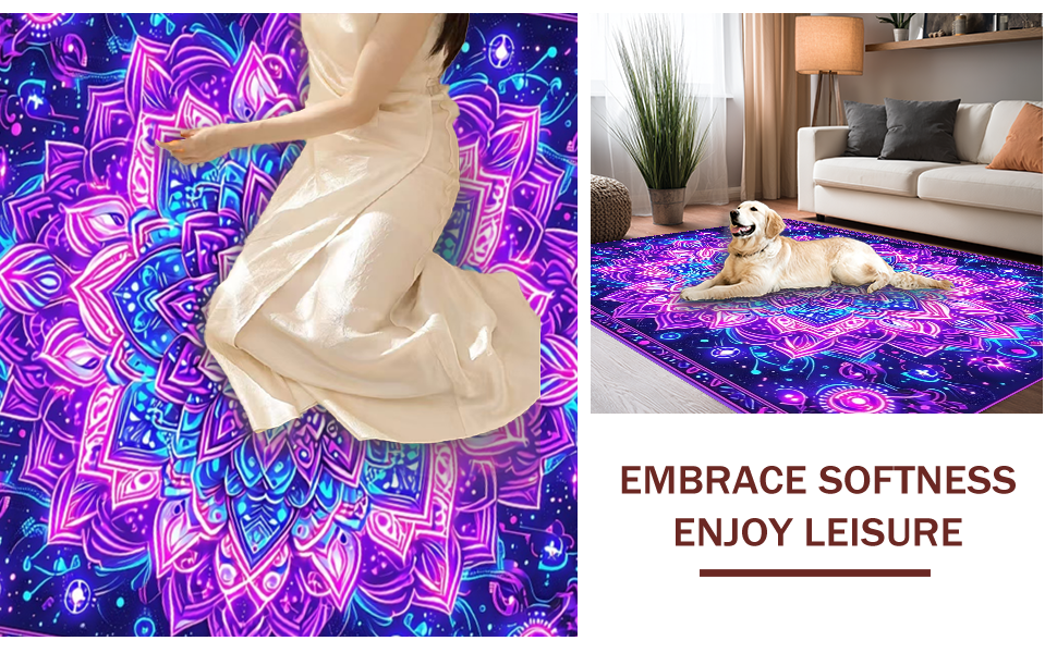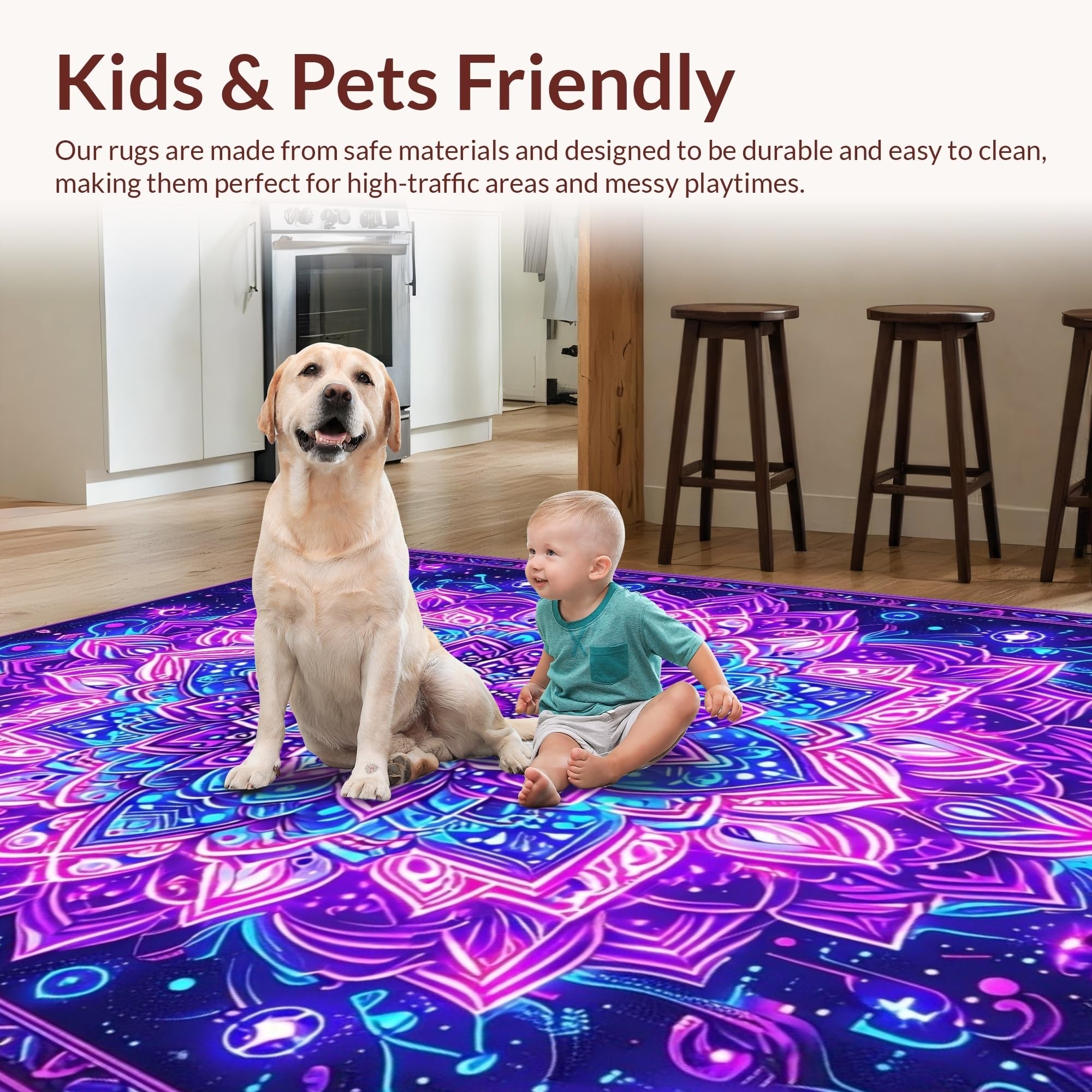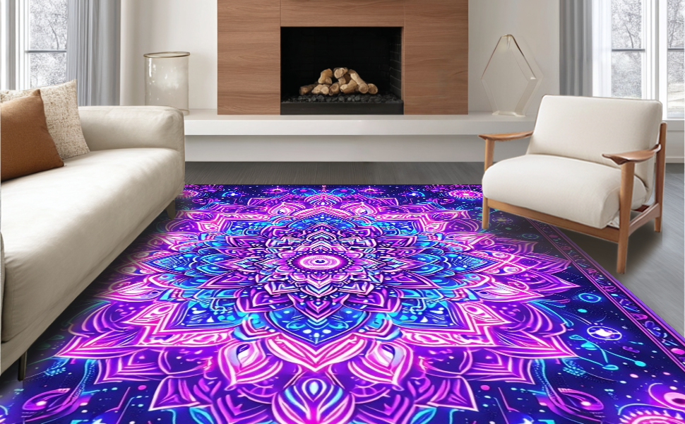 Ultra Soft Area Rug, Non Slip, Stain Resistant, Washable Area Rugs for Living Room, Bedroom, Dynamic Colorful Spiral Aesthetic(Purple) Overview:
