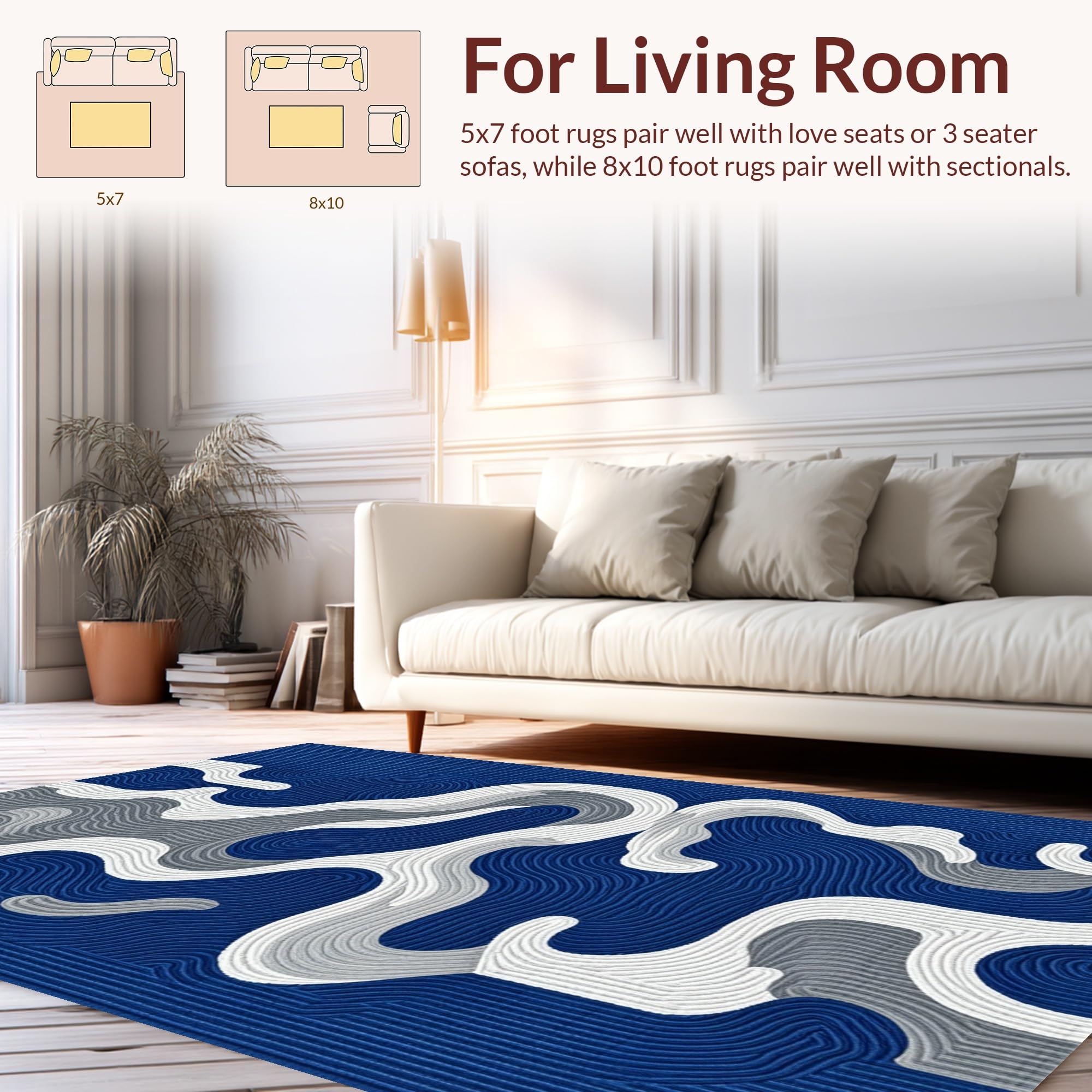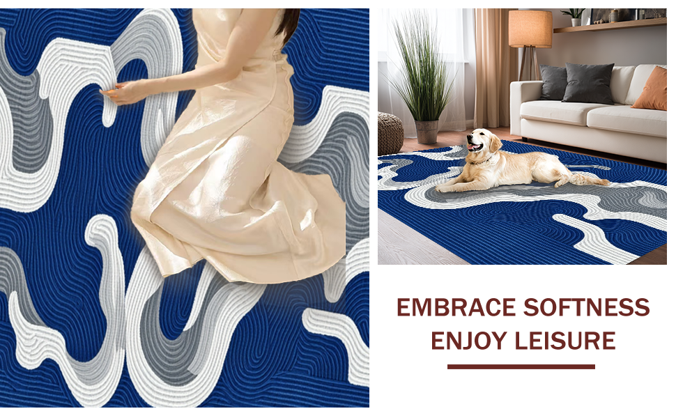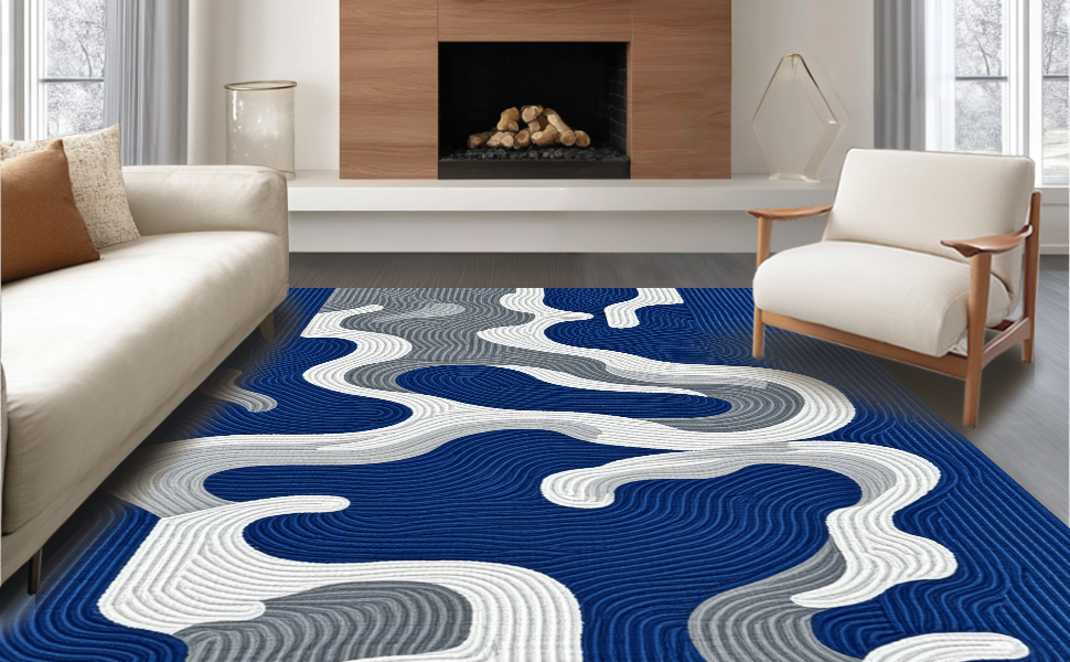 Ultra Soft Area Rug, Non Slip, Stain Resistant, Washable Area Rugs for Living Room, Bedroom, Dynamic Colorful Vortex Aesthetic(Blue) Overview: