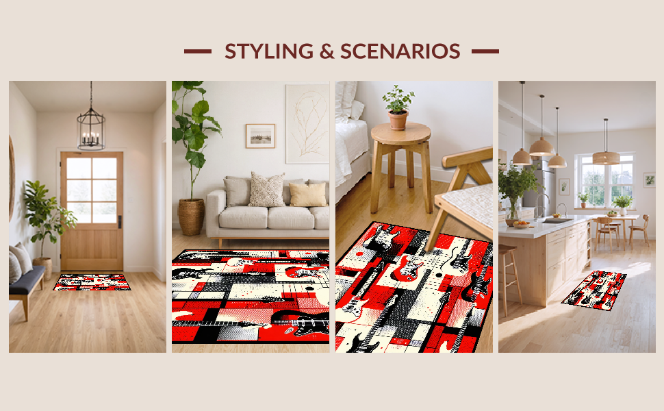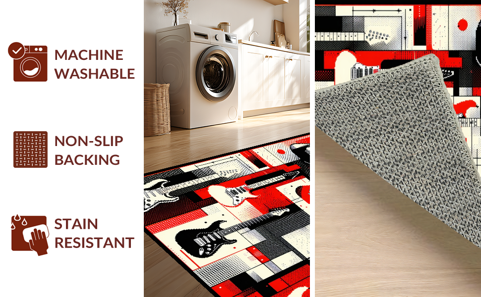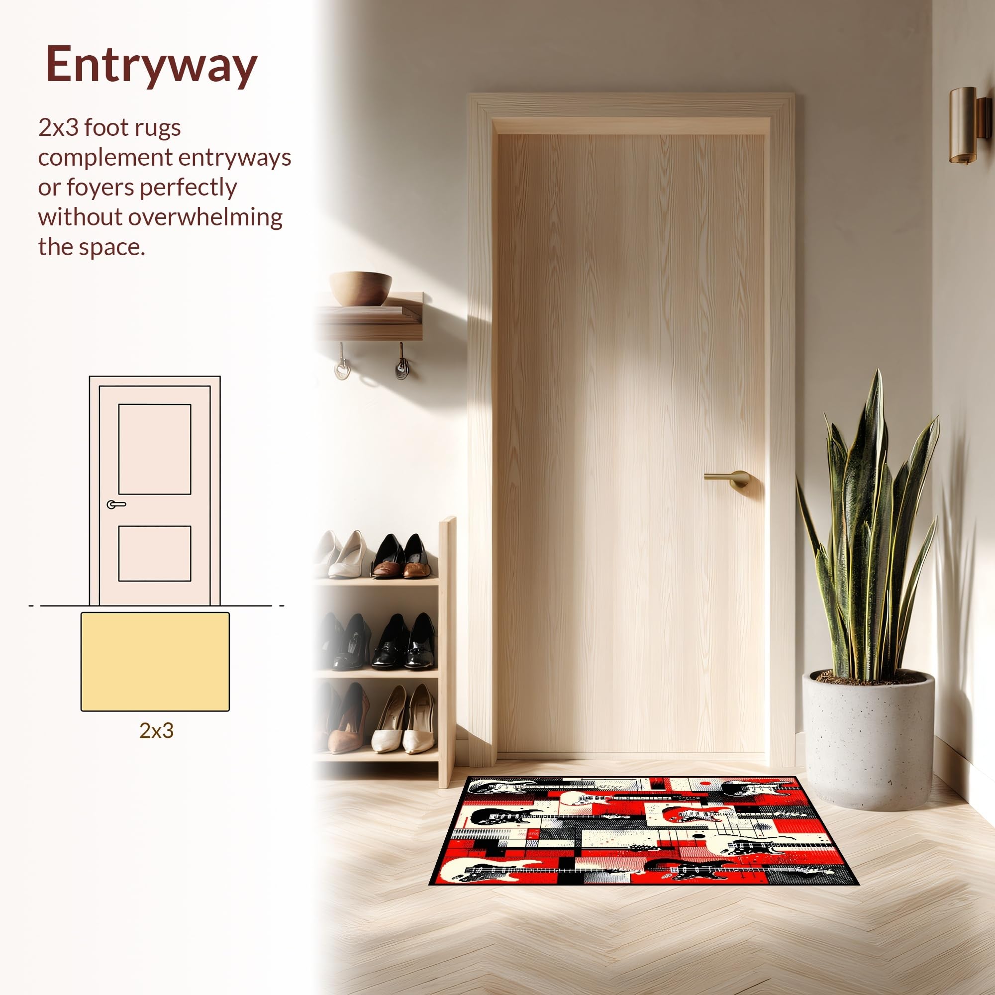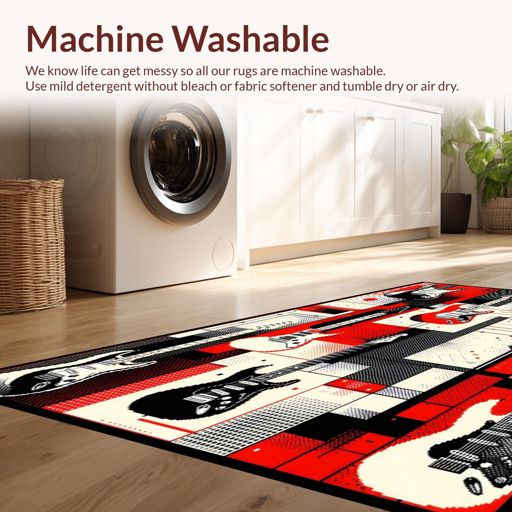 Ultra Soft Area Rug, Non Slip, Stain Resistant, Washable Area Rugs for Living Room, Bedroom, Dynamic Electric Guitar Visuals(Red) Overview: