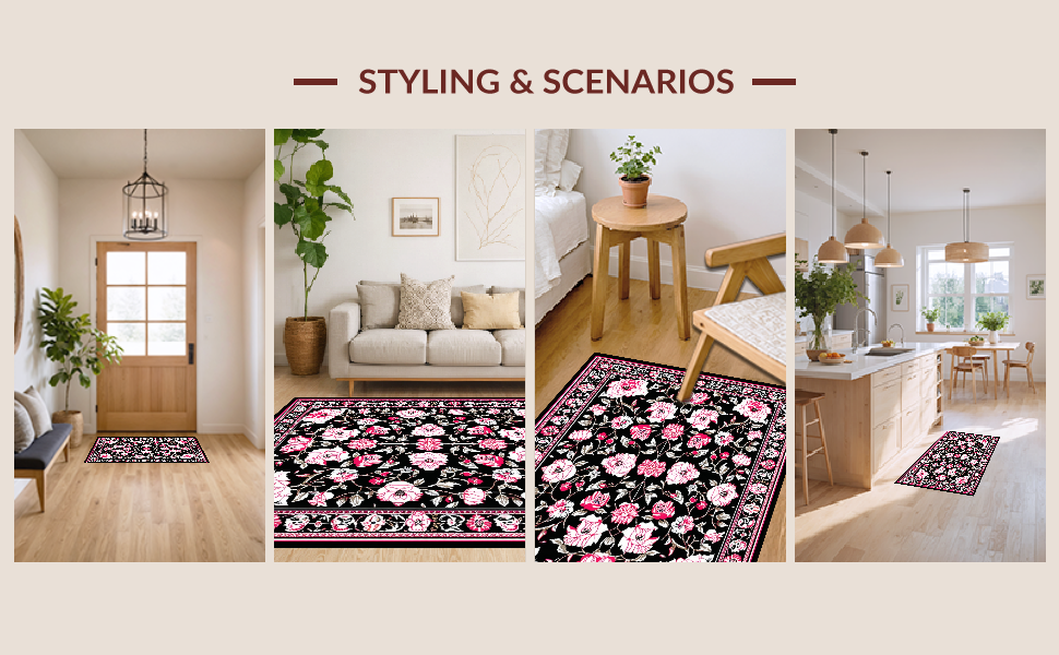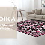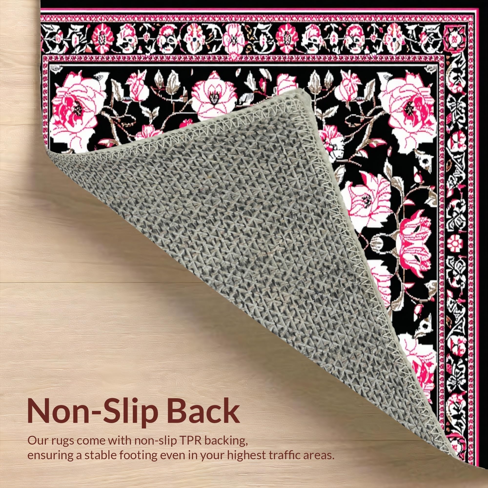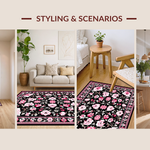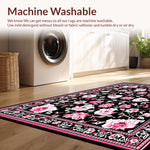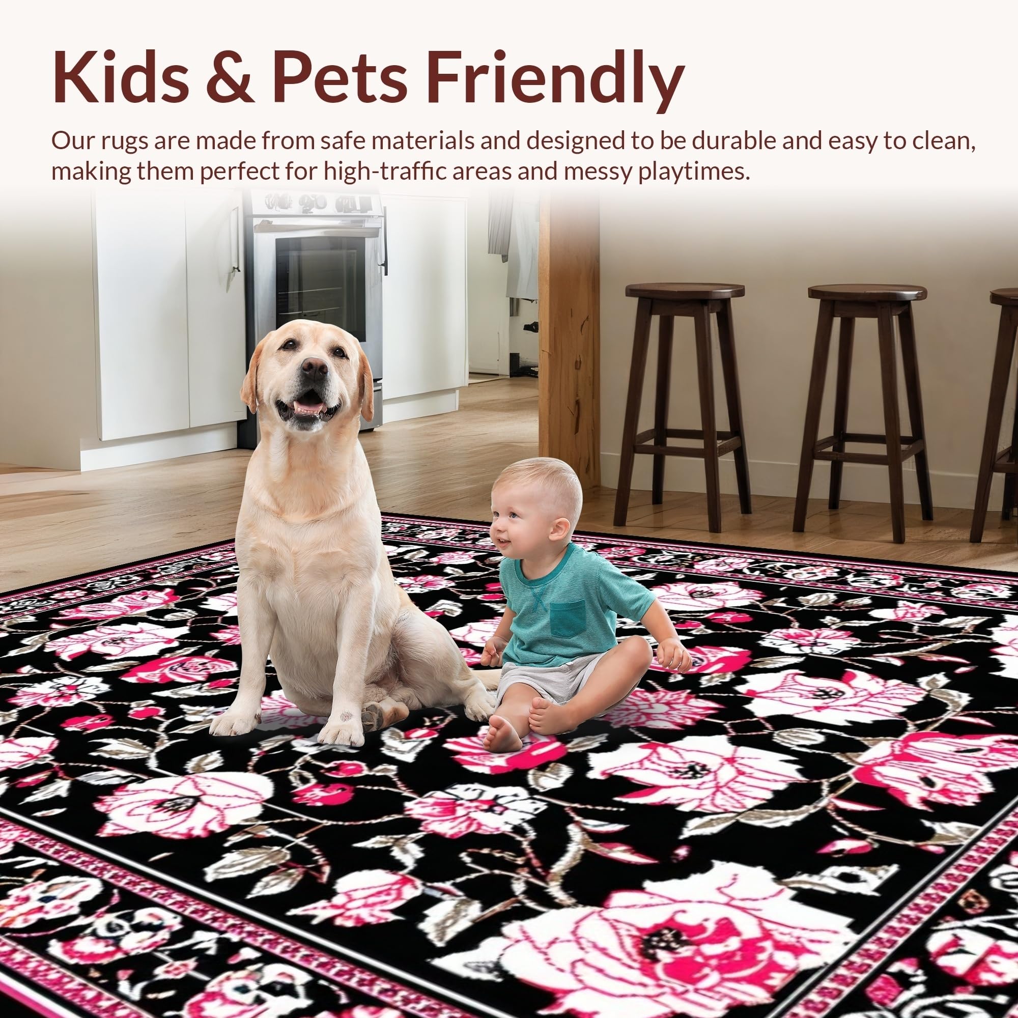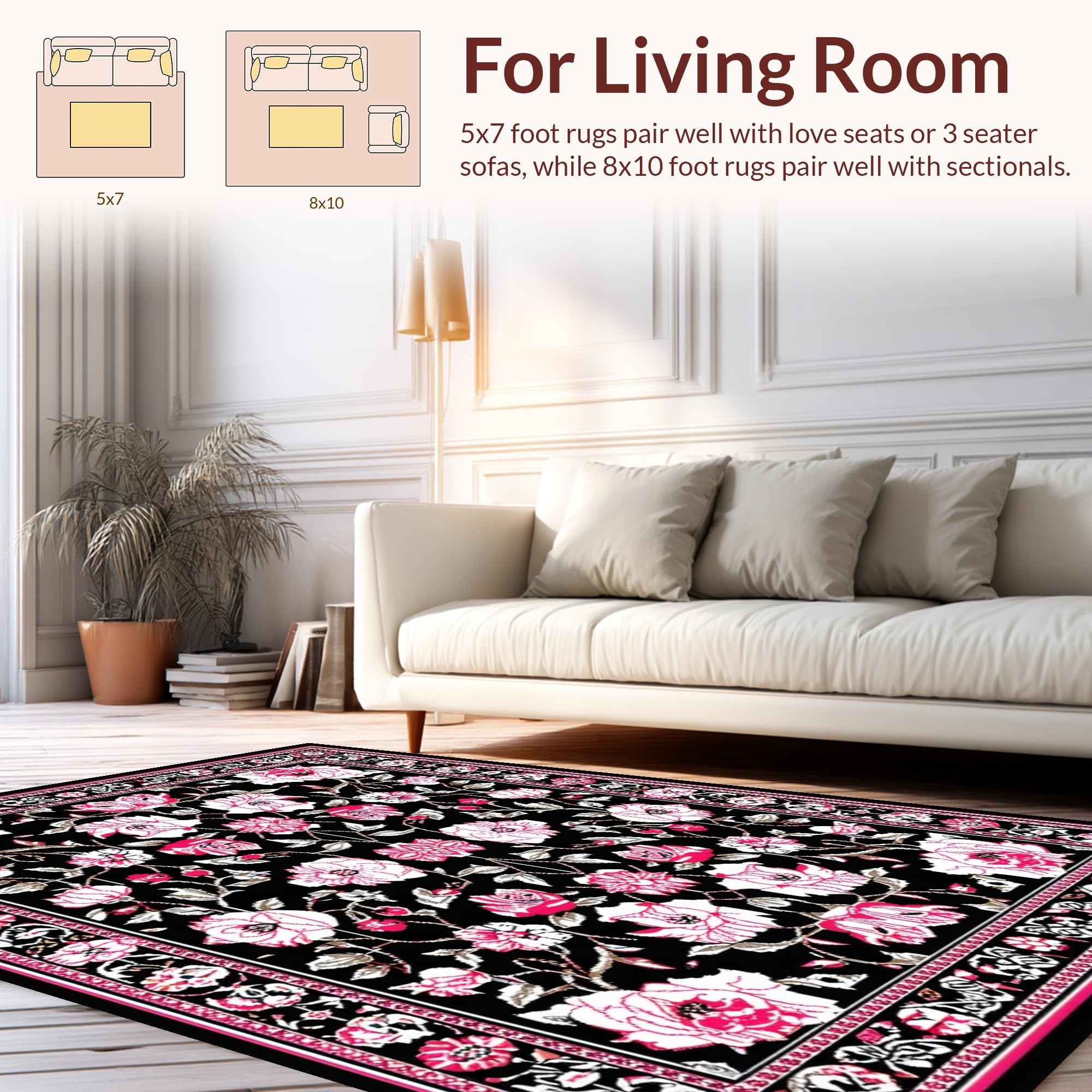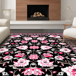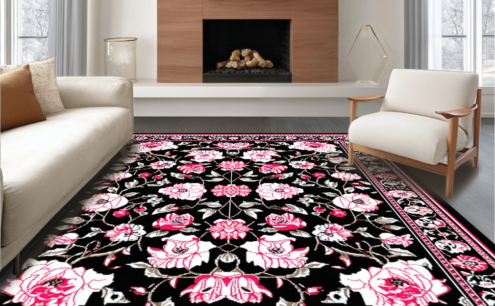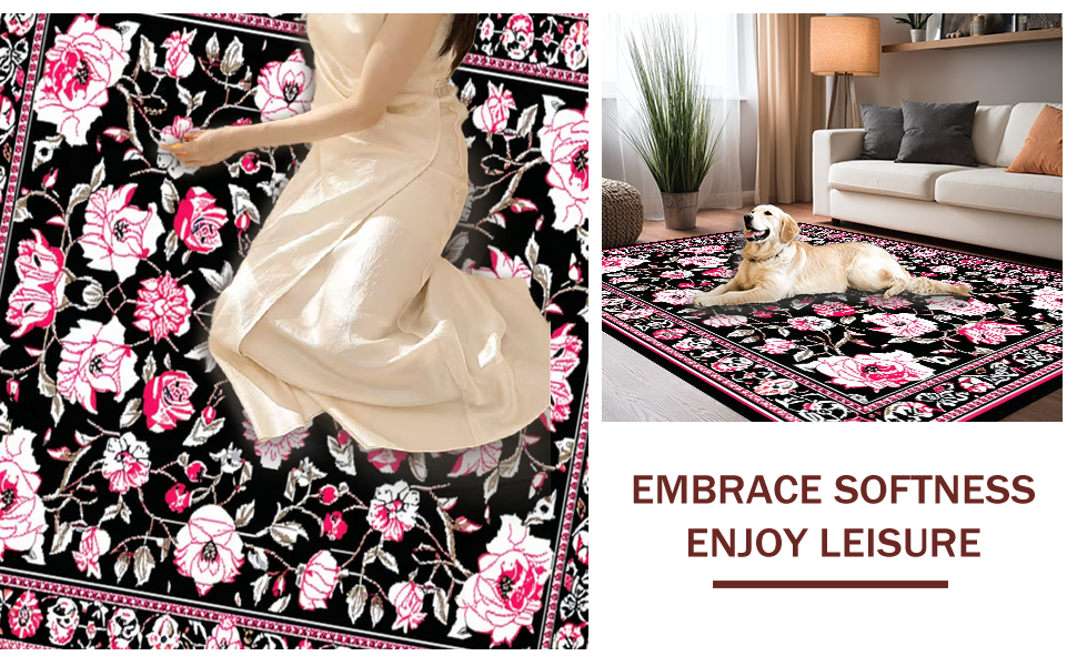 Ultra Soft Area Rug, Non Slip, Stain Resistant, Washable Area Rugs for Living Room, Bedroom, Dynamic Floral Geometry Theme(Black) Overview: