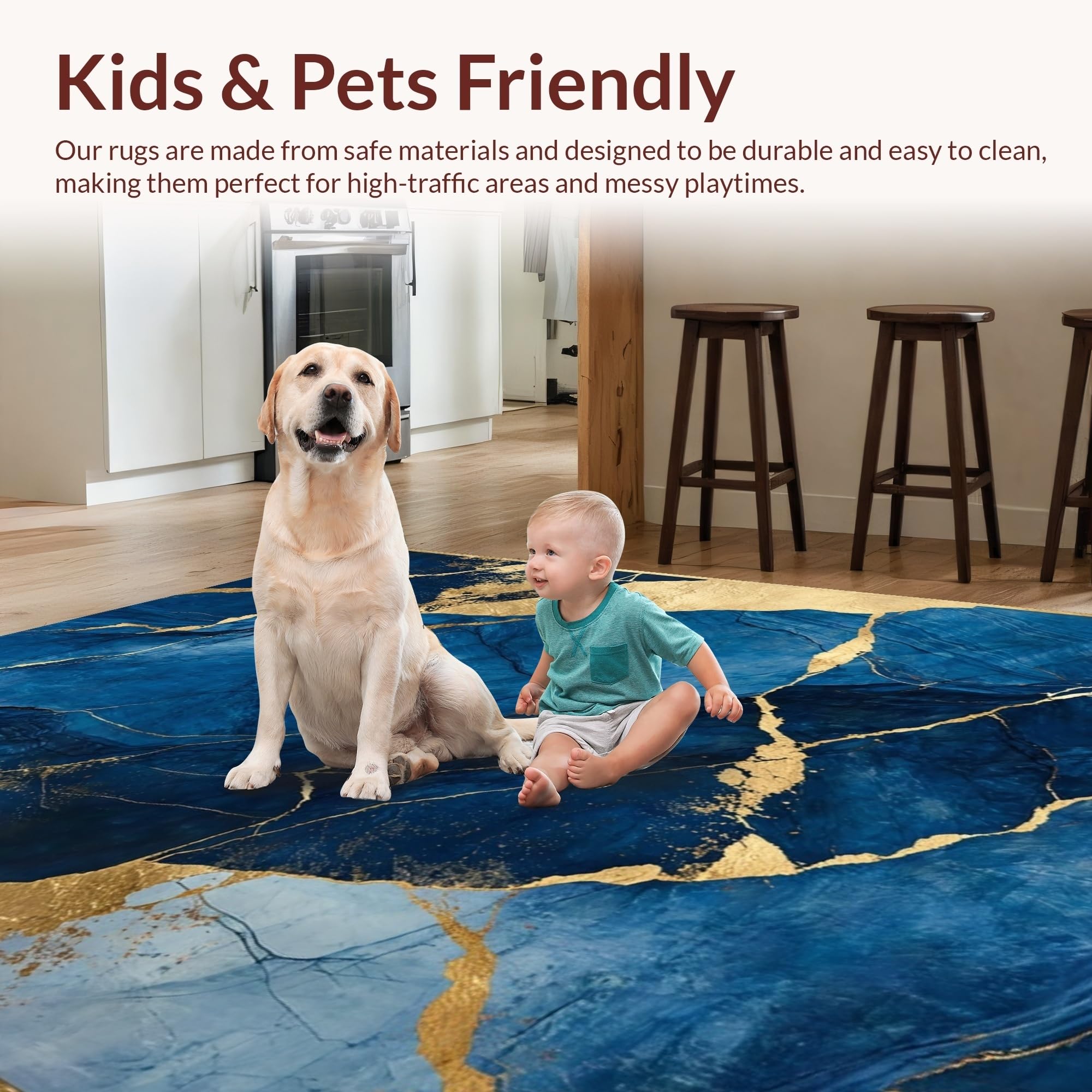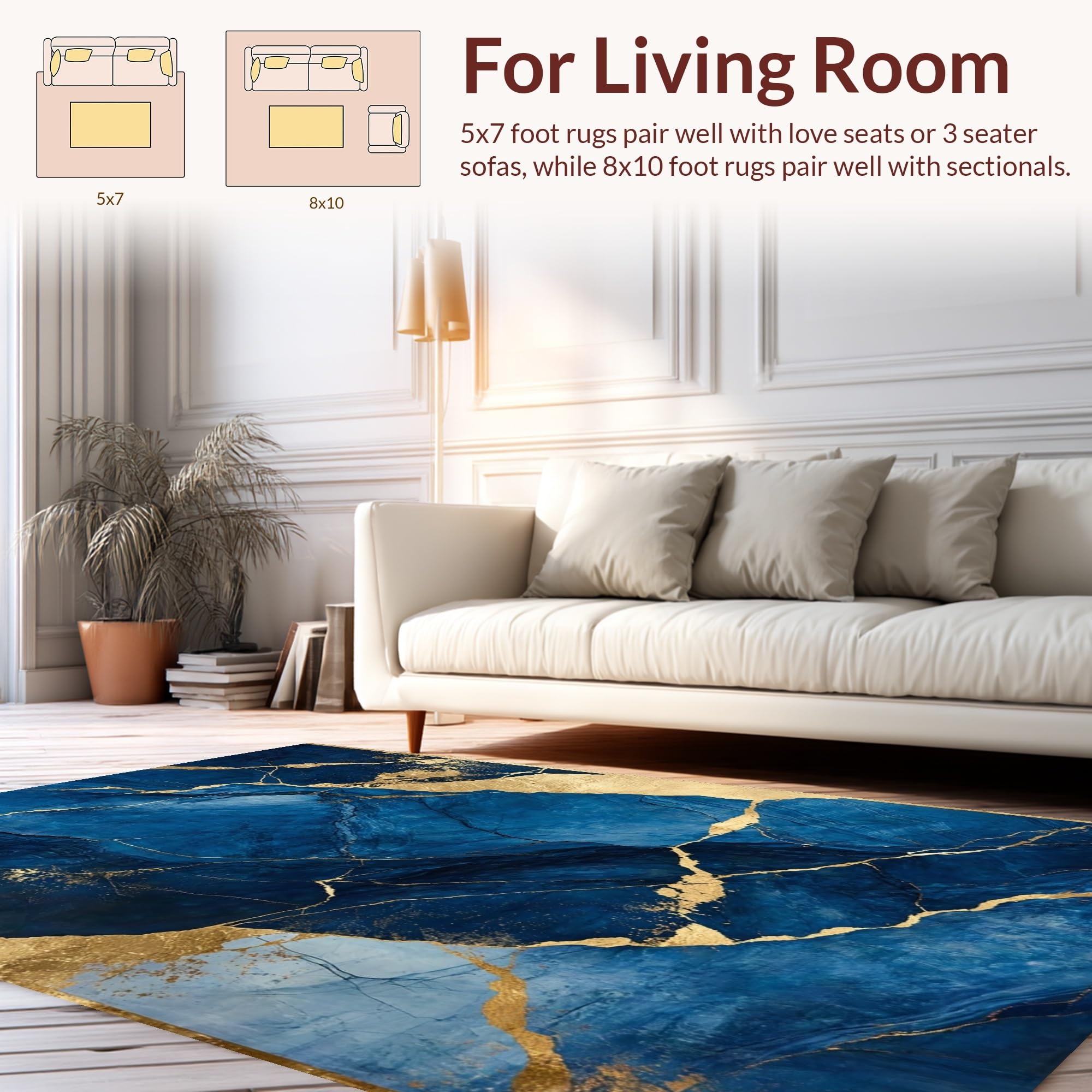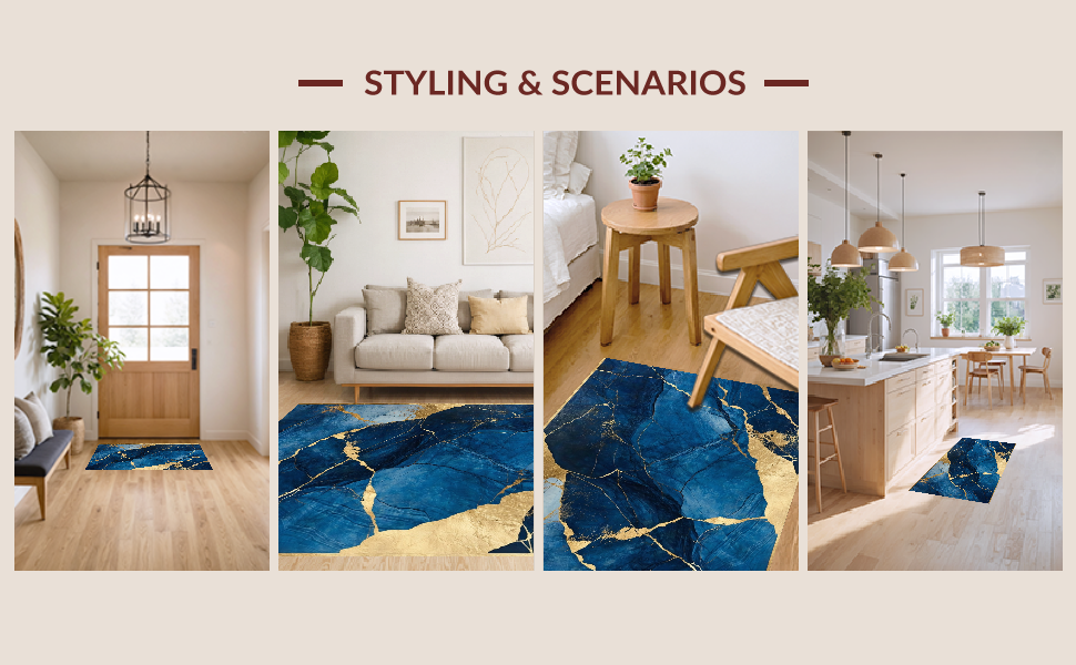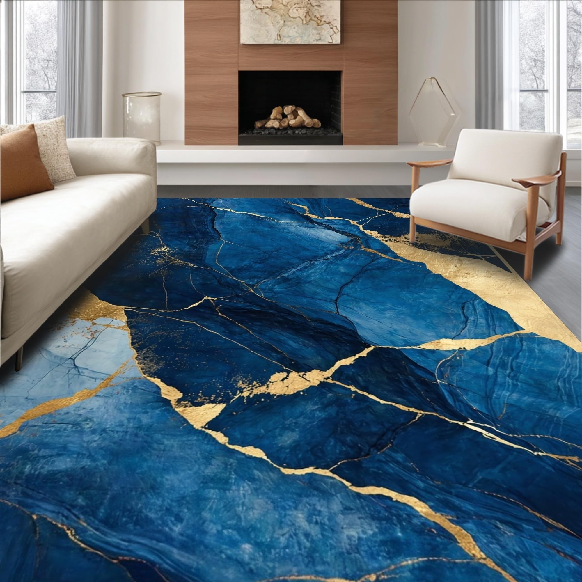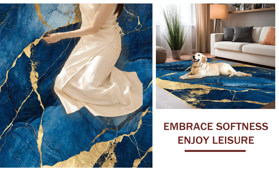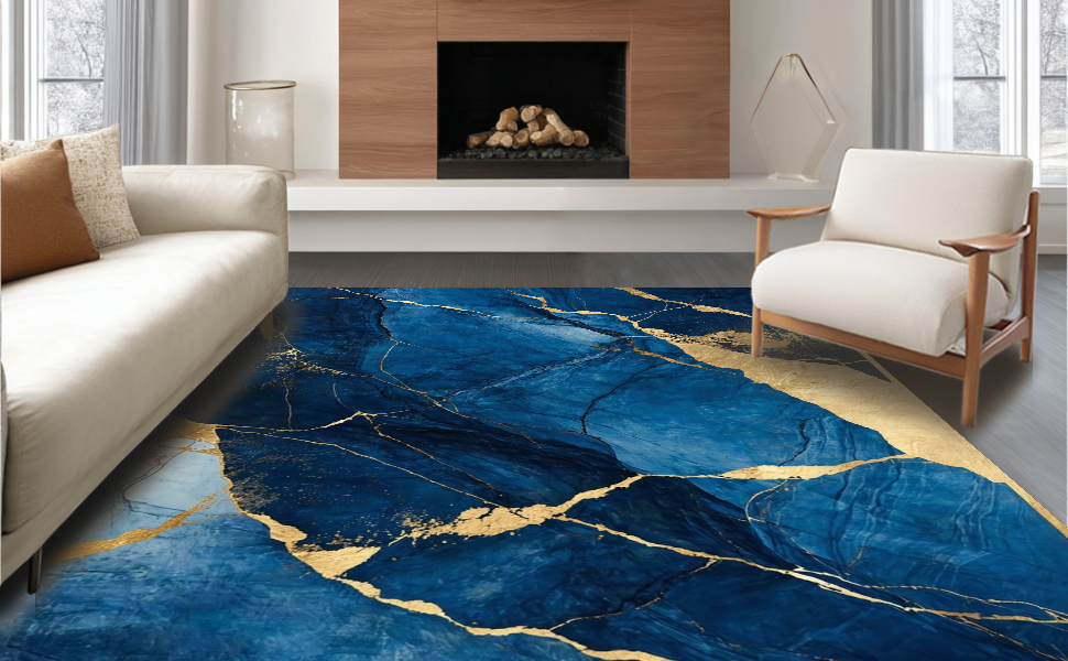 Ultra Soft Area Rug, Non Slip, Stain Resistant, Washable Area Rugs for Living Room, Bedroom, Dynamic Fluid Artful Composition(Blue) Overview: