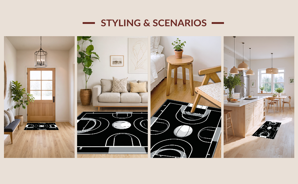 Ultra Soft Area Rug, Non Slip, Stain Resistant, Washable Area Rugs for Living Room, Bedroom, Dynamic Geometric Court Aesthetic(Black) Overview: