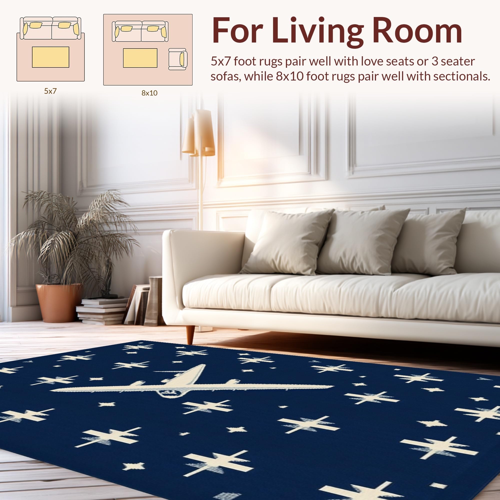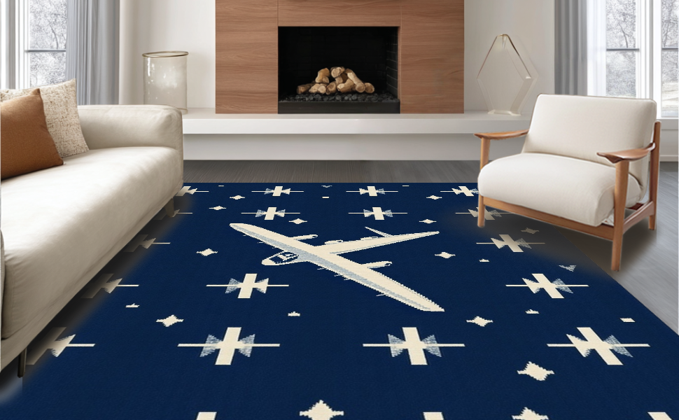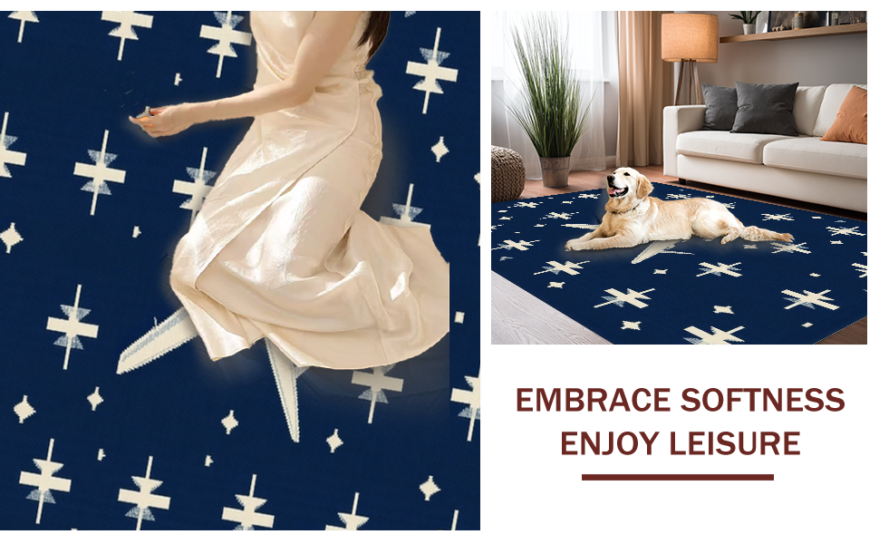 Ultra Soft Area Rug, Non Slip, Stain Resistant, Washable Area Rugs for Living Room, Bedroom, Dynamic Geometric Playful Motif(Blue) Overview: